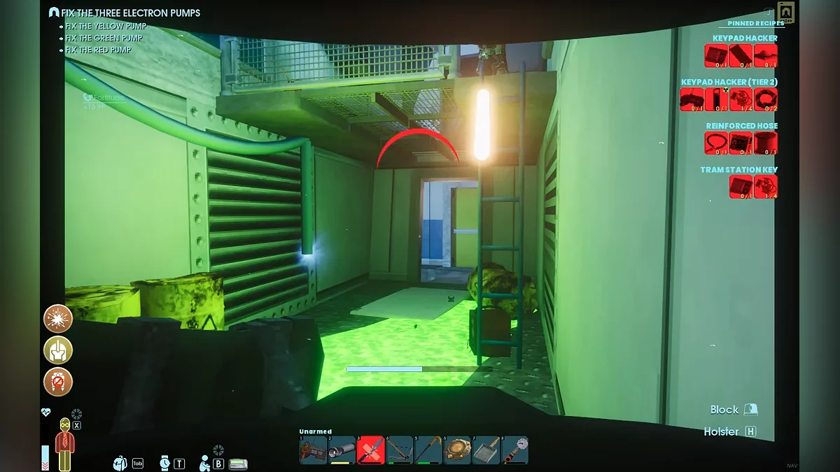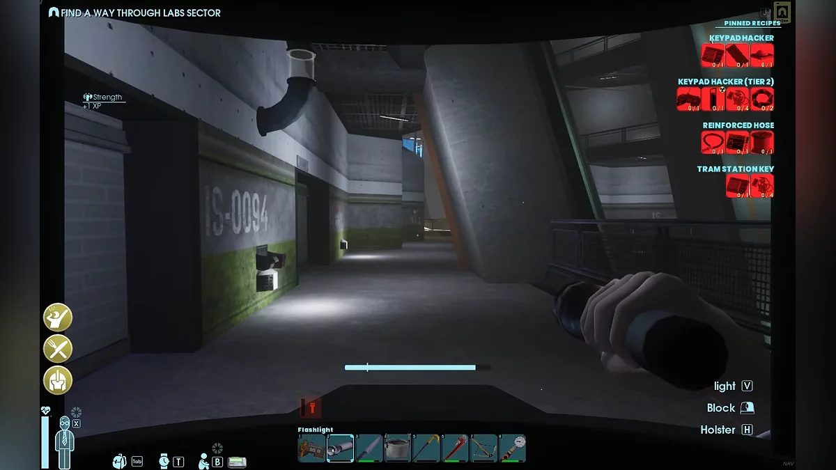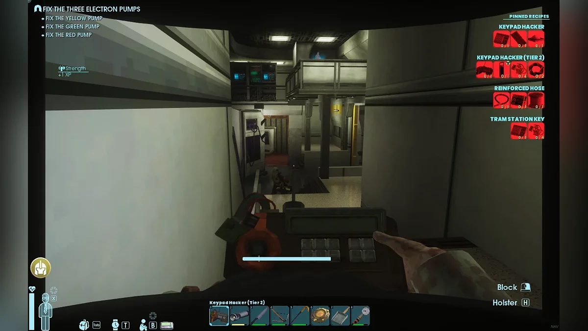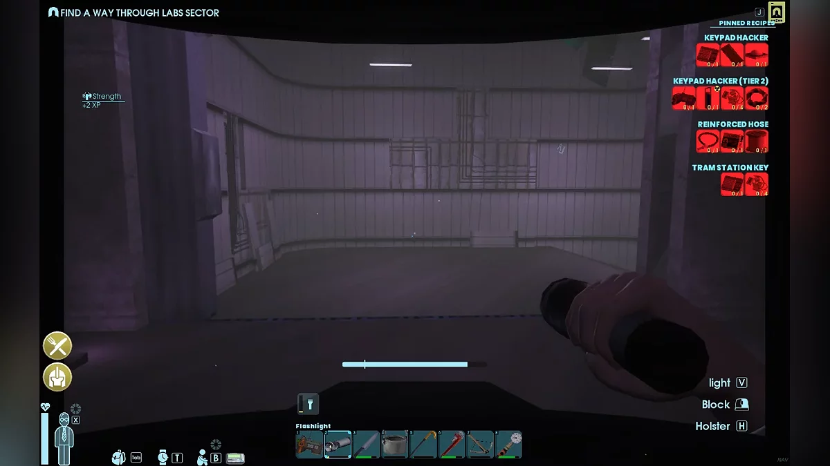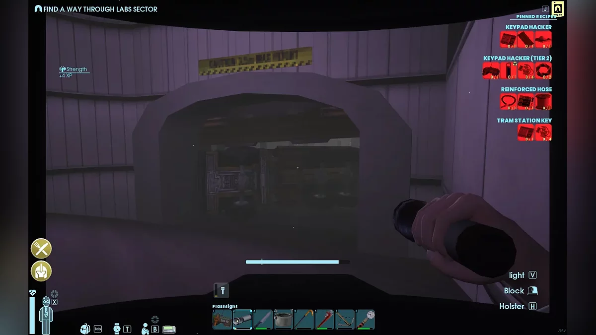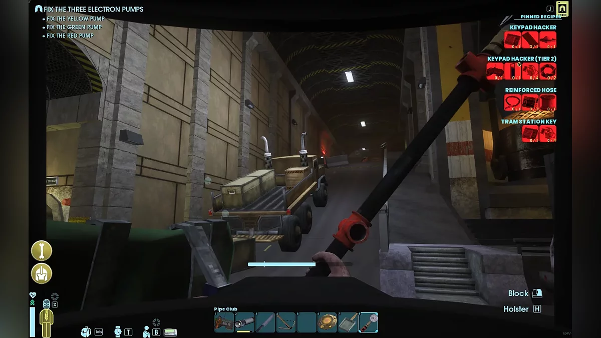 Для создания верстака вам потребуется изолента, металлические трубы и блок питания. Если первые два ресурса вы уже набрали по обходному пути, то для последнего требуется пройти в техническое помещение слева от доктора Джагера.