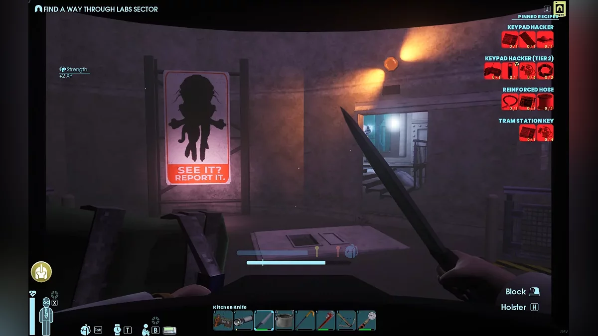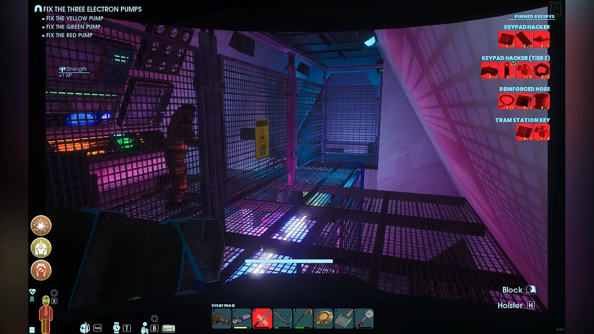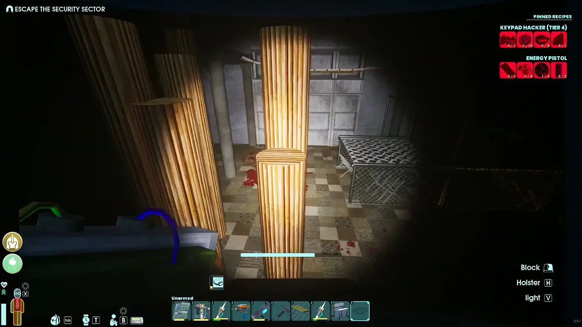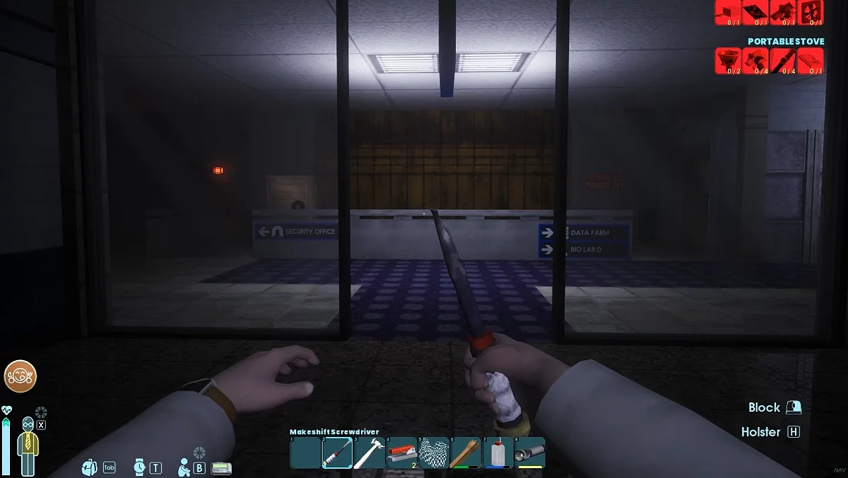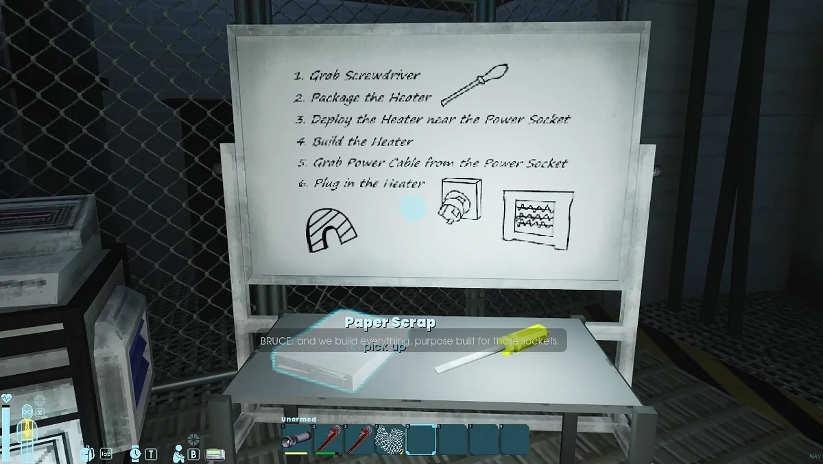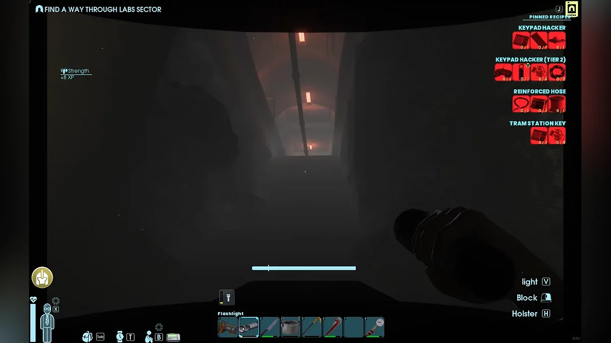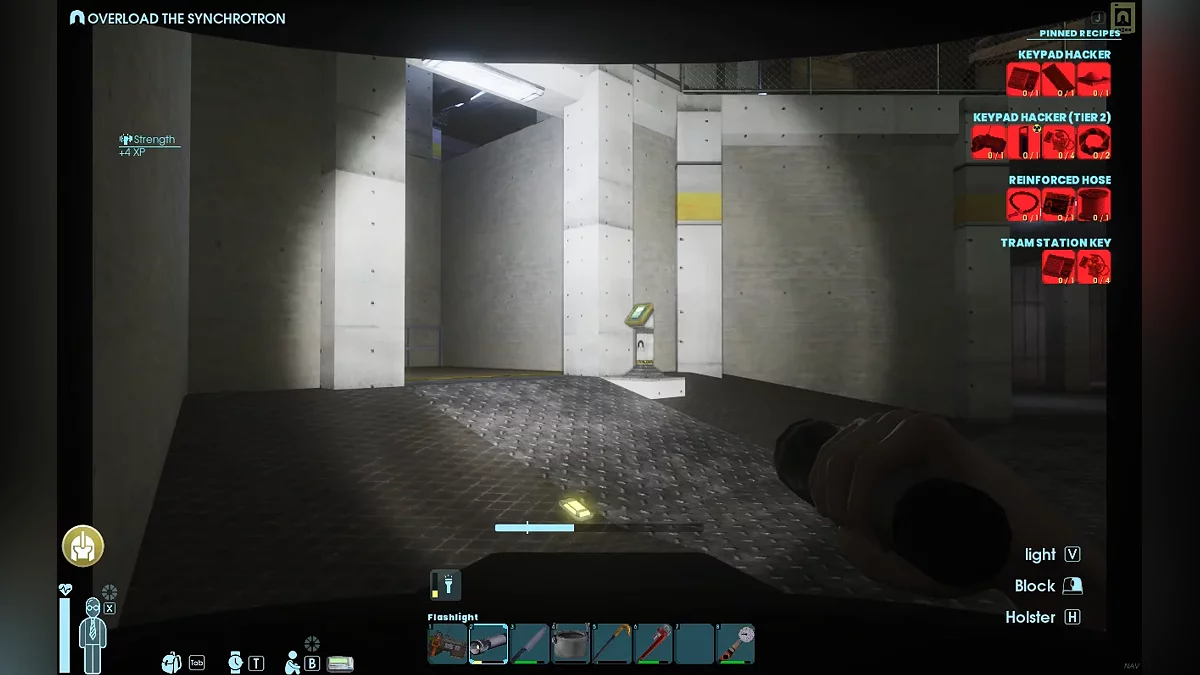 Для создания верстака вам потребуется изолента, металлические трубы и блок питания. Если первые два ресурса вы уже набрали по обходному пути, то для последнего требуется пройти в техническое помещение слева от доктора Джагера.