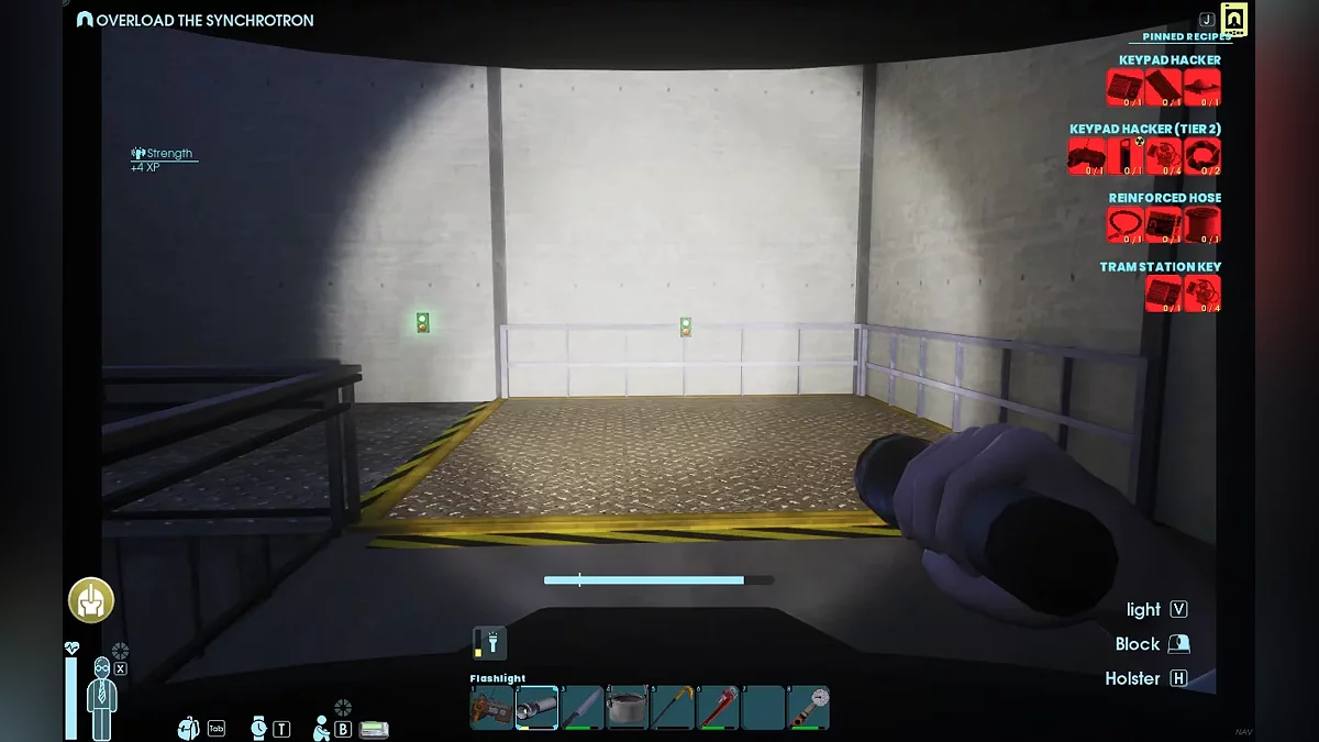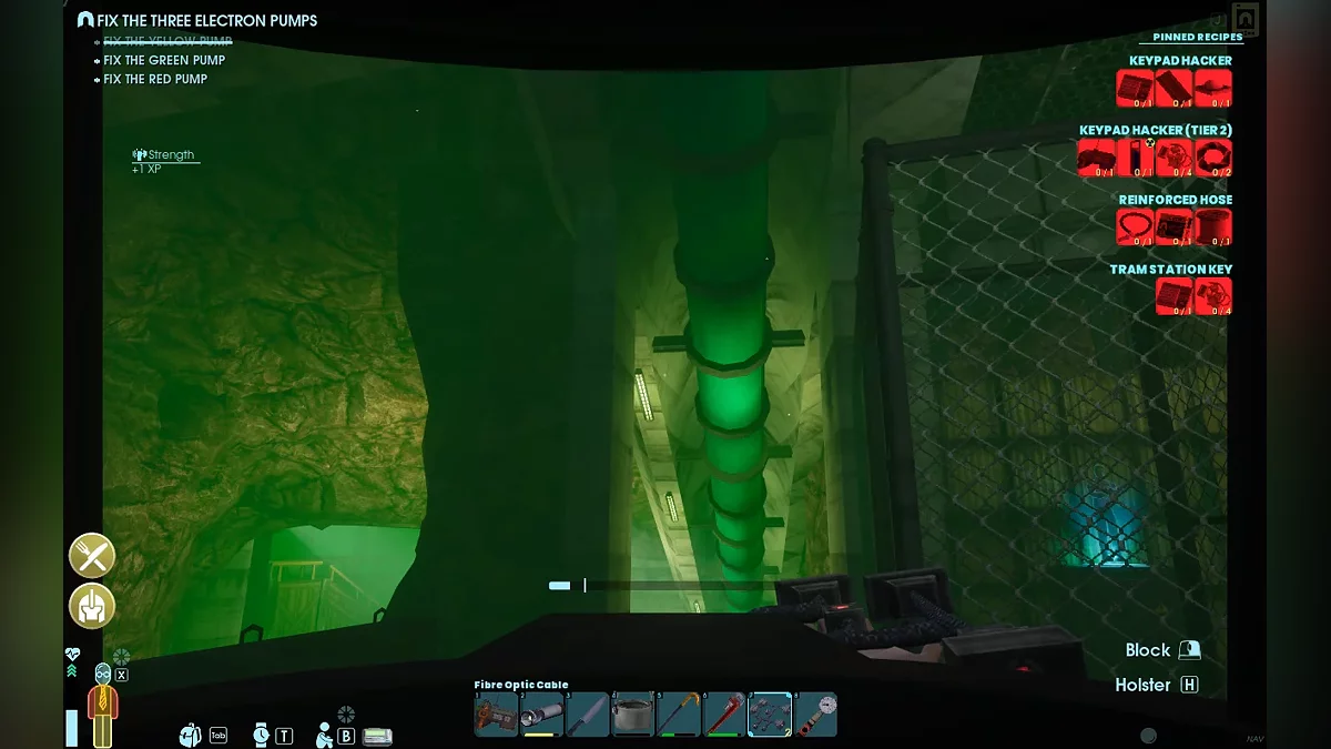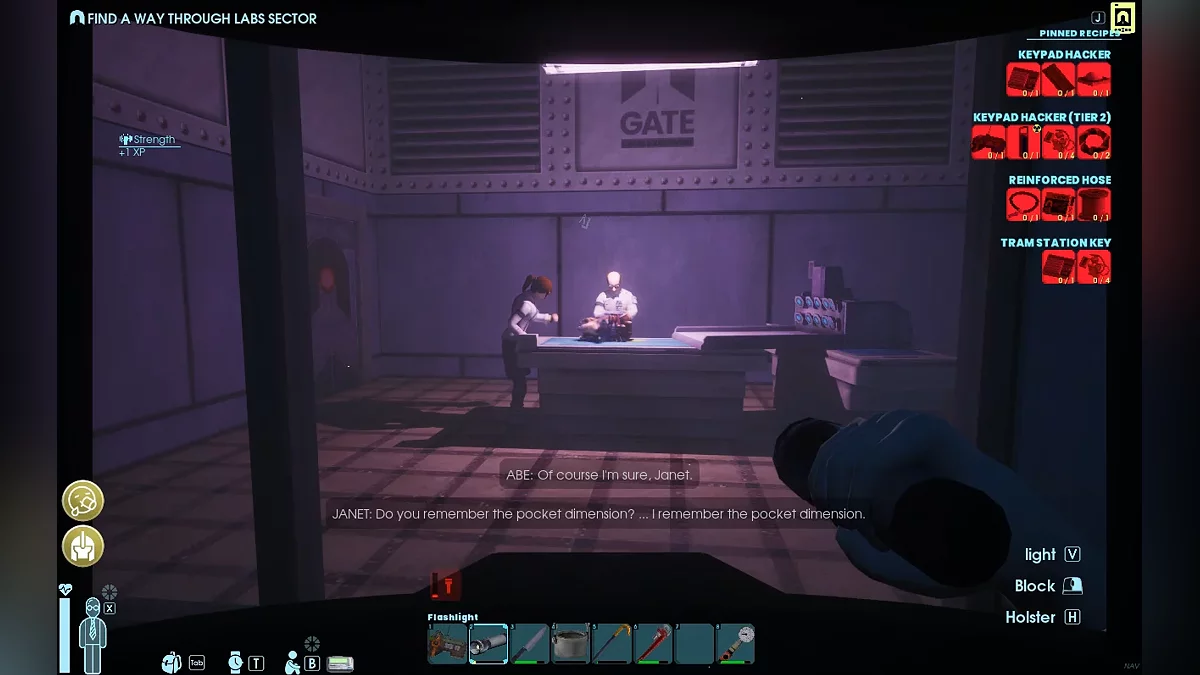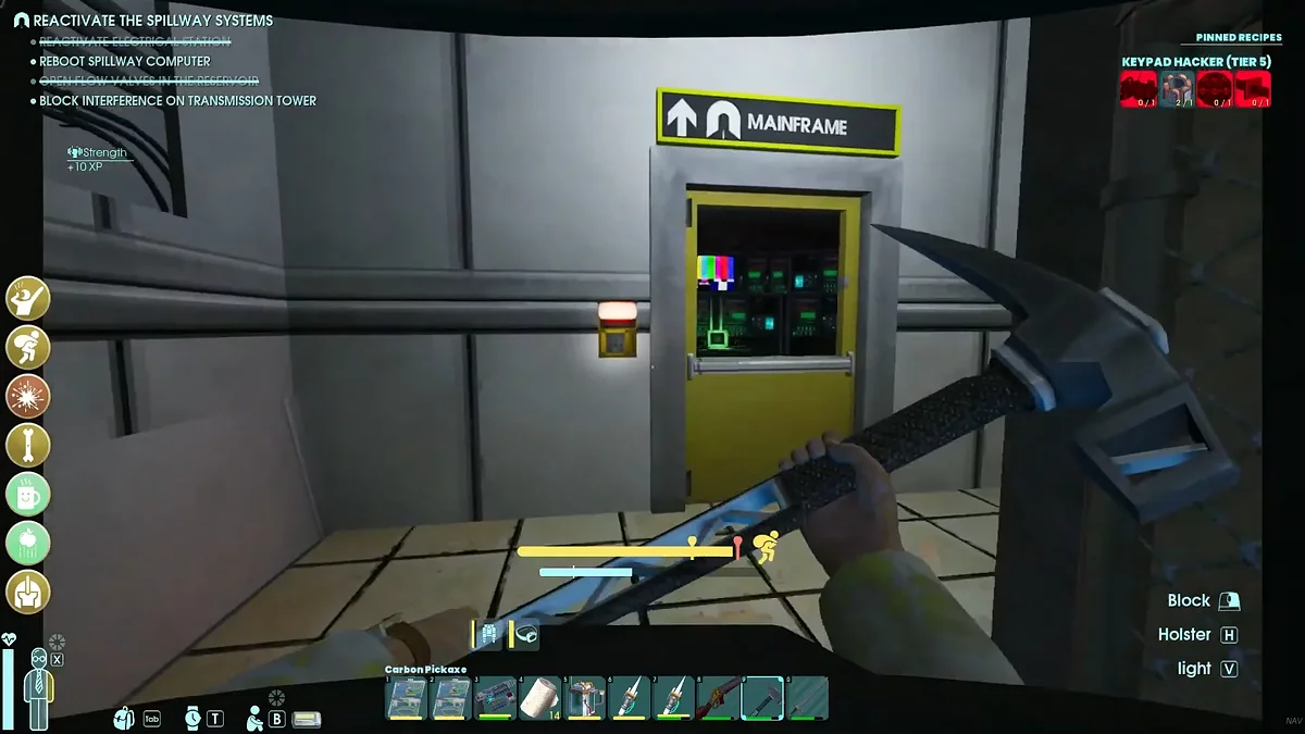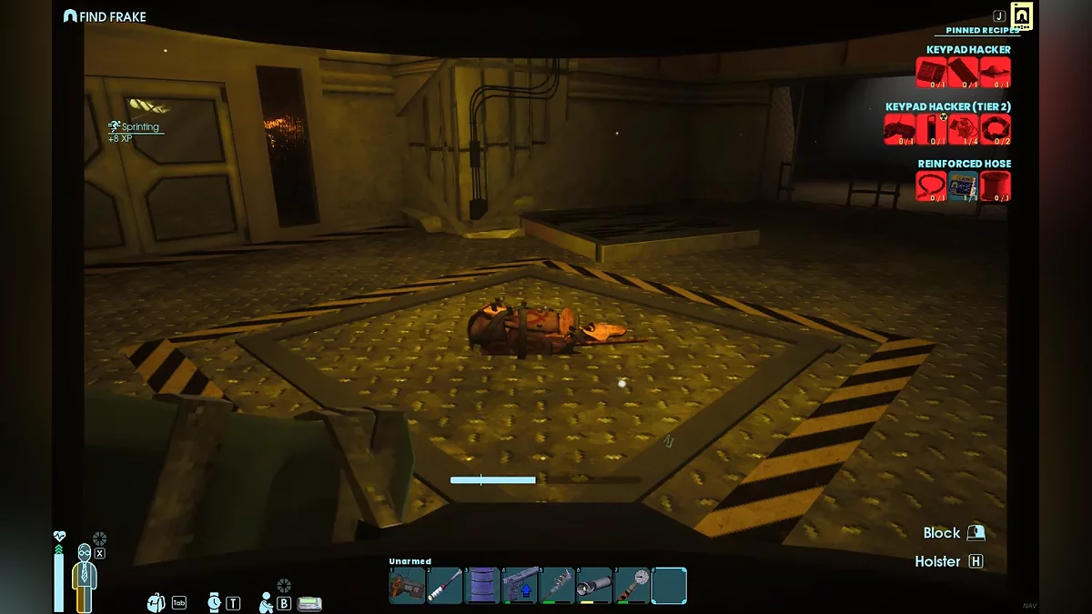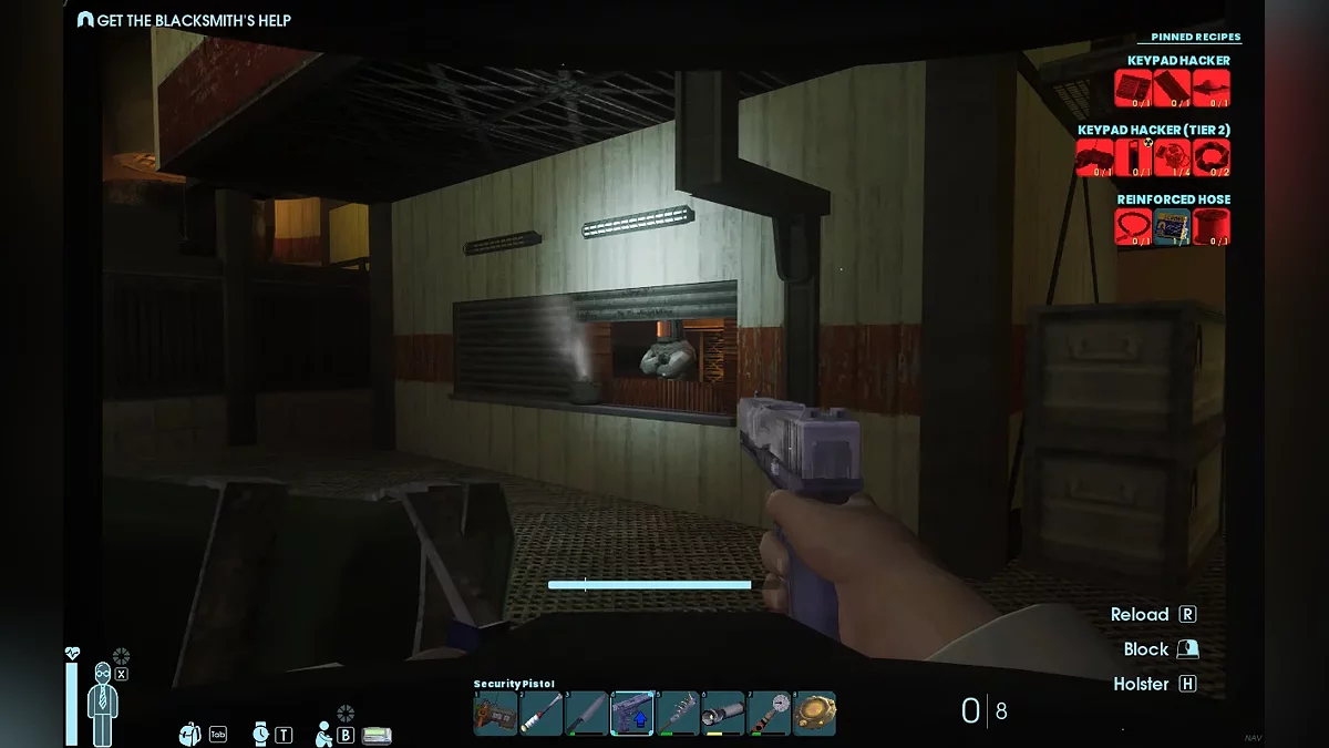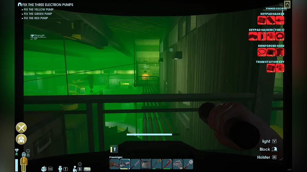 Для создания верстака вам потребуется изолента, металлические трубы и блок питания. Если первые два ресурса вы уже набрали по обходному пути, то для последнего требуется пройти в техническое помещение слева от доктора Джагера.