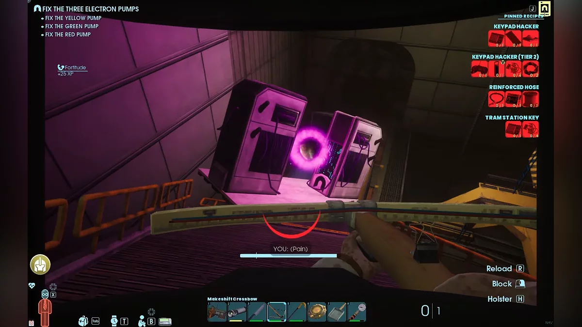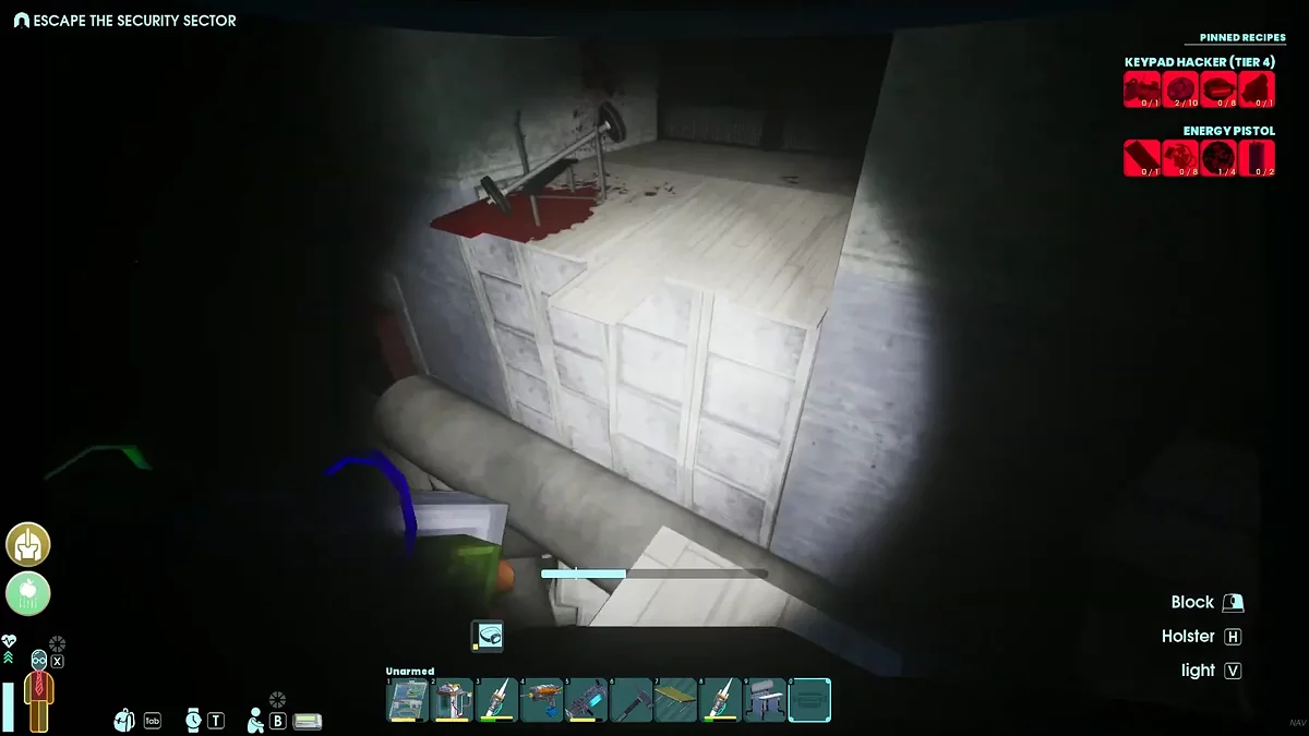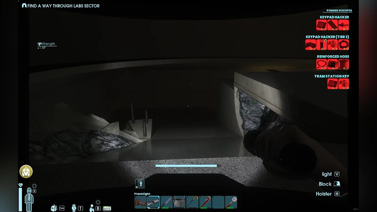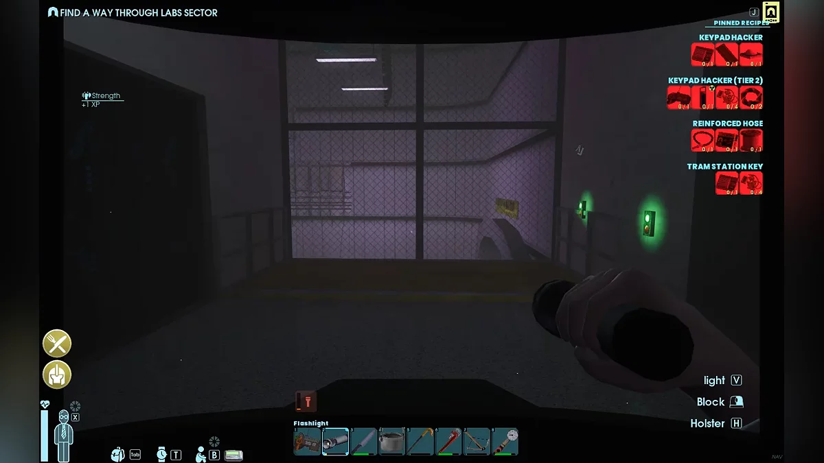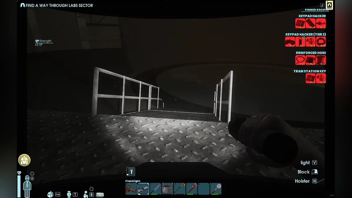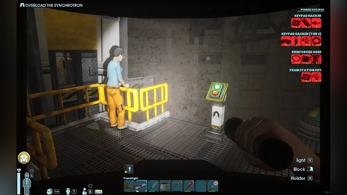 Для создания верстака вам потребуется изолента, металлические трубы и блок питания. Если первые два ресурса вы уже набрали по обходному пути, то для последнего требуется пройти в техническое помещение слева от доктора Джагера.