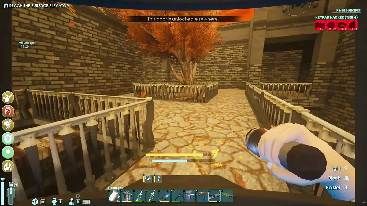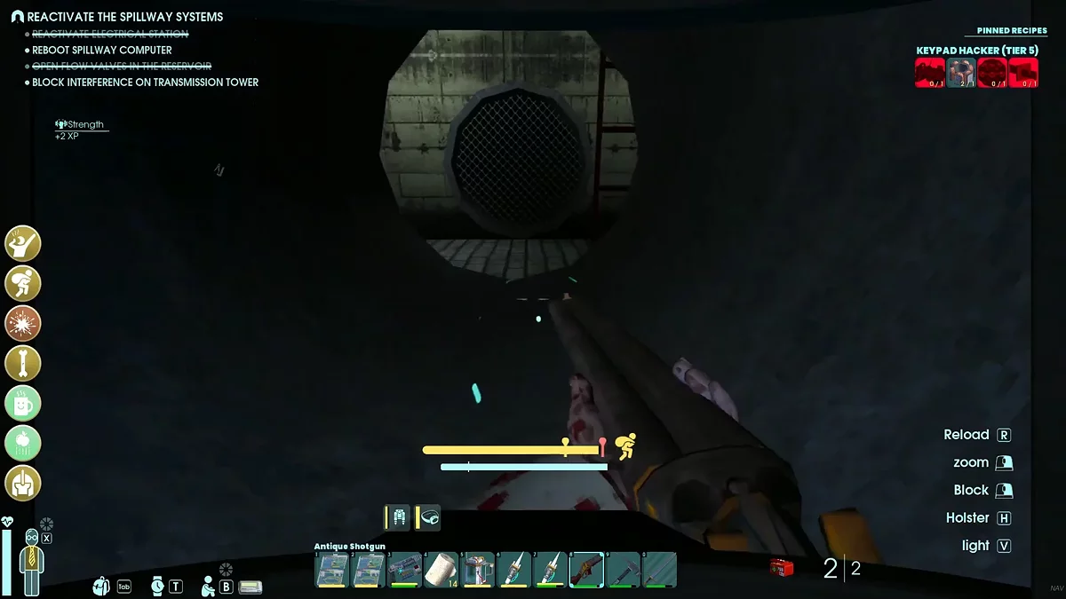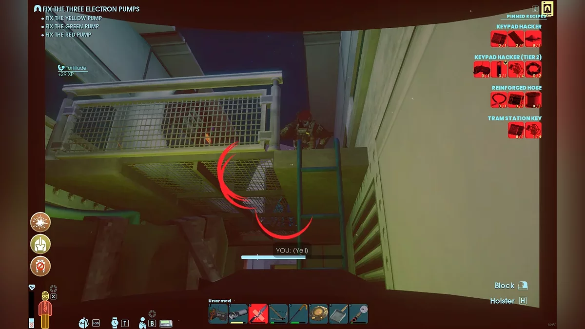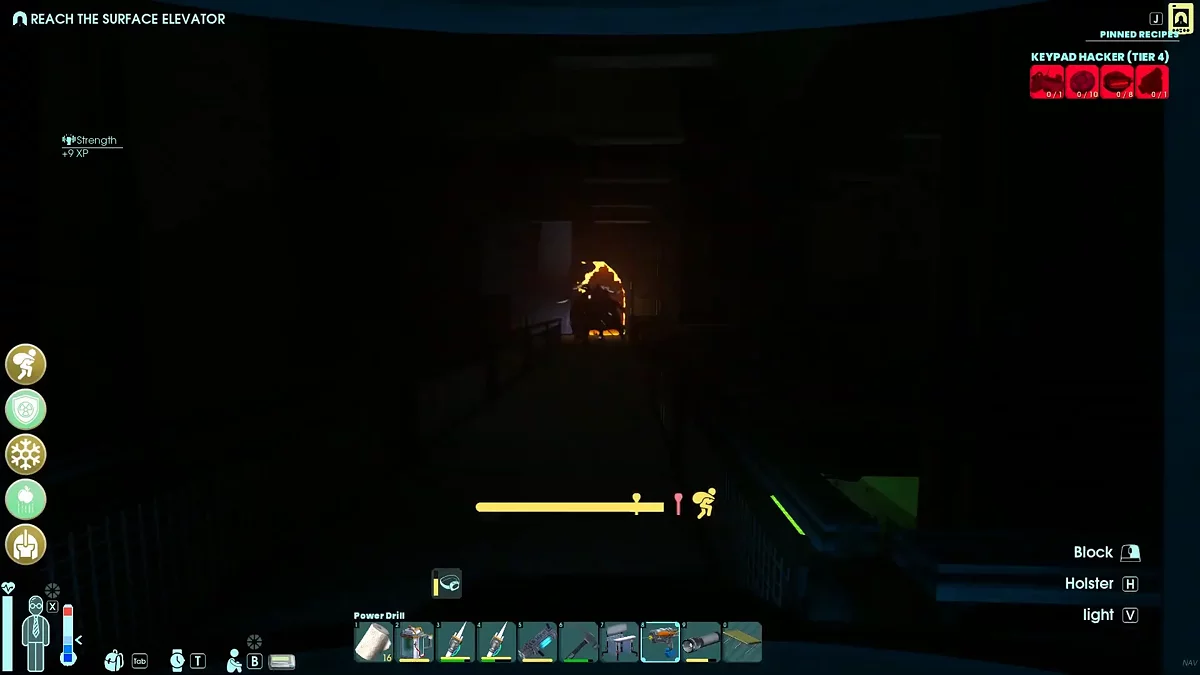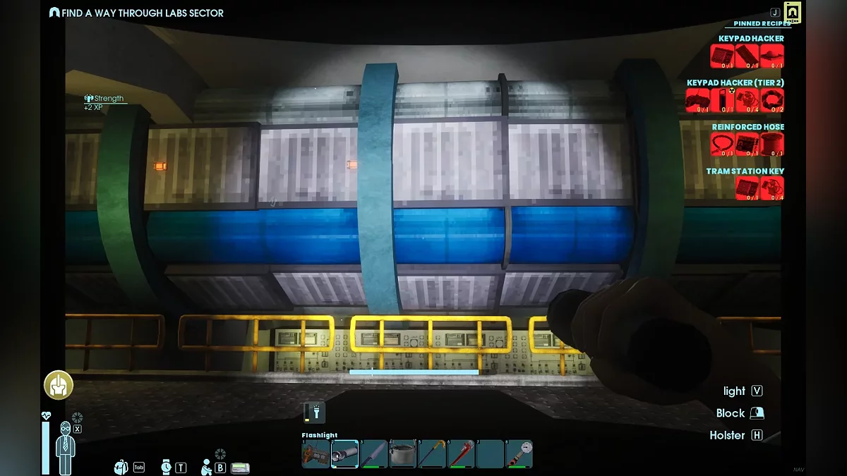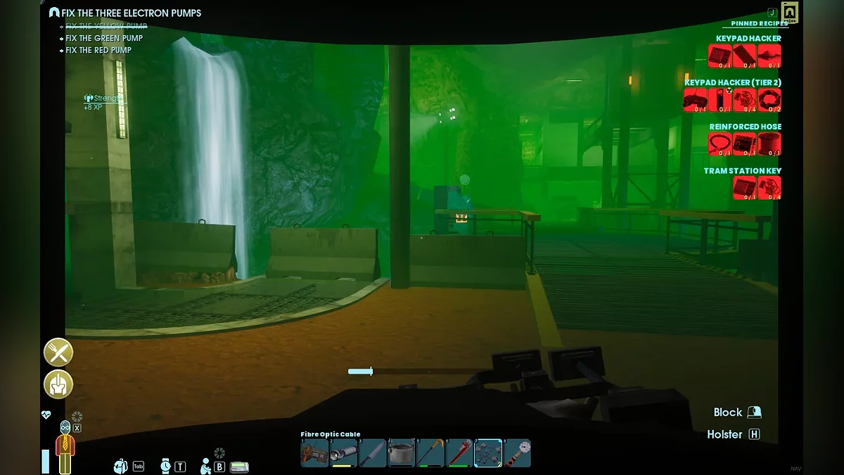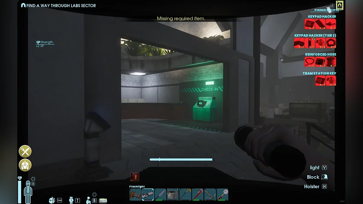 Для создания верстака вам потребуется изолента, металлические трубы и блок питания. Если первые два ресурса вы уже набрали по обходному пути, то для последнего требуется пройти в техническое помещение слева от доктора Джагера.