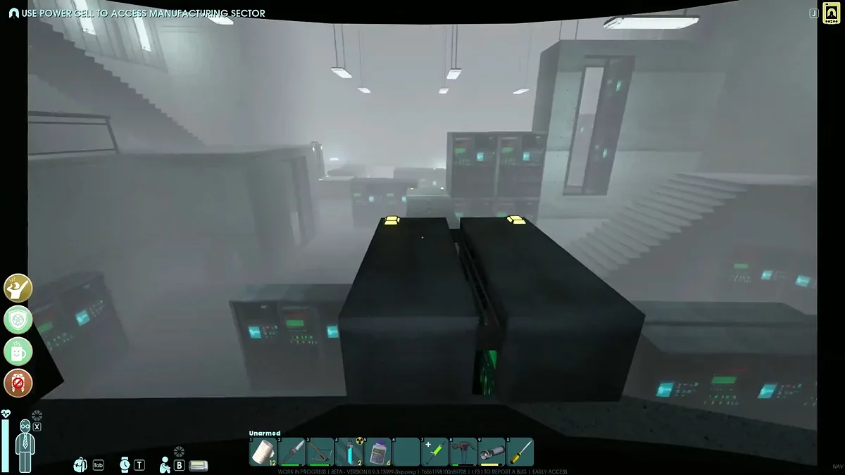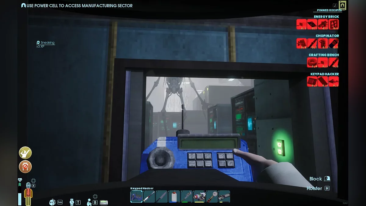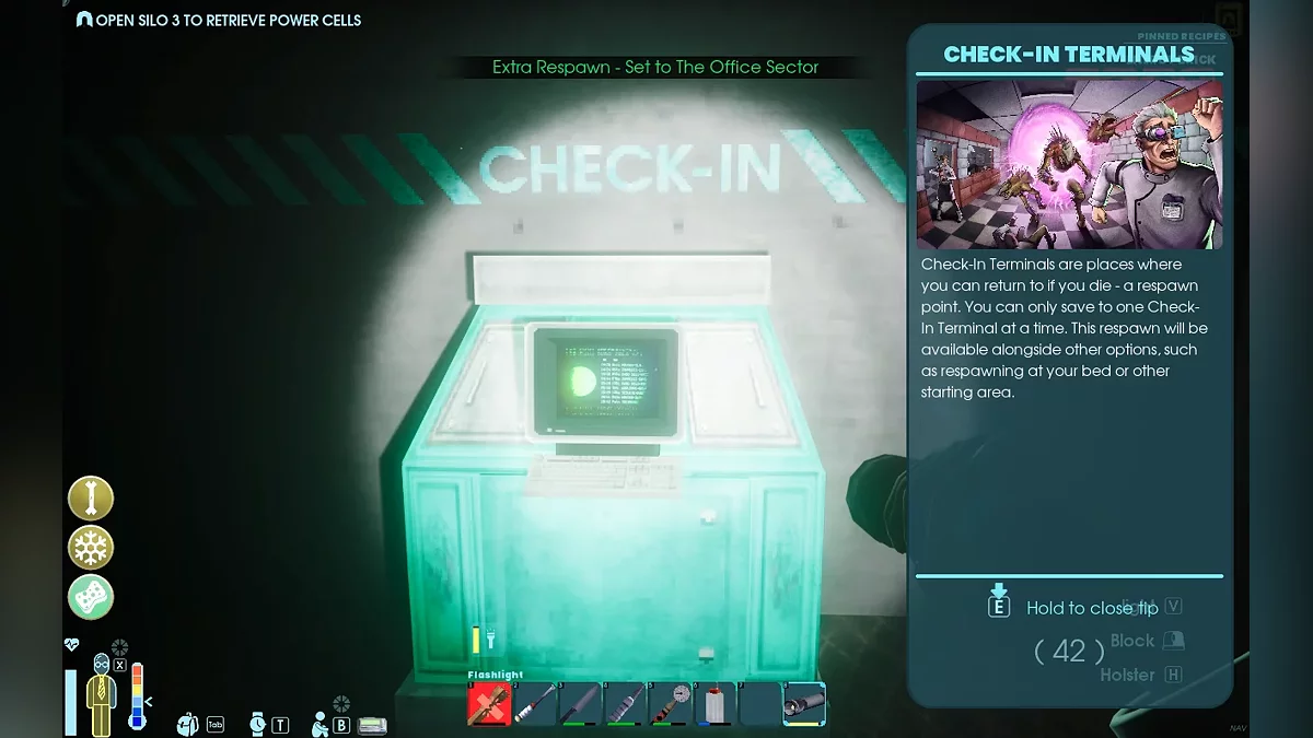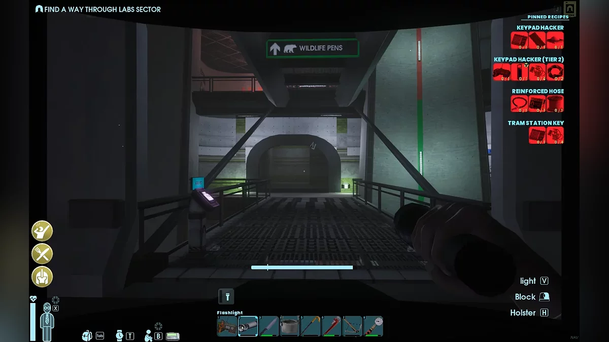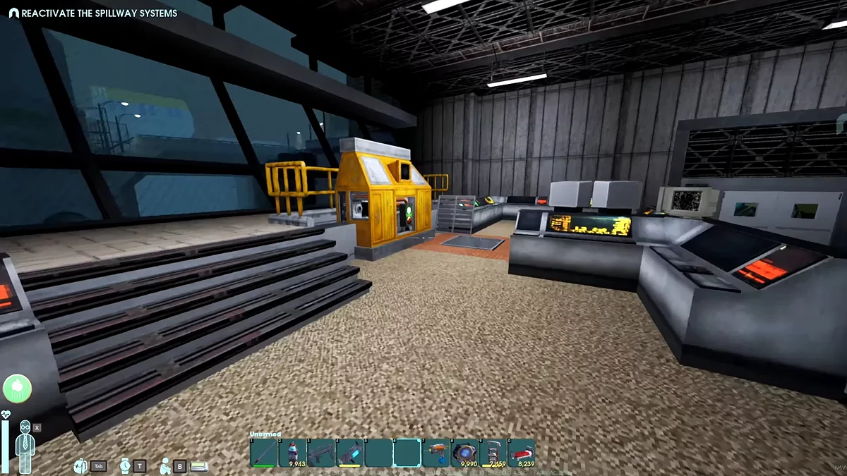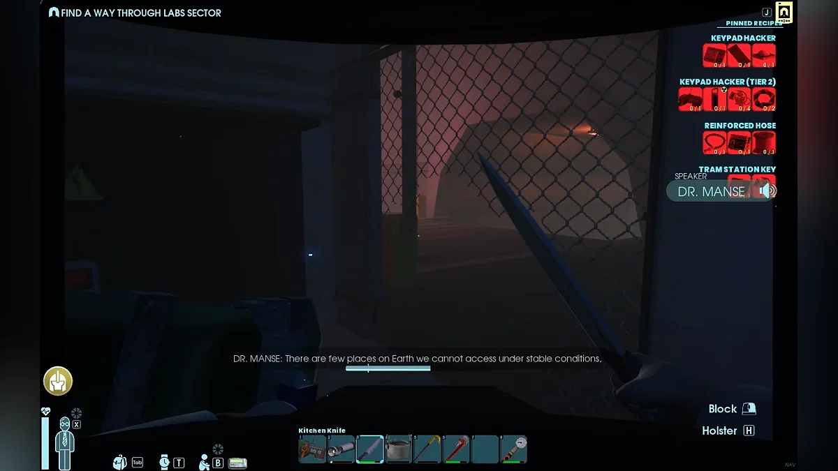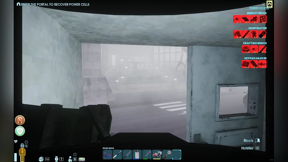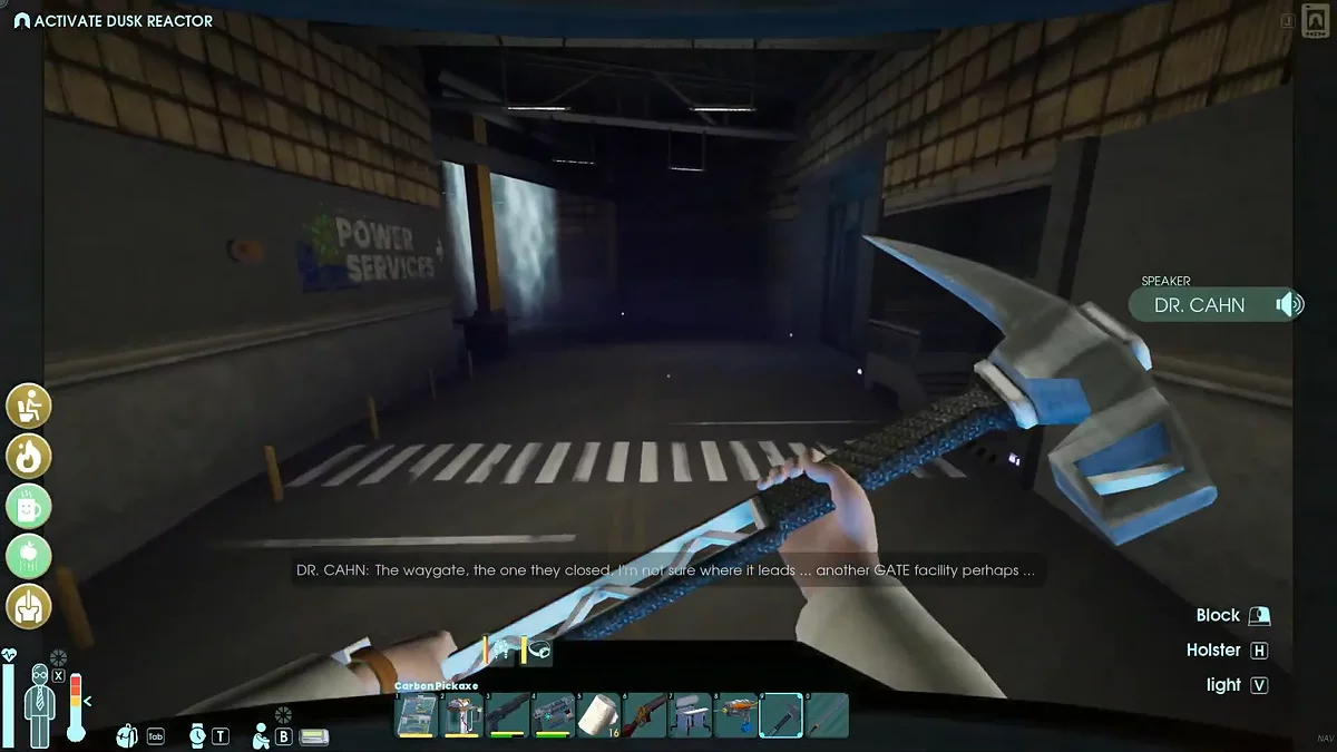 Снаружи вас ждет доктор Джагер. Чтобы попасть к нему, необходимо изготовить энергоблок и вставить его в отсек справа от дверей. Для этого надо предварительно поставить верстак где-нибудь неподалеку.