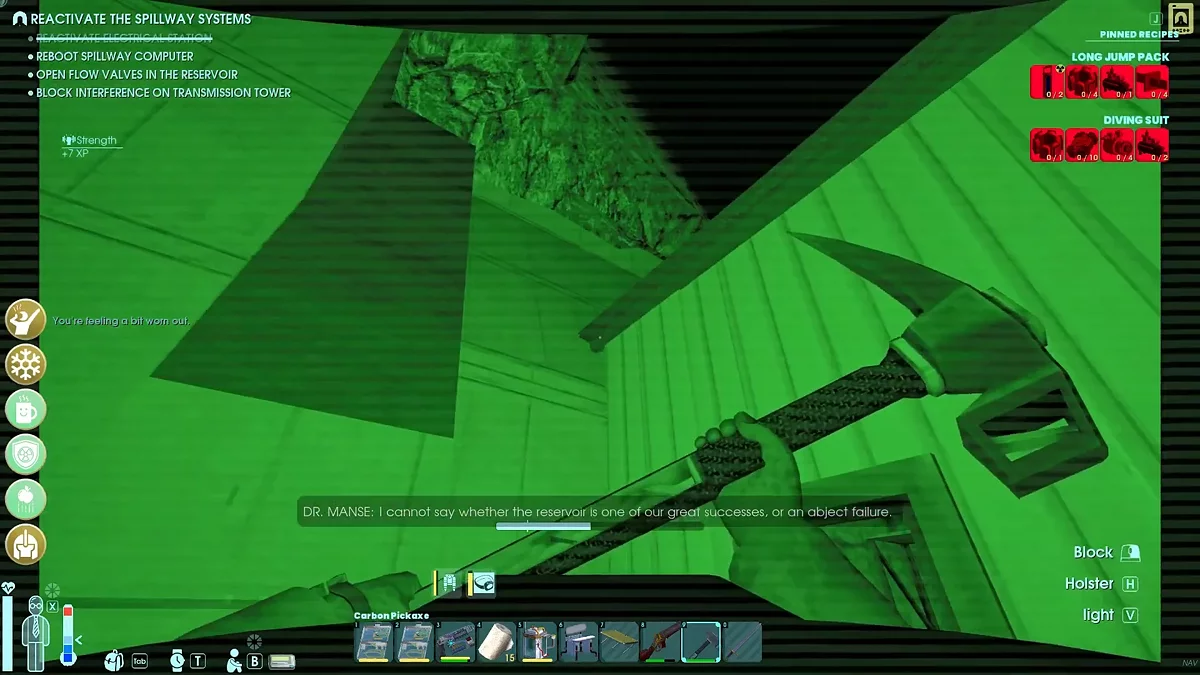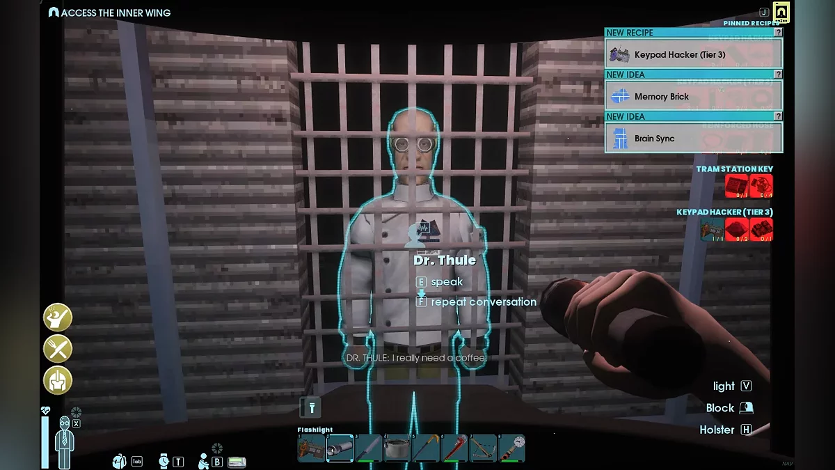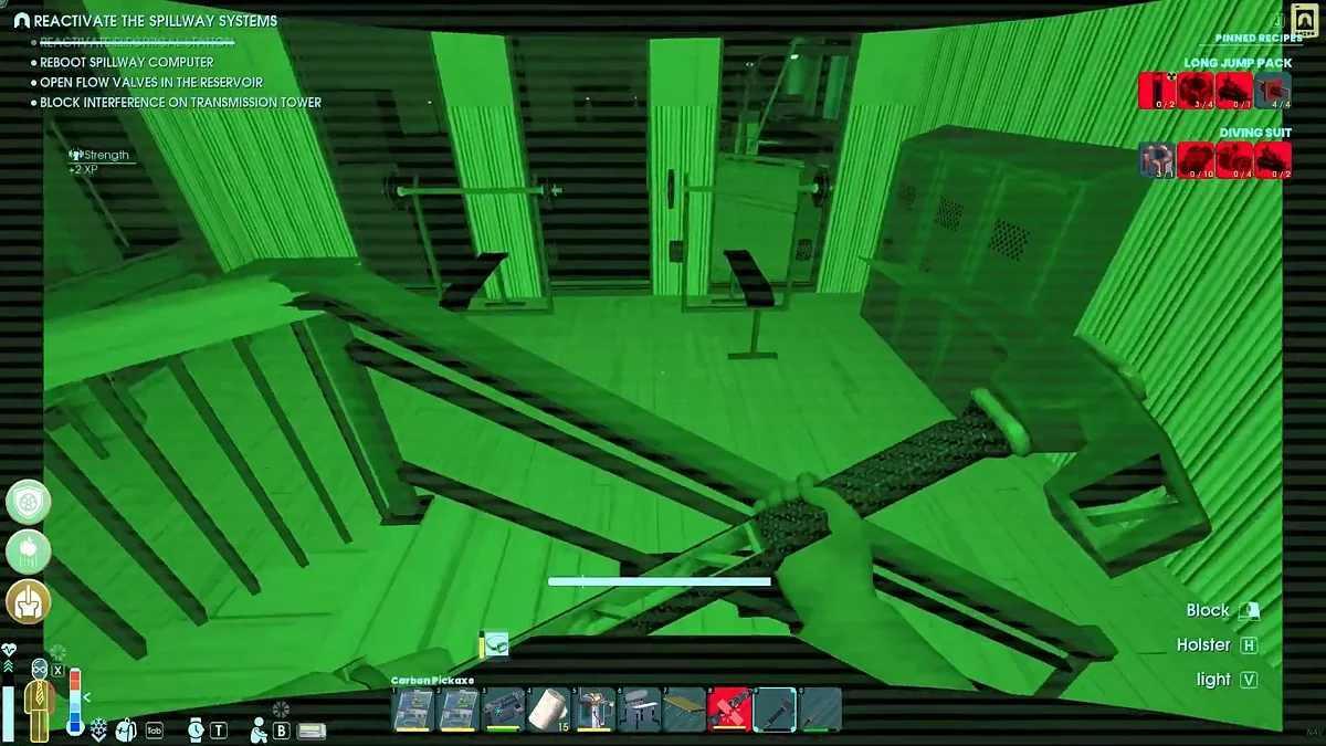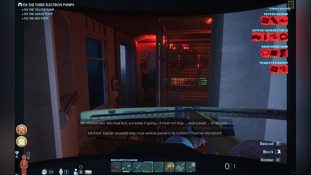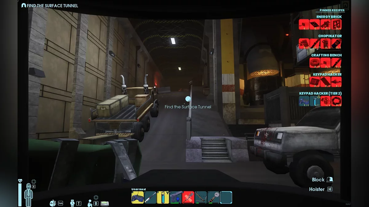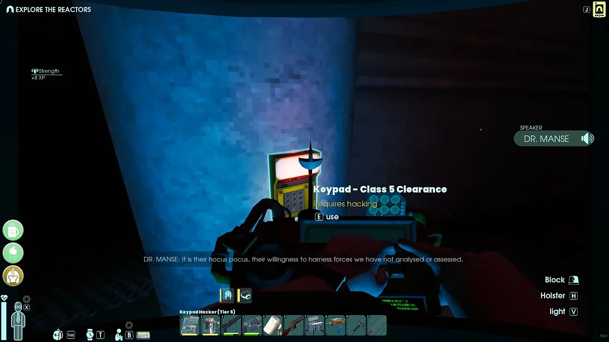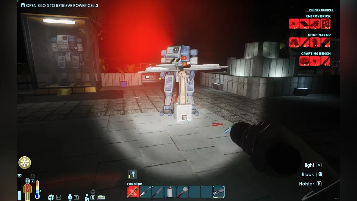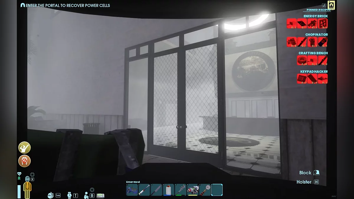 Снаружи вас ждет доктор Джагер. Чтобы попасть к нему, необходимо изготовить энергоблок и вставить его в отсек справа от дверей. Для этого надо предварительно поставить верстак где-нибудь неподалеку.