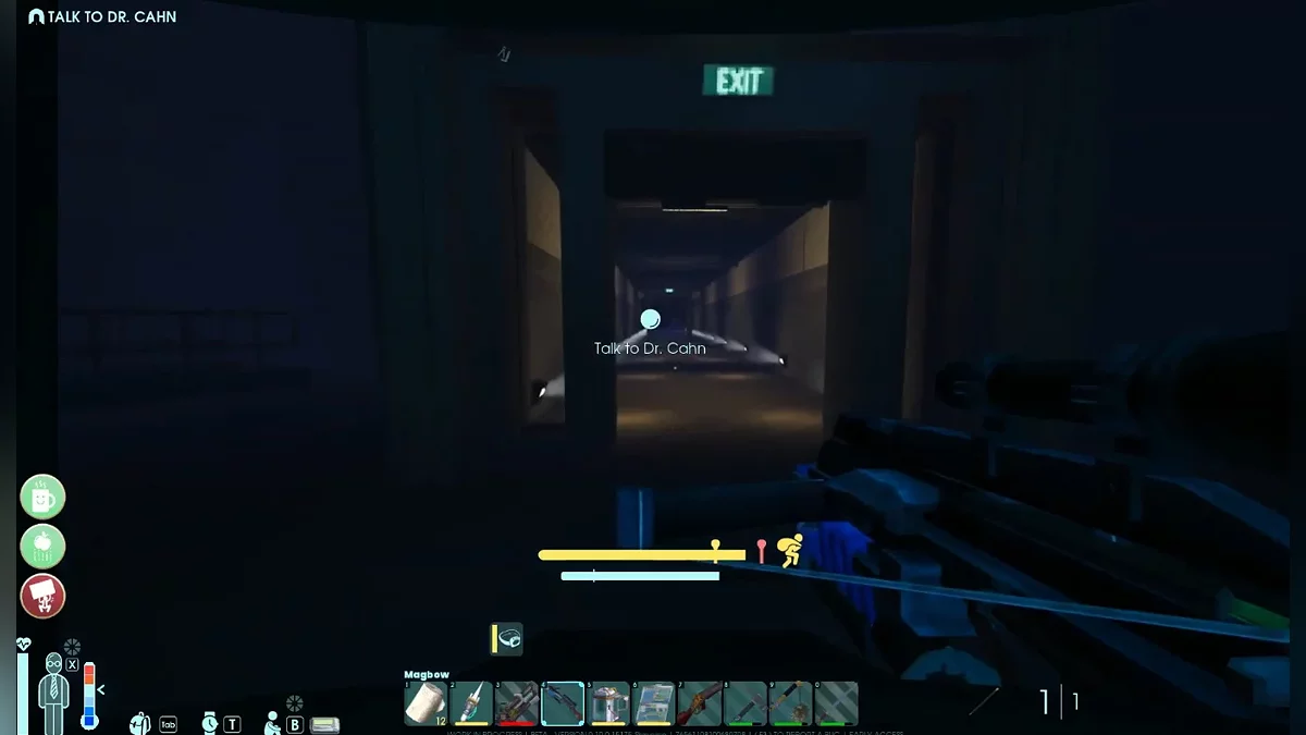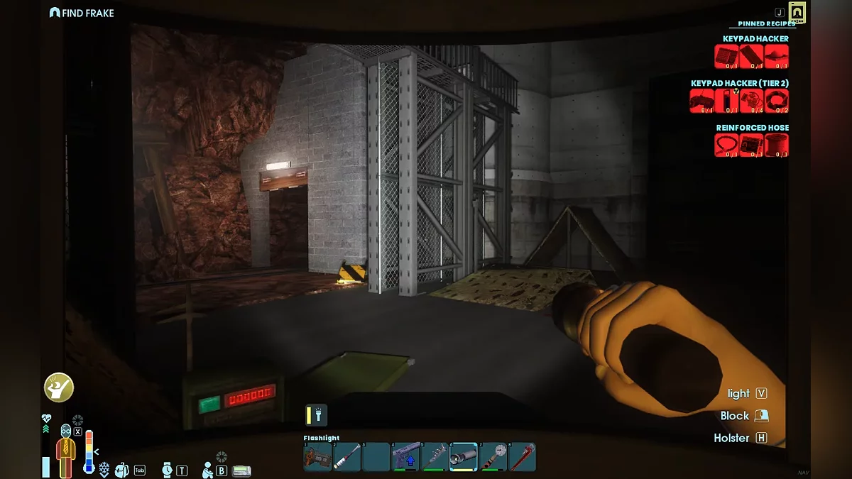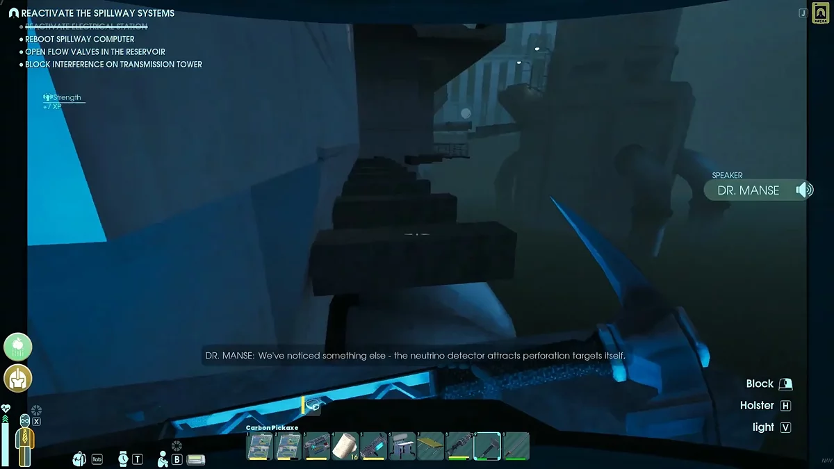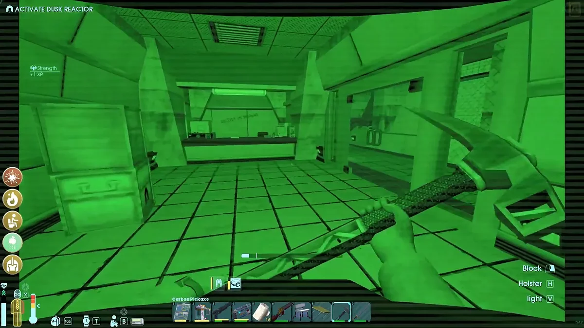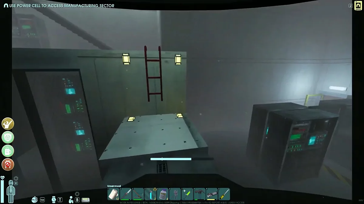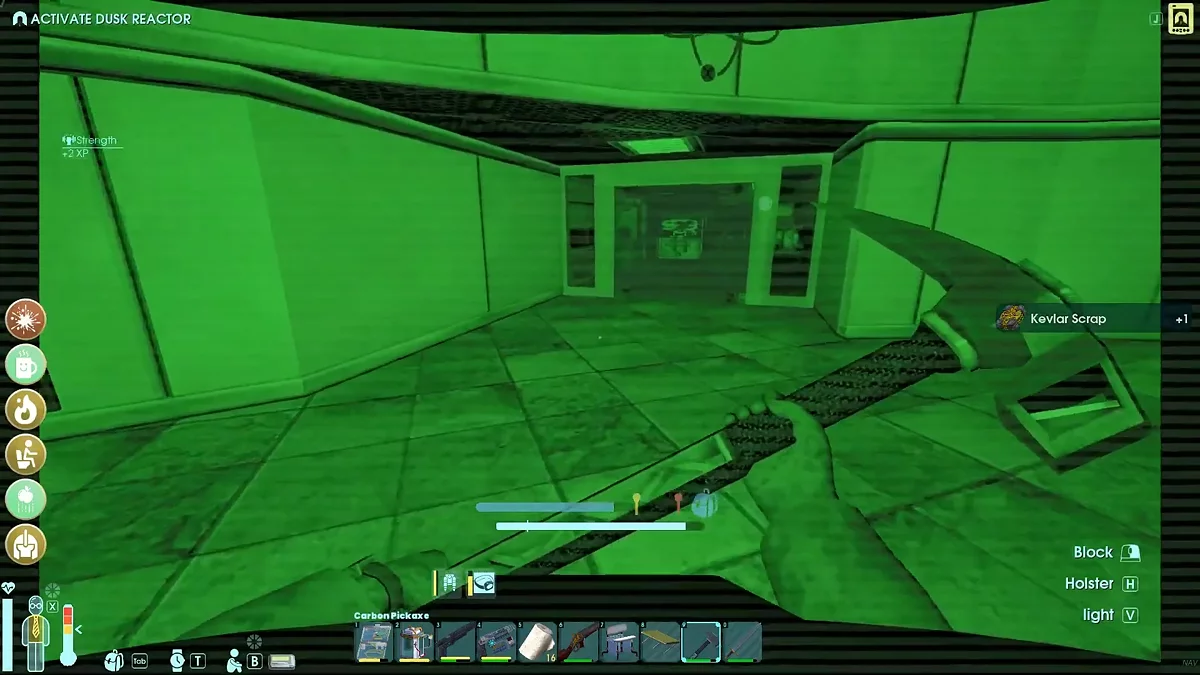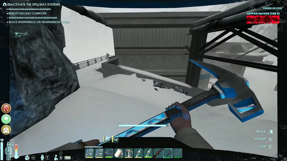 Снаружи вас ждет доктор Джагер. Чтобы попасть к нему, необходимо изготовить энергоблок и вставить его в отсек справа от дверей. Для этого надо предварительно поставить верстак где-нибудь неподалеку.