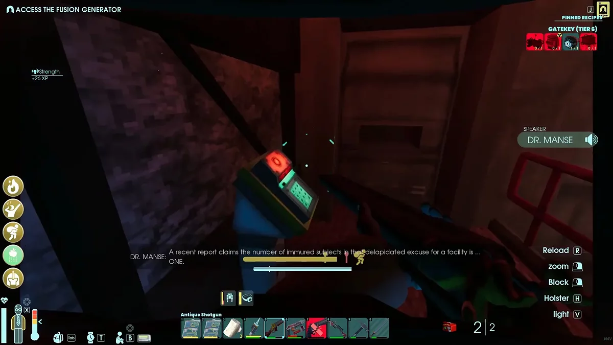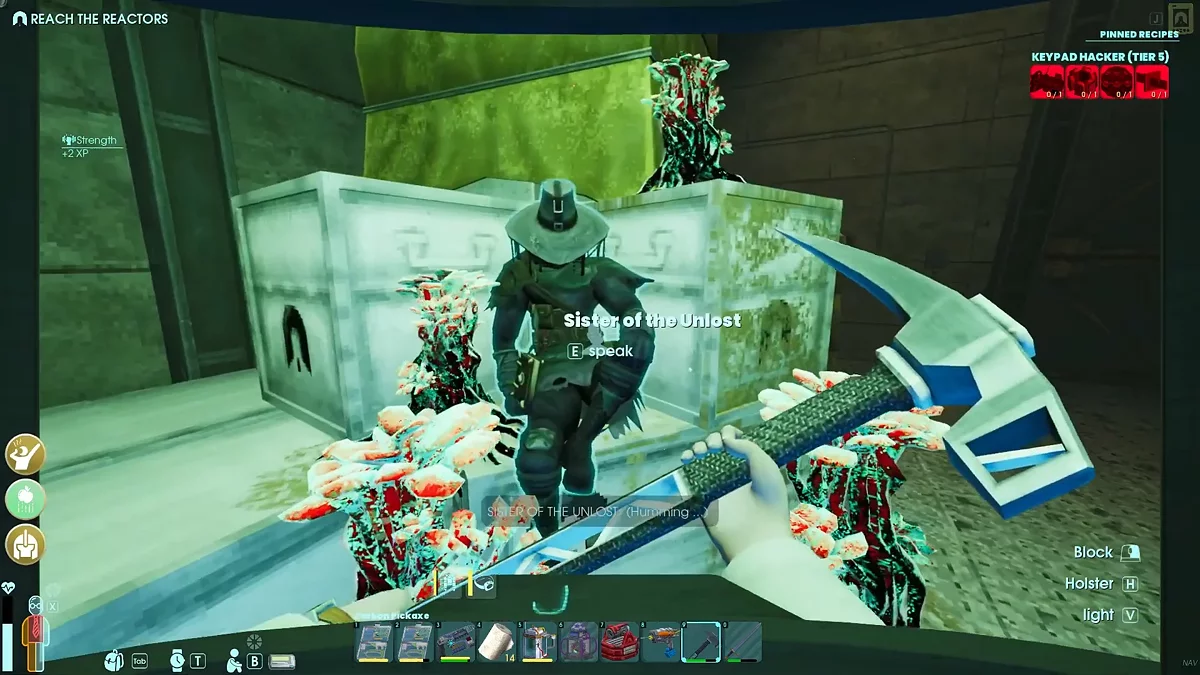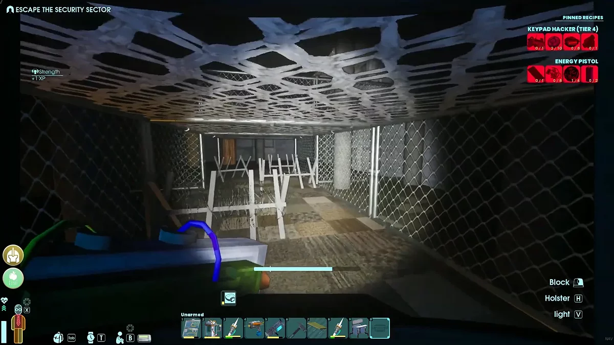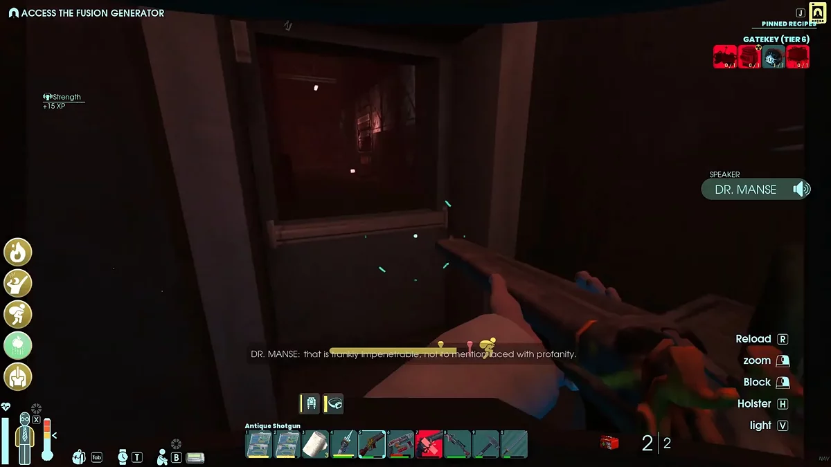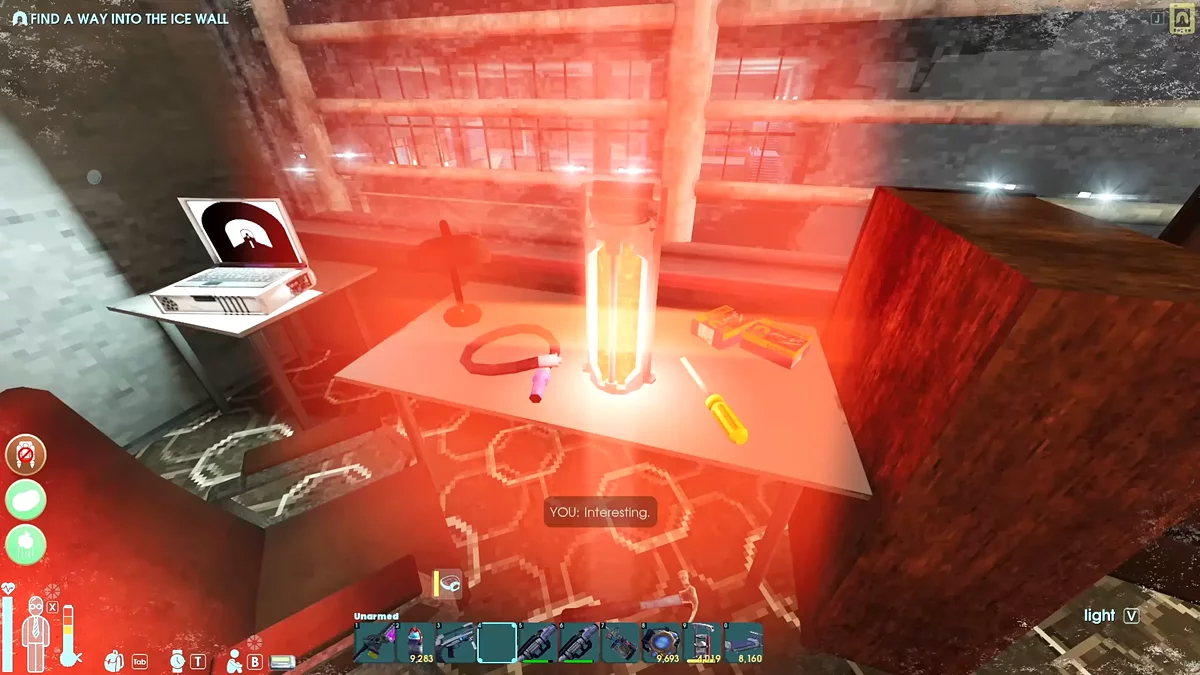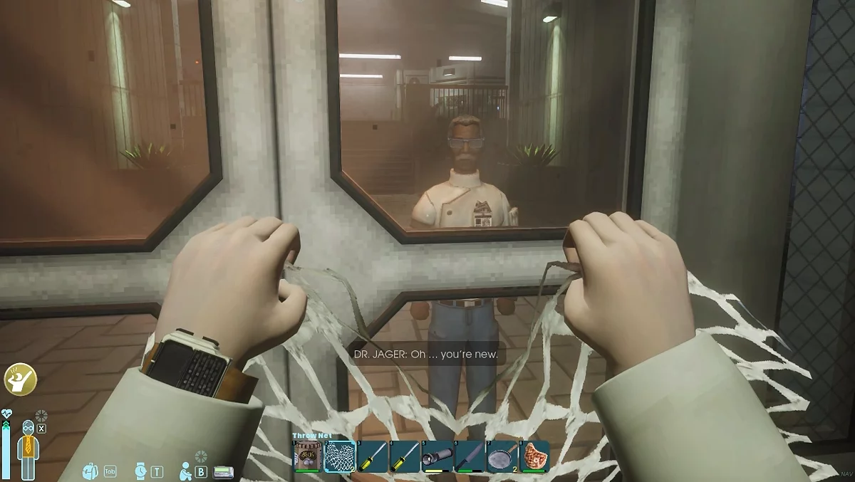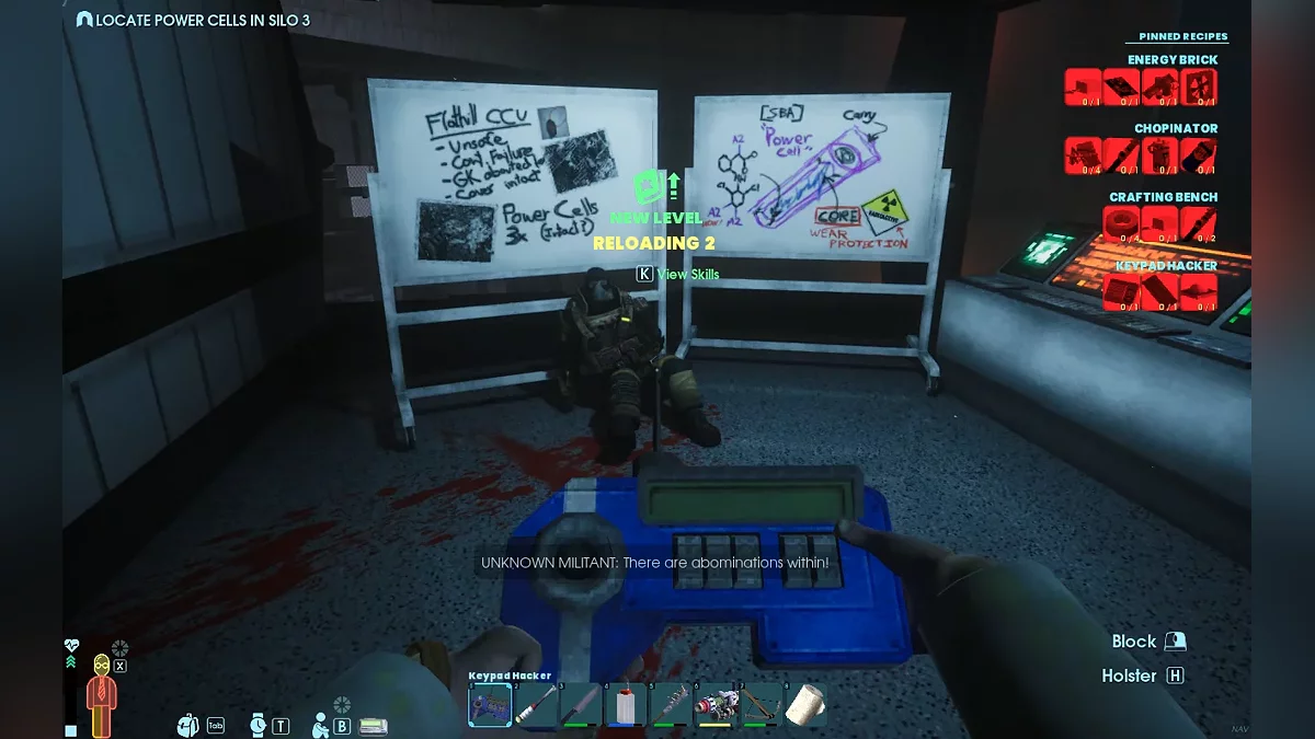 Снаружи вас ждет доктор Джагер. Чтобы попасть к нему, необходимо изготовить энергоблок и вставить его в отсек справа от дверей. Для этого надо предварительно поставить верстак где-нибудь неподалеку.