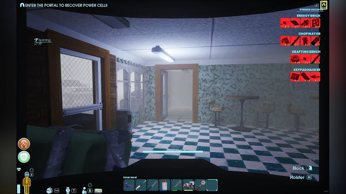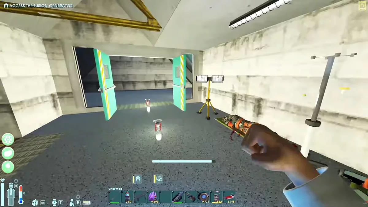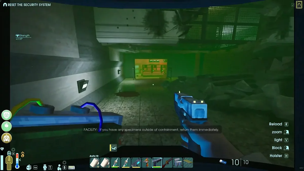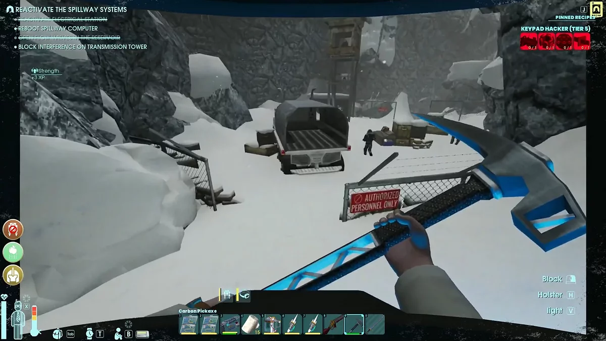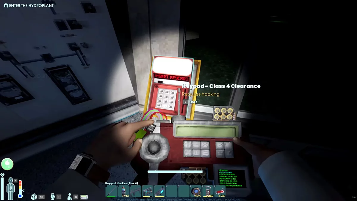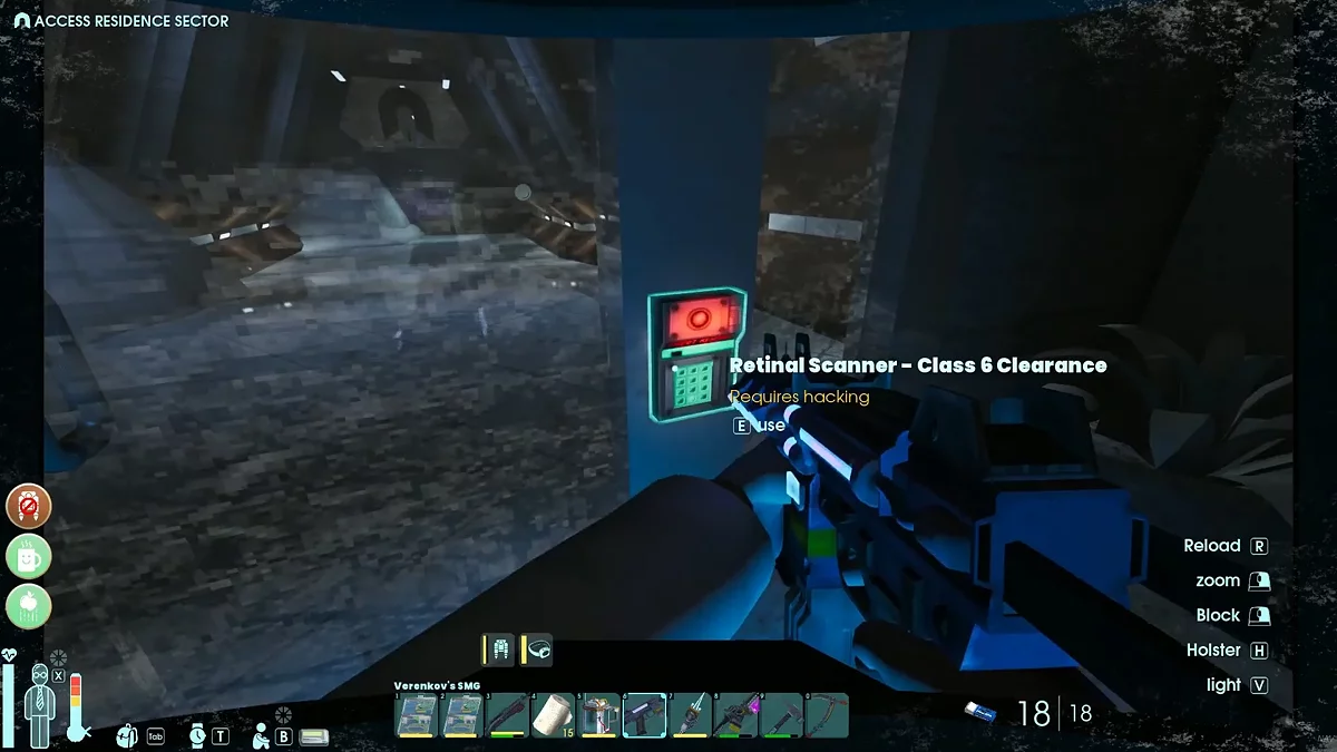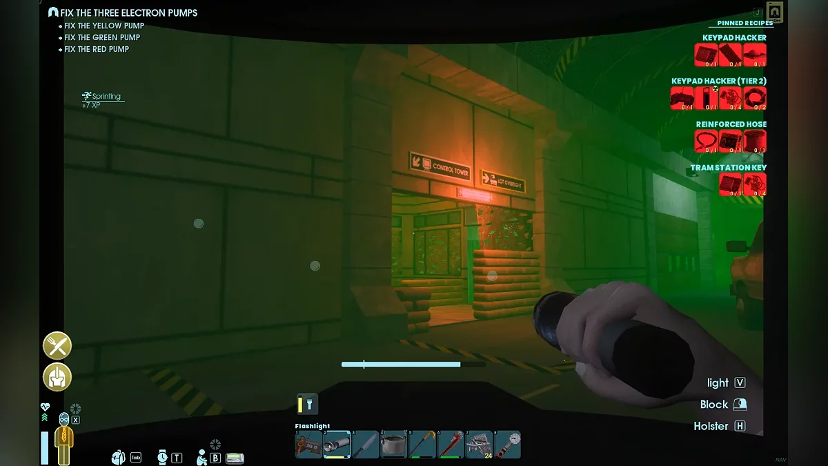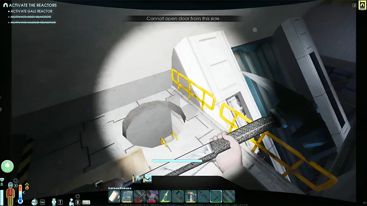Снаружи вас ждет доктор Джагер. Чтобы попасть к нему, необходимо изготовить энергоблок и вставить его в отсек справа от дверей. Для этого надо предварительно поставить верстак где-нибудь неподалеку.