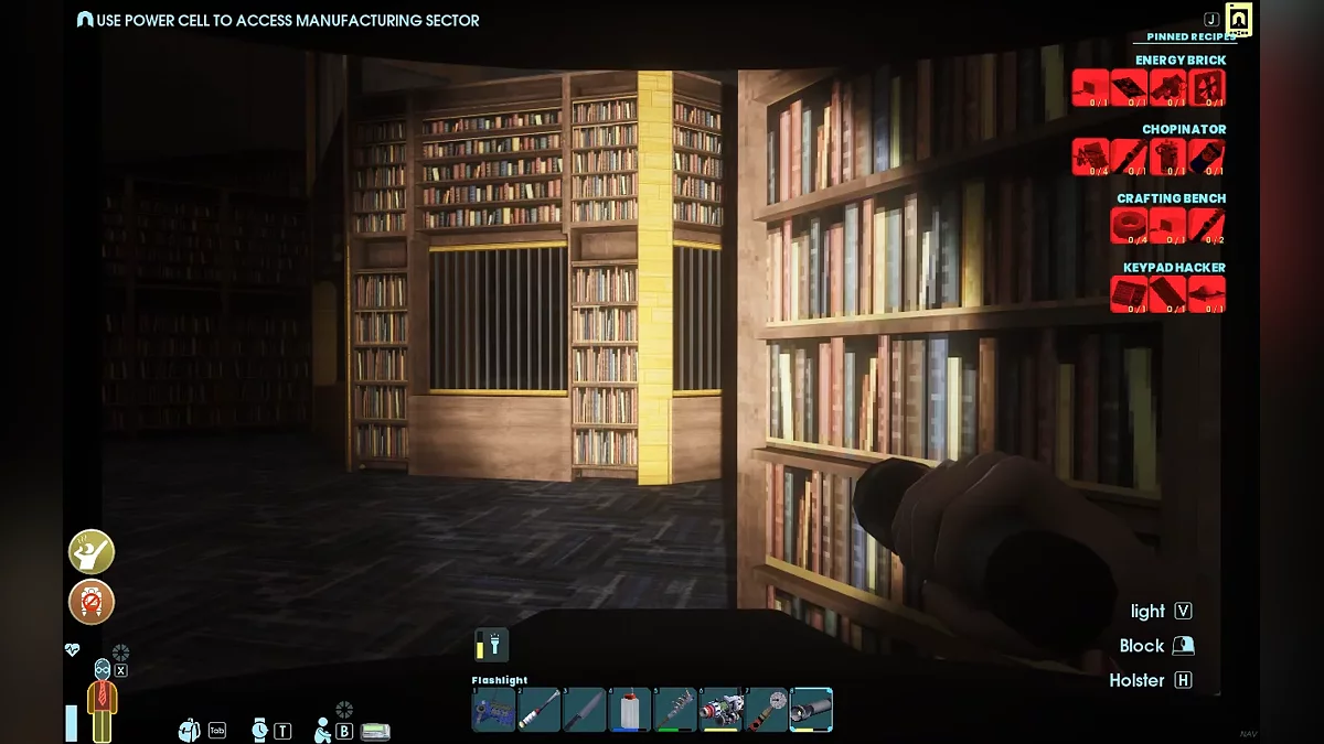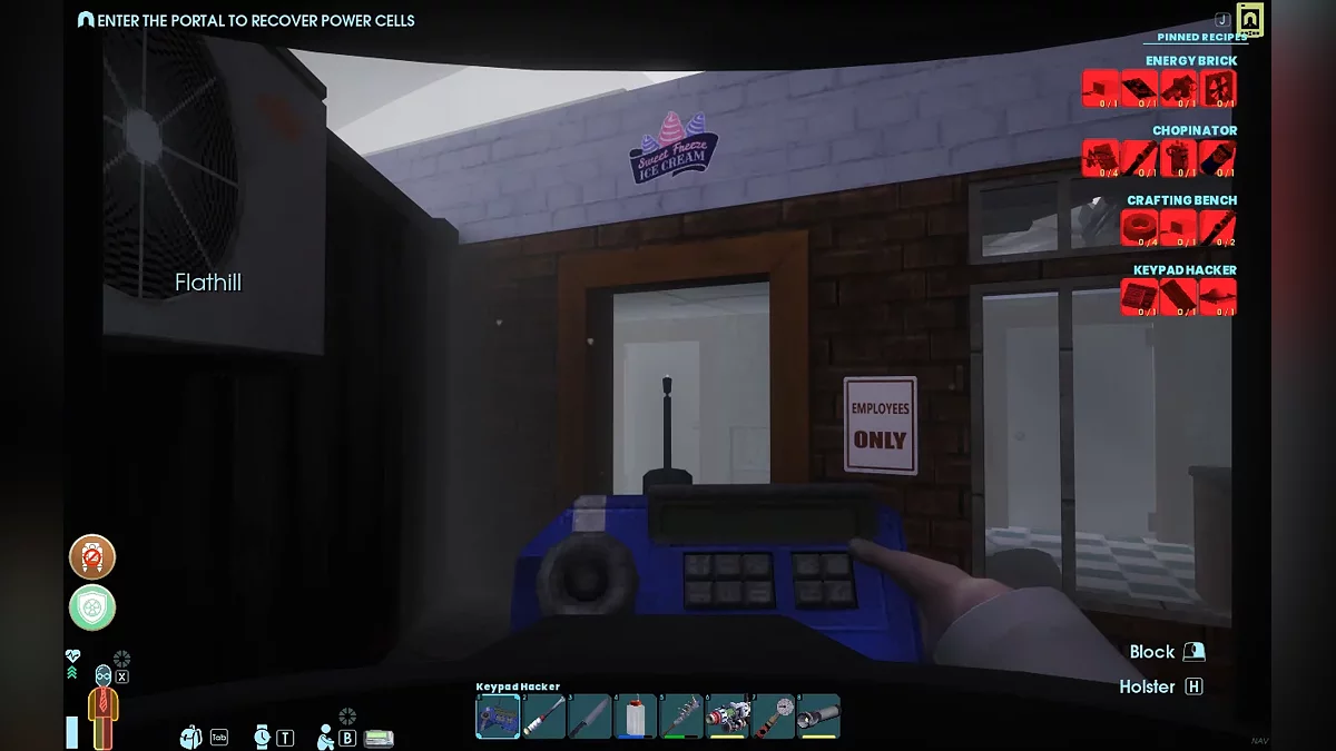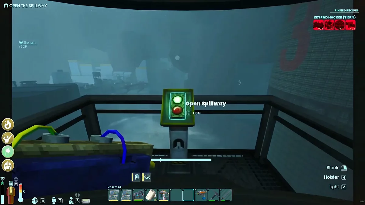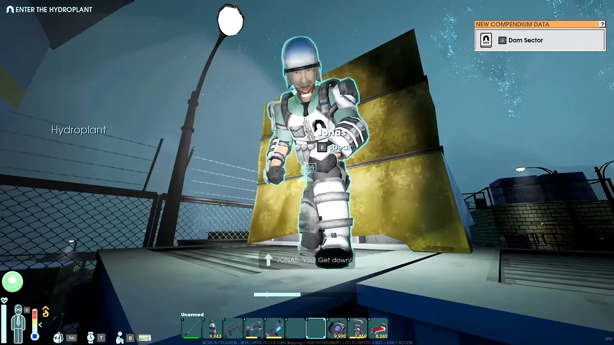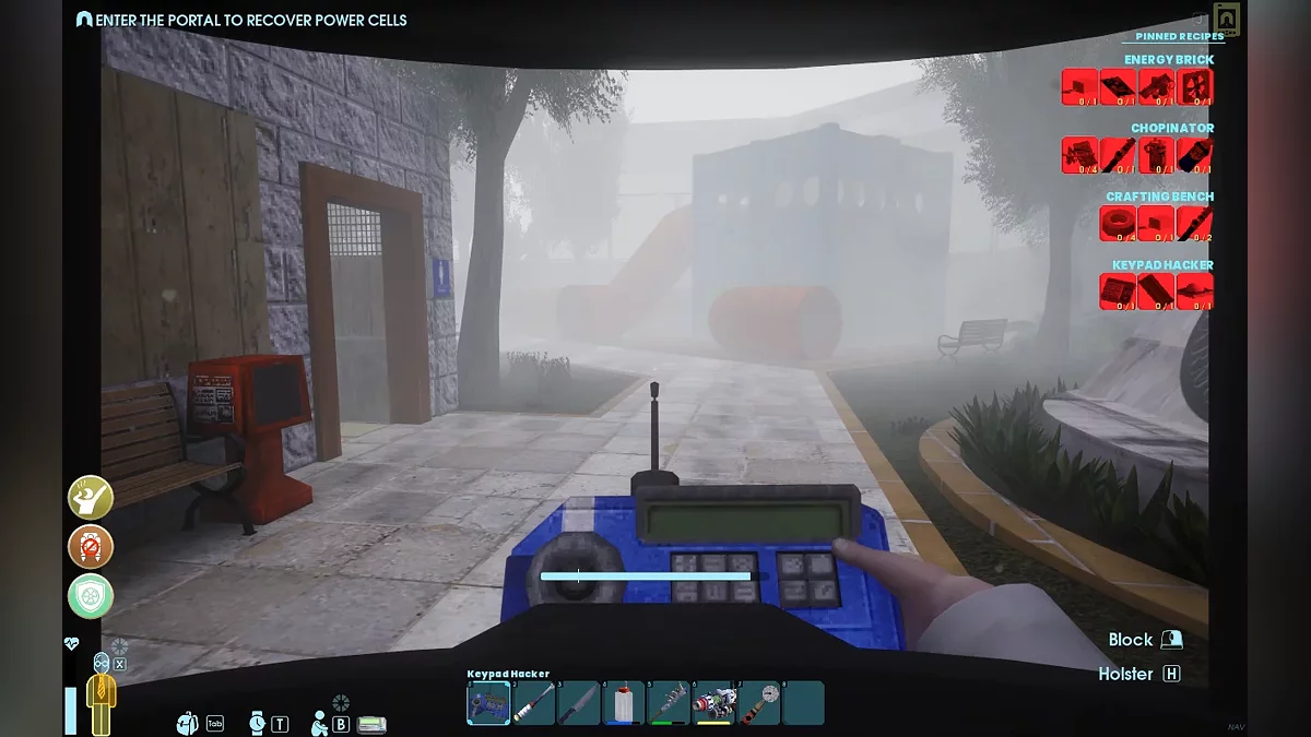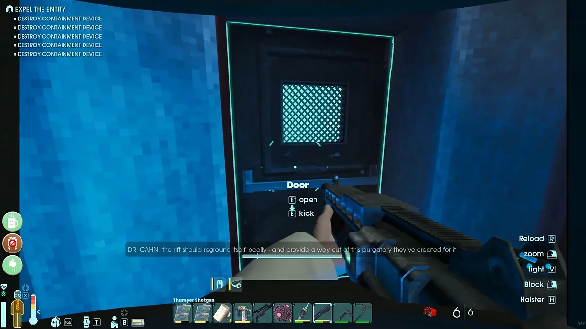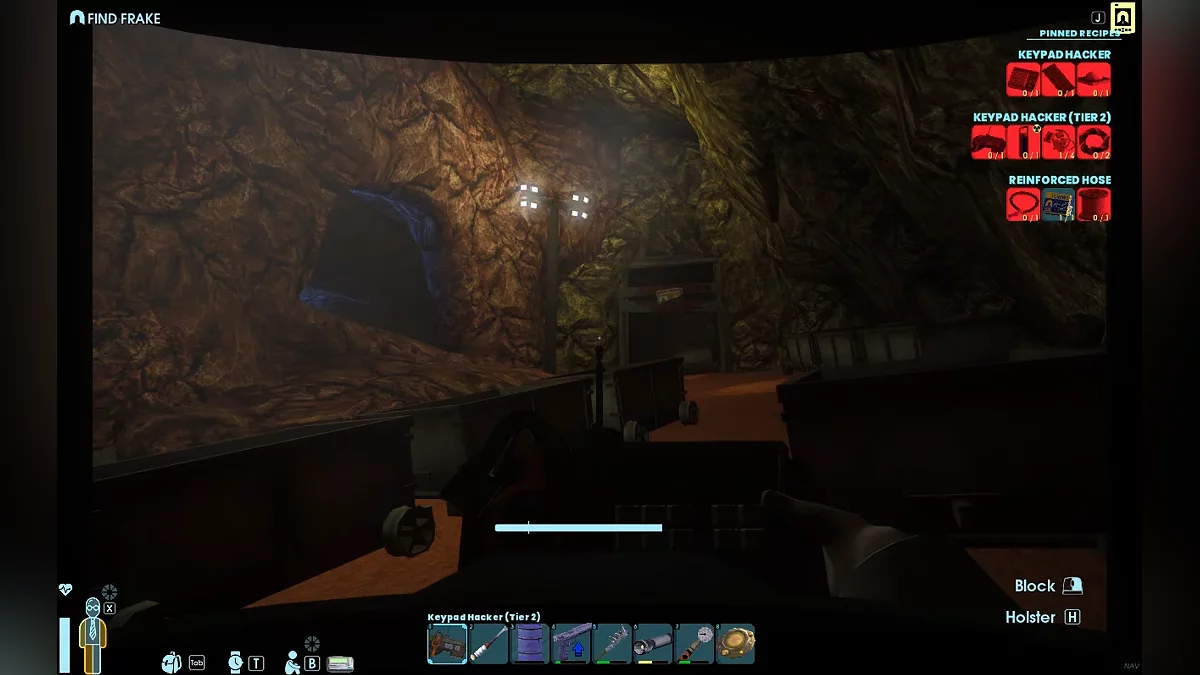 Снаружи вас ждет доктор Джагер. Чтобы попасть к нему, необходимо изготовить энергоблок и вставить его в отсек справа от дверей. Для этого надо предварительно поставить верстак где-нибудь неподалеку.