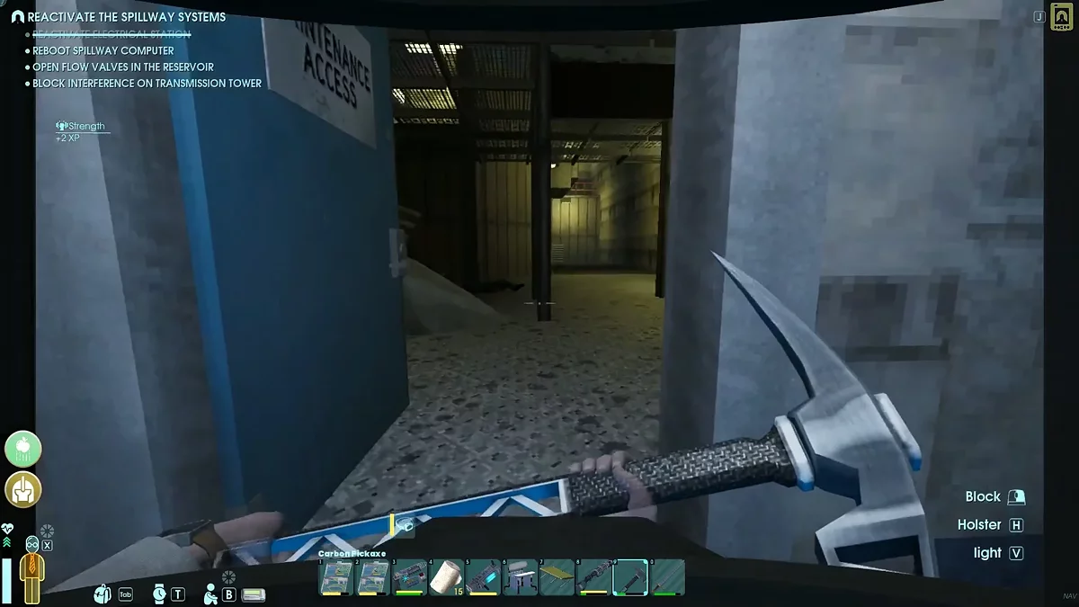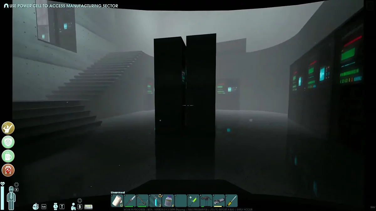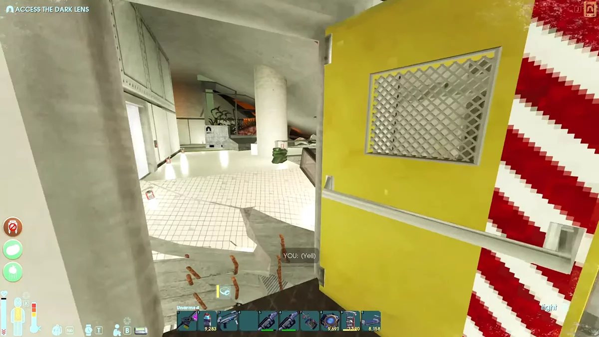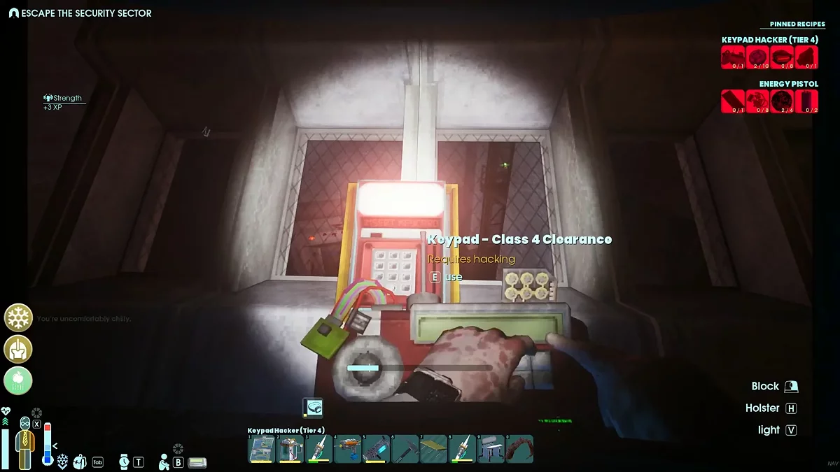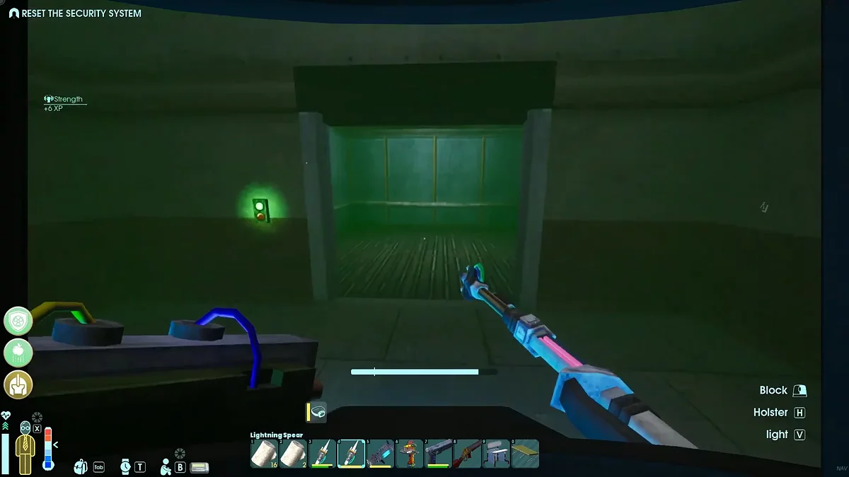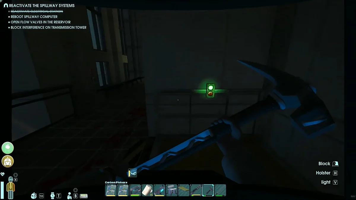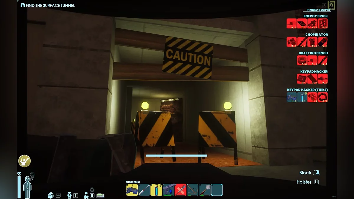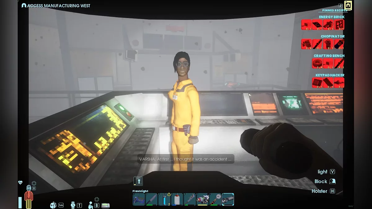 Снаружи вас ждет доктор Джагер. Чтобы попасть к нему, необходимо изготовить энергоблок и вставить его в отсек справа от дверей. Для этого надо предварительно поставить верстак где-нибудь неподалеку.