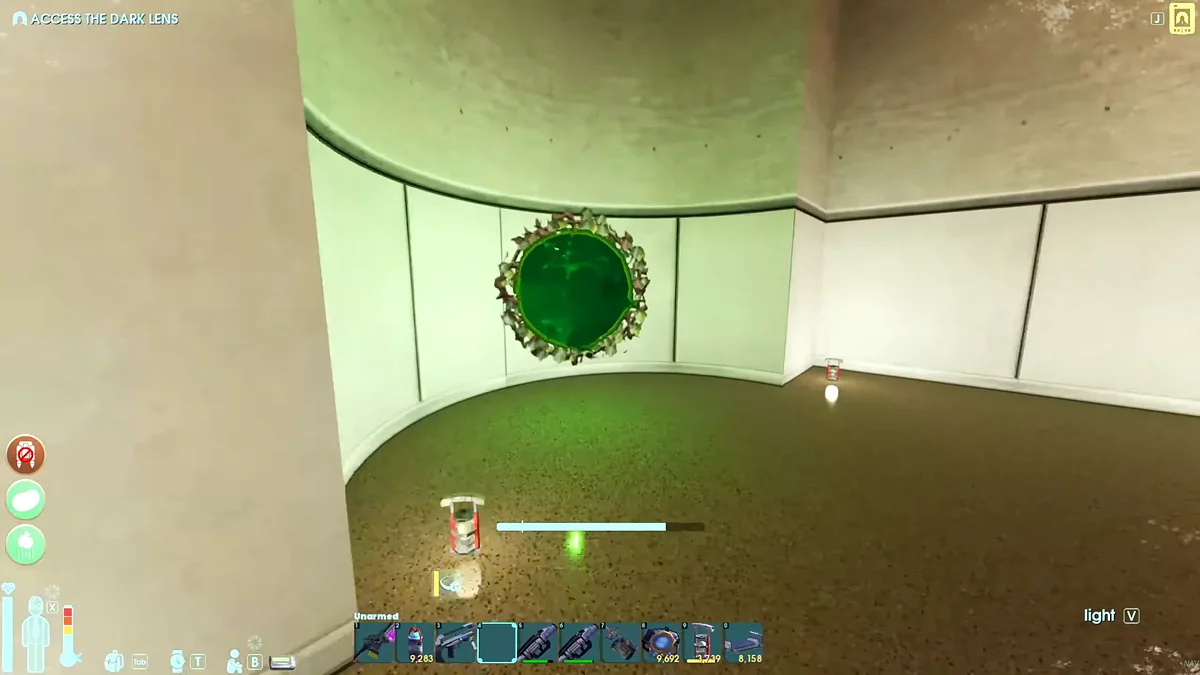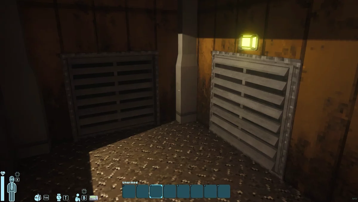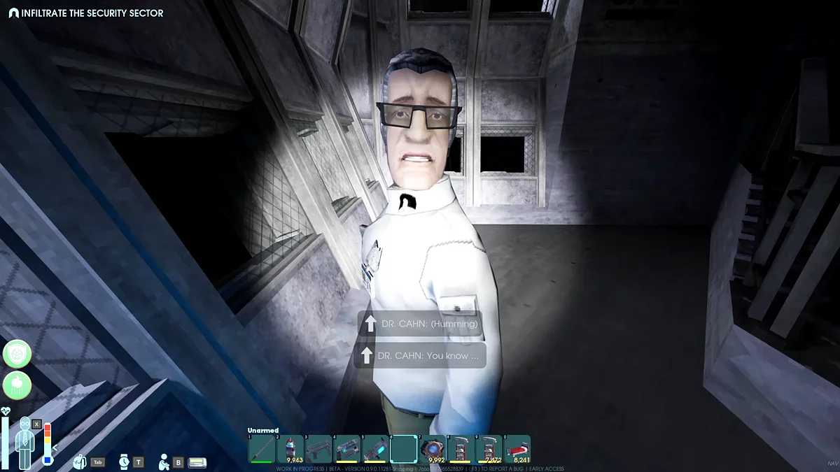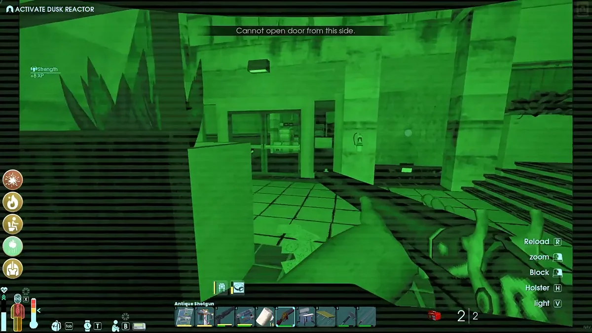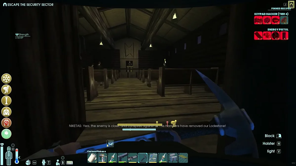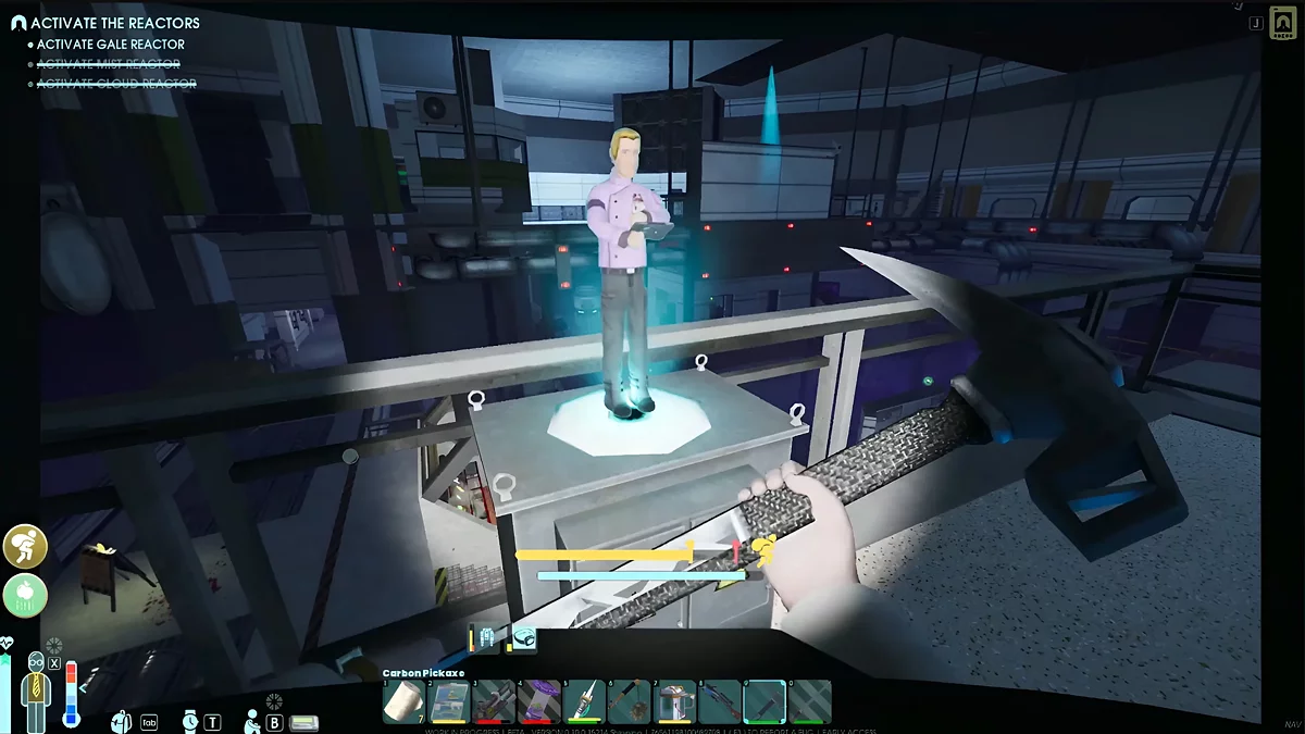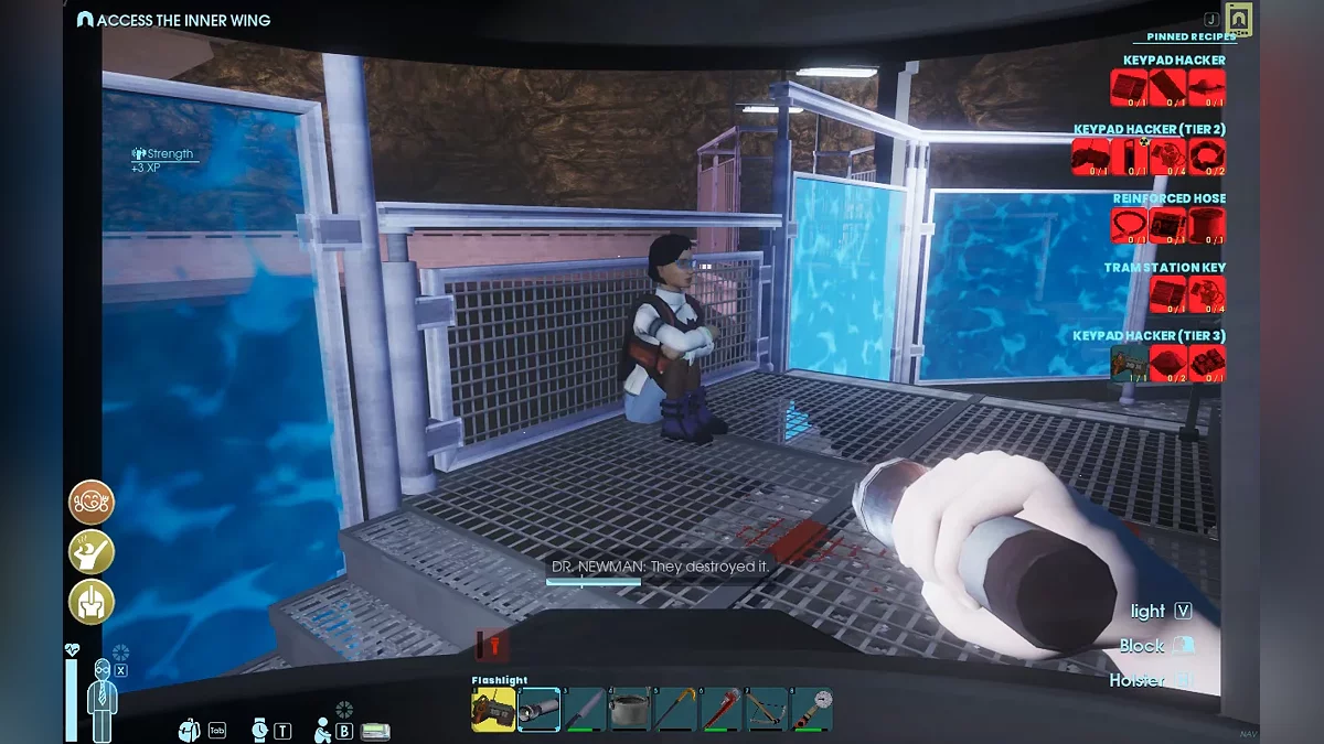 Снаружи вас ждет доктор Джагер. Чтобы попасть к нему, необходимо изготовить энергоблок и вставить его в отсек справа от дверей. Для этого надо предварительно поставить верстак где-нибудь неподалеку.
