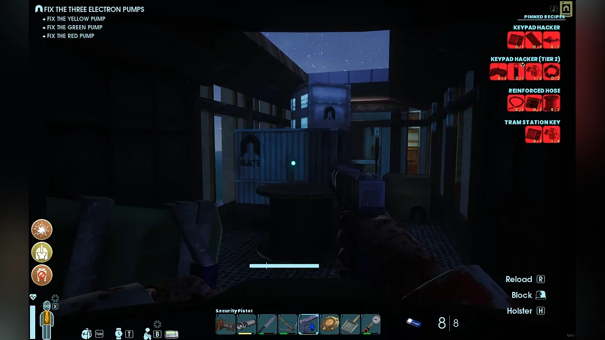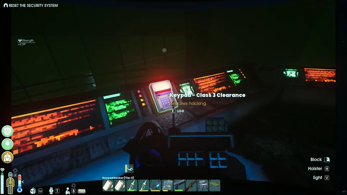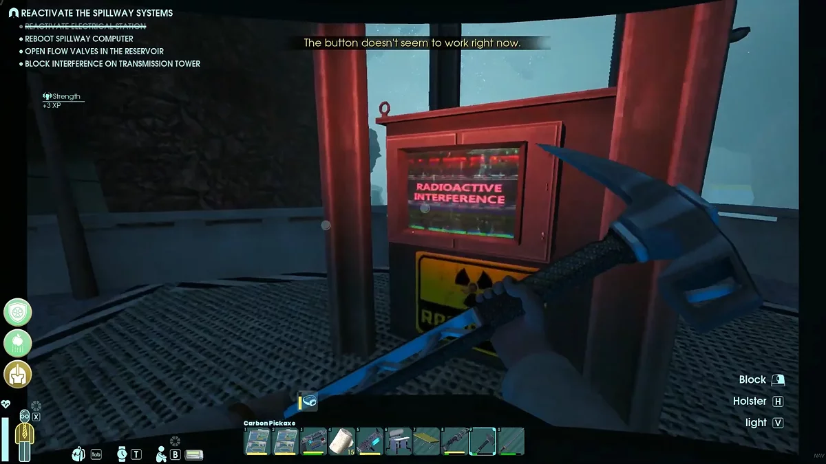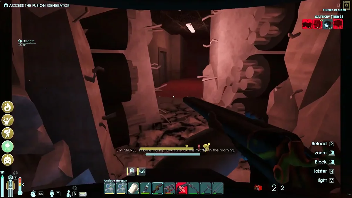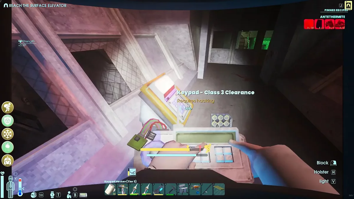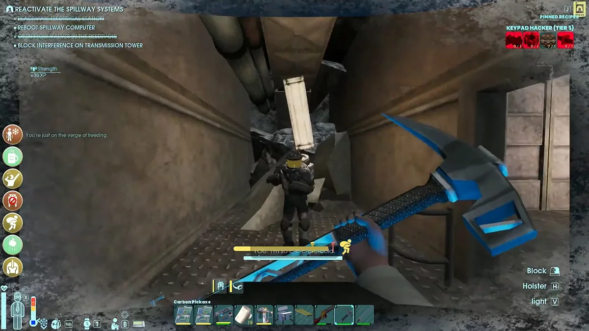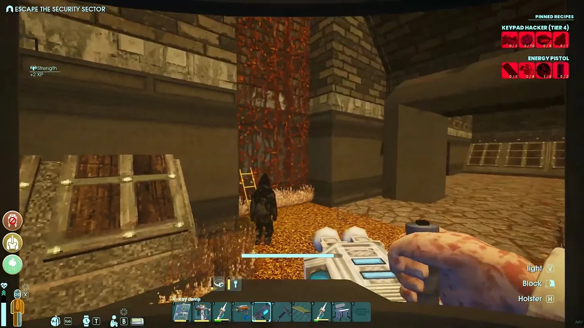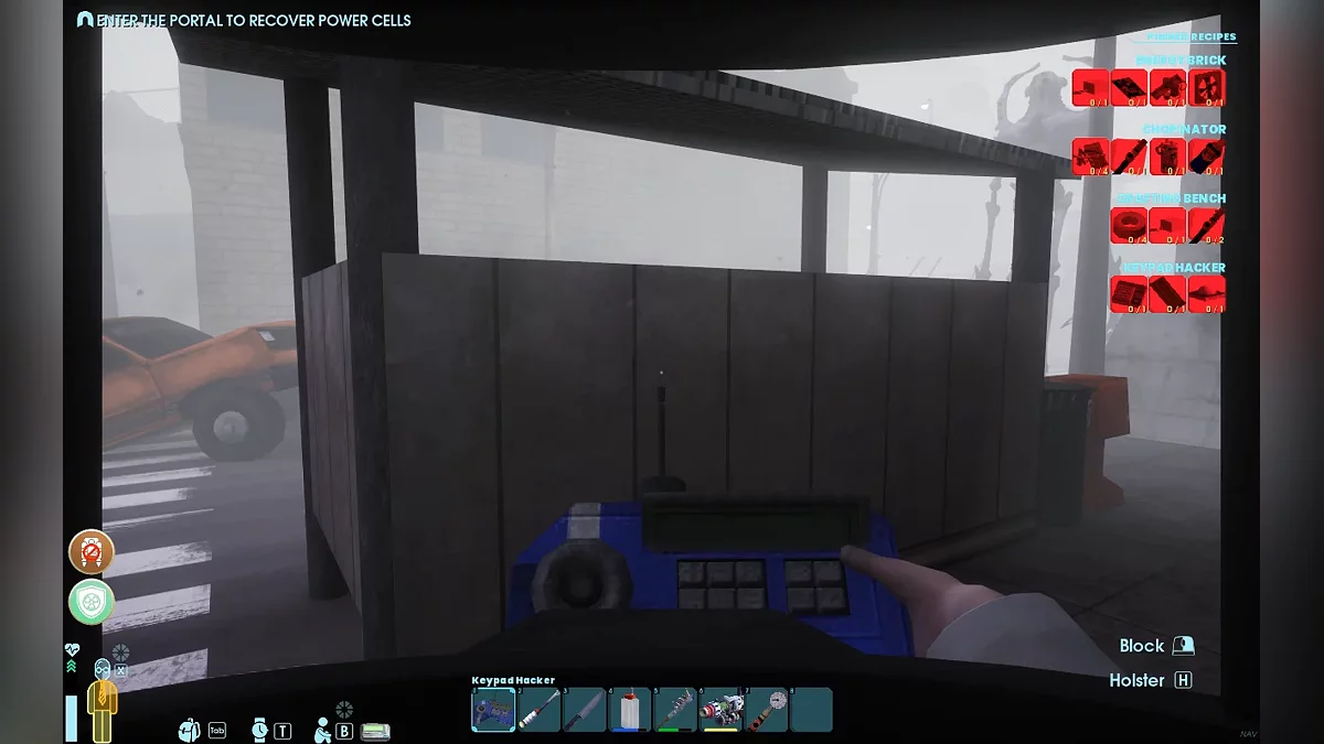Снаружи вас ждет доктор Джагер. Чтобы попасть к нему, необходимо изготовить энергоблок и вставить его в отсек справа от дверей. Для этого надо предварительно поставить верстак где-нибудь неподалеку.