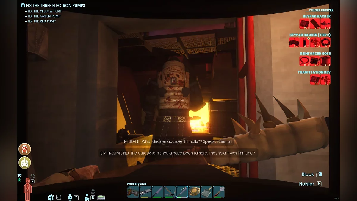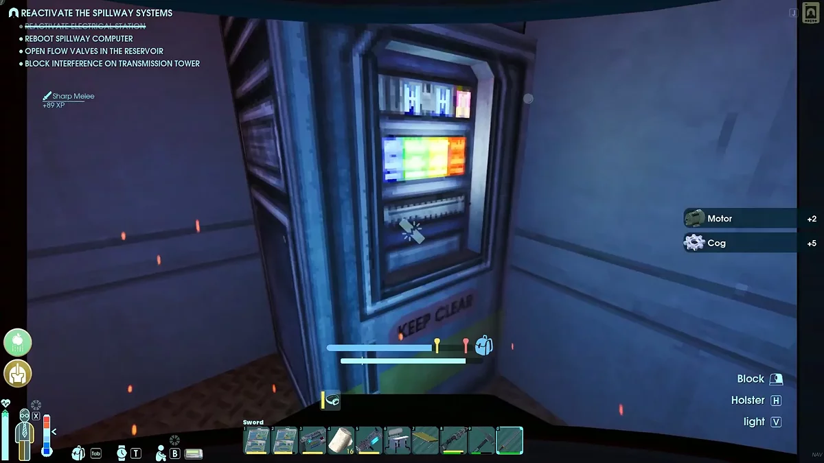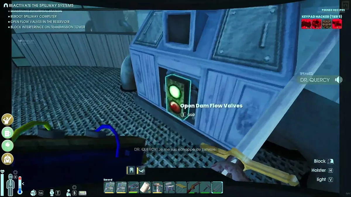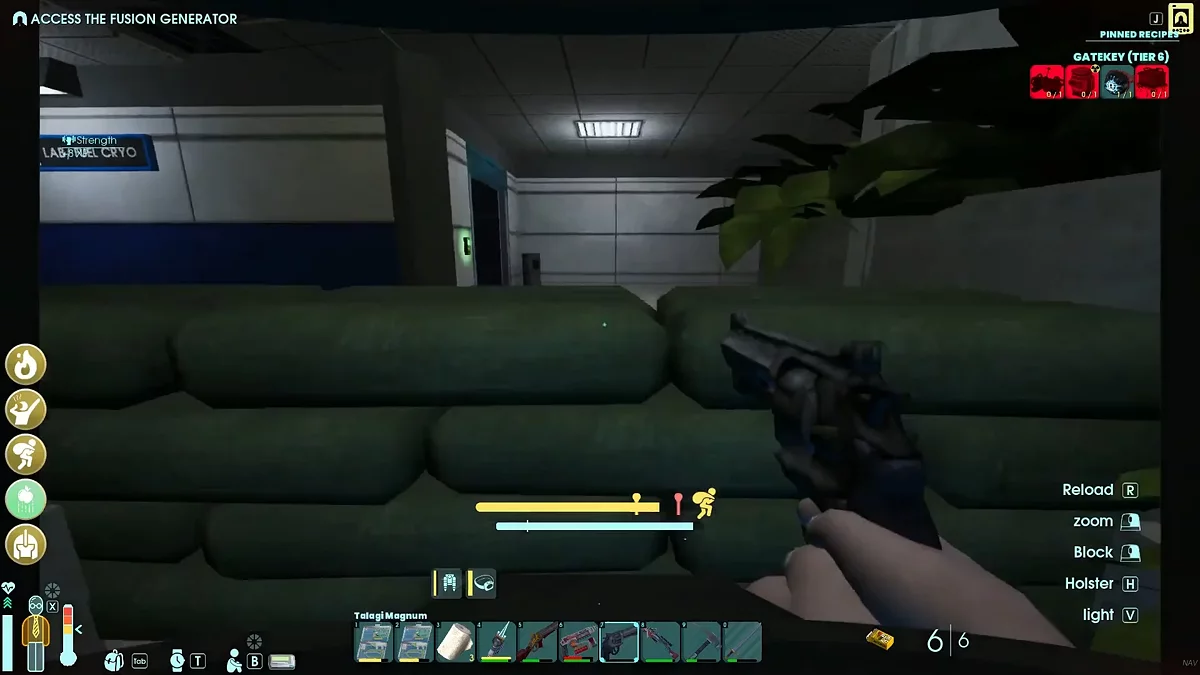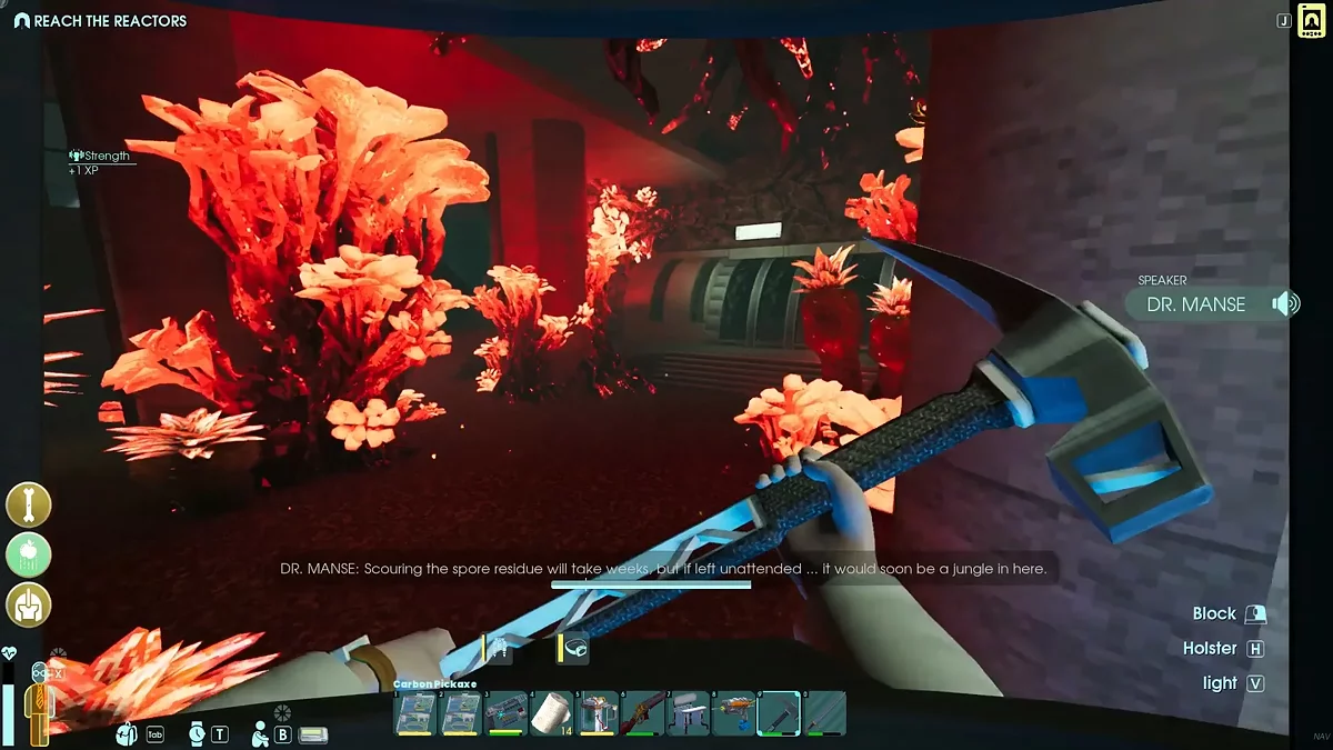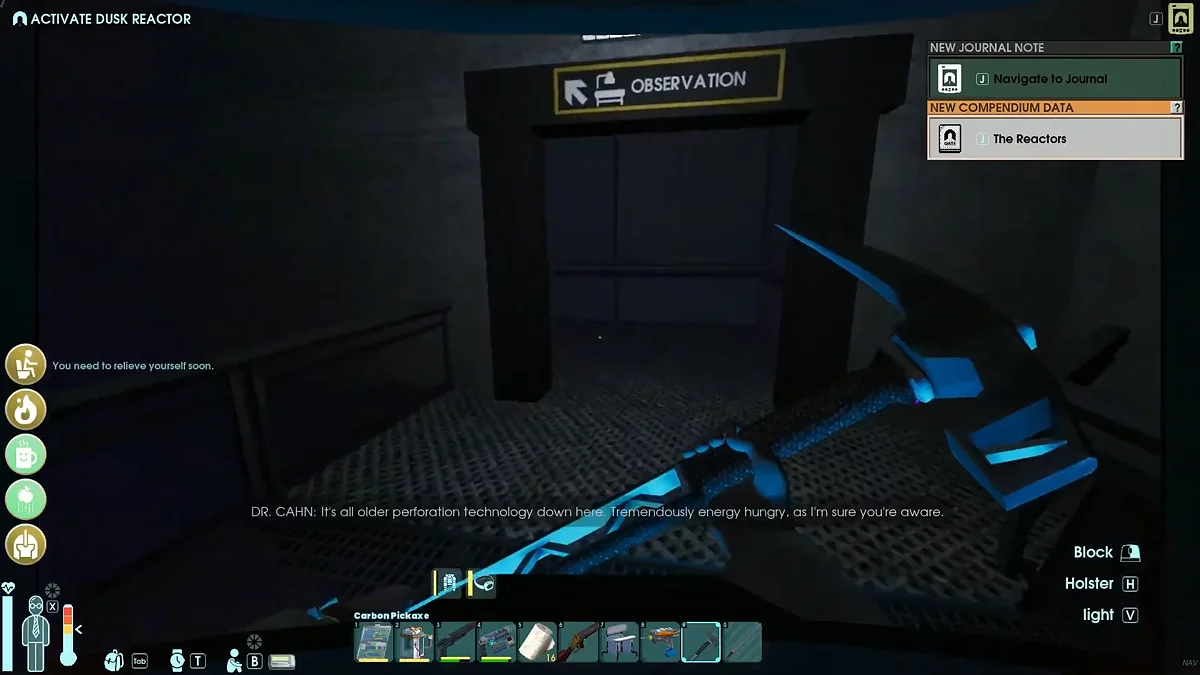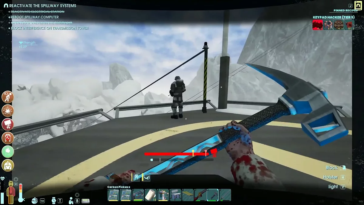 Снаружи вас ждет доктор Джагер. Чтобы попасть к нему, необходимо изготовить энергоблок и вставить его в отсек справа от дверей. Для этого надо предварительно поставить верстак где-нибудь неподалеку.