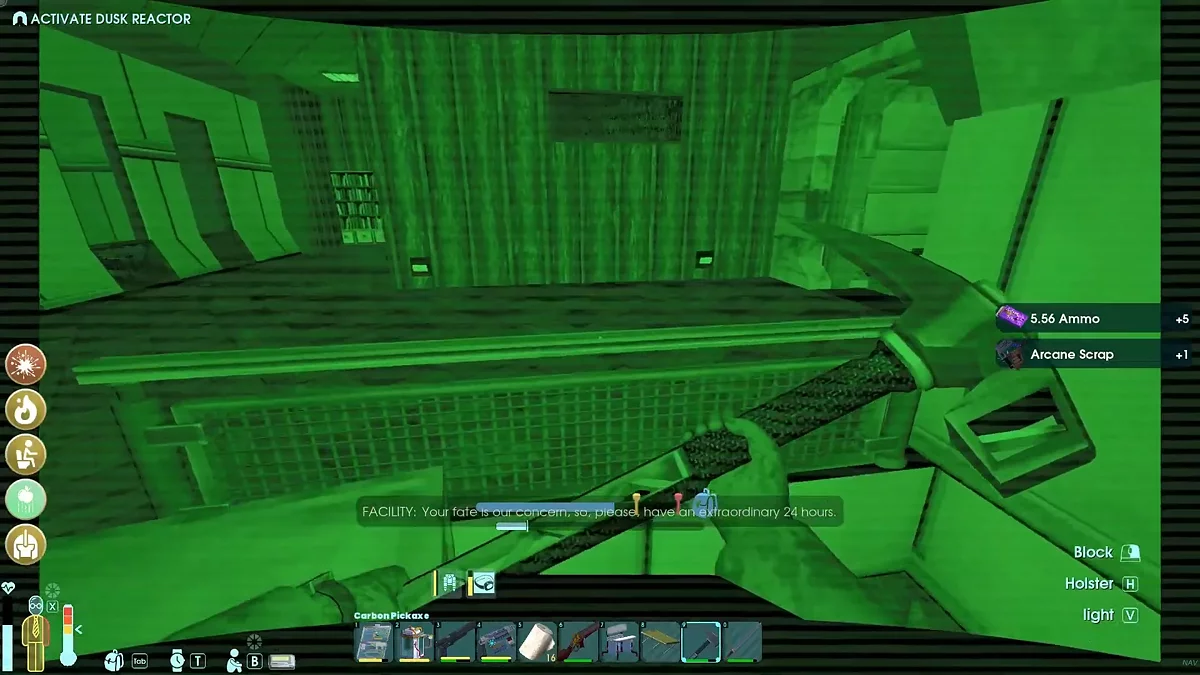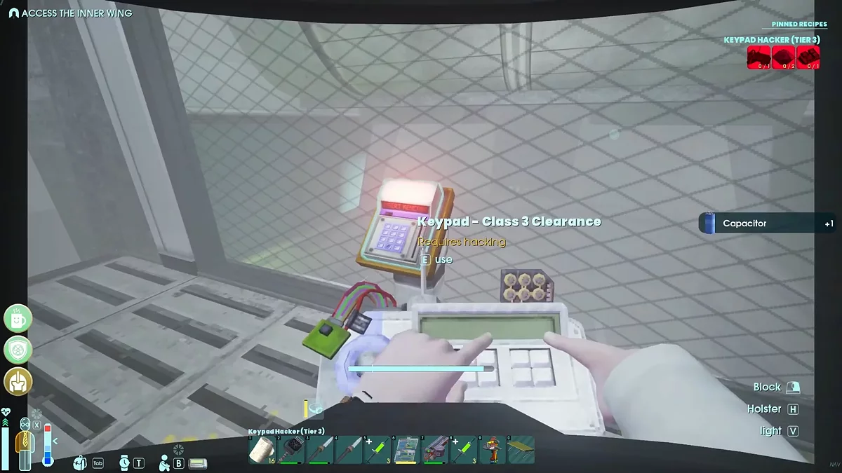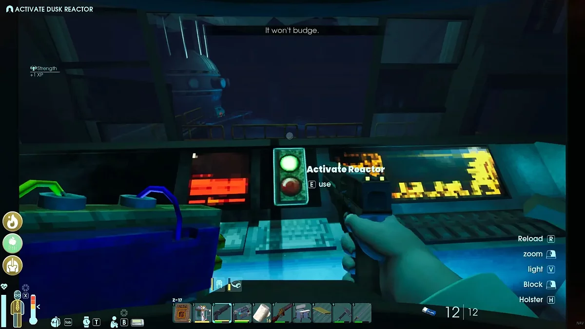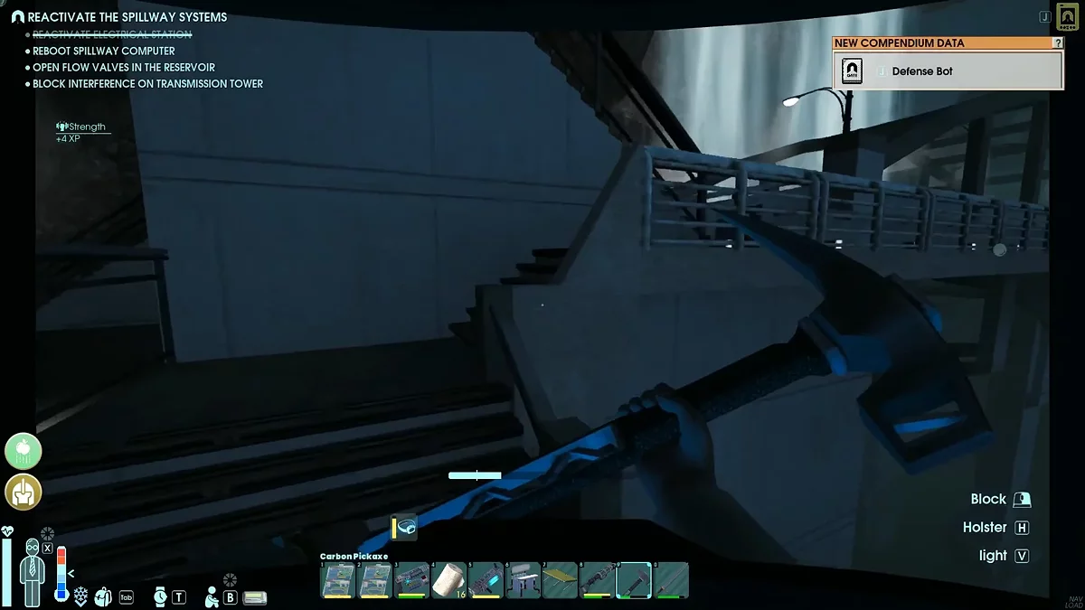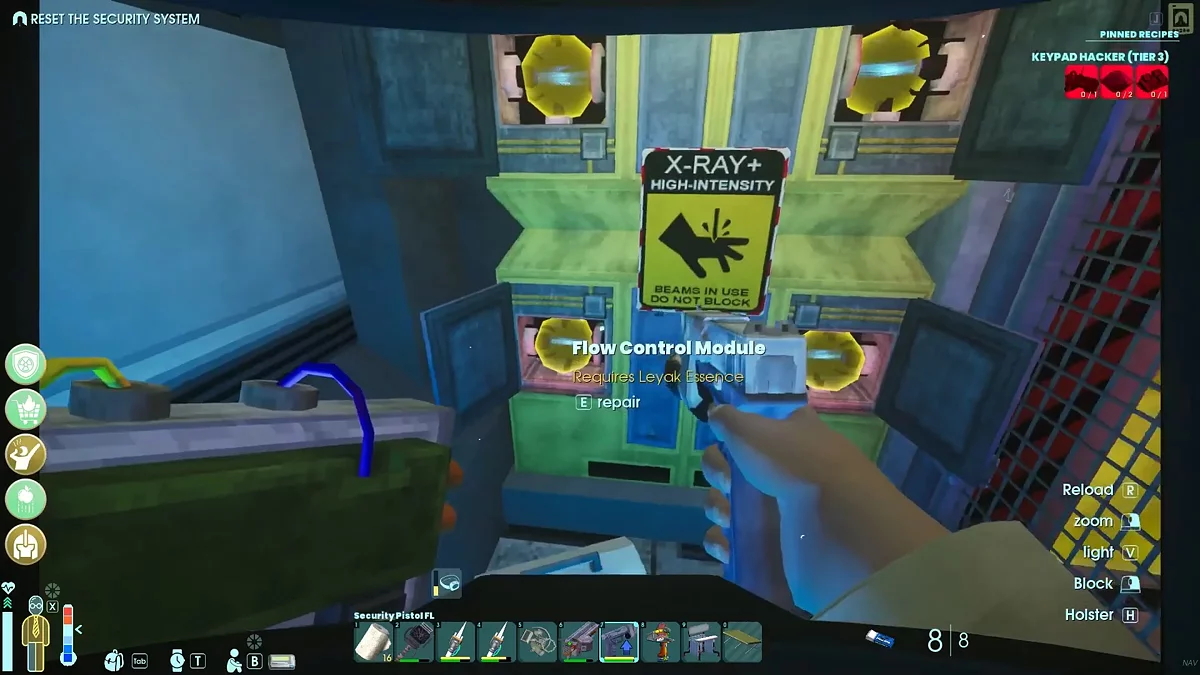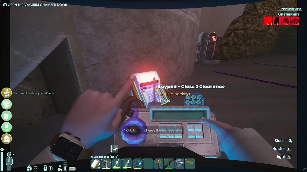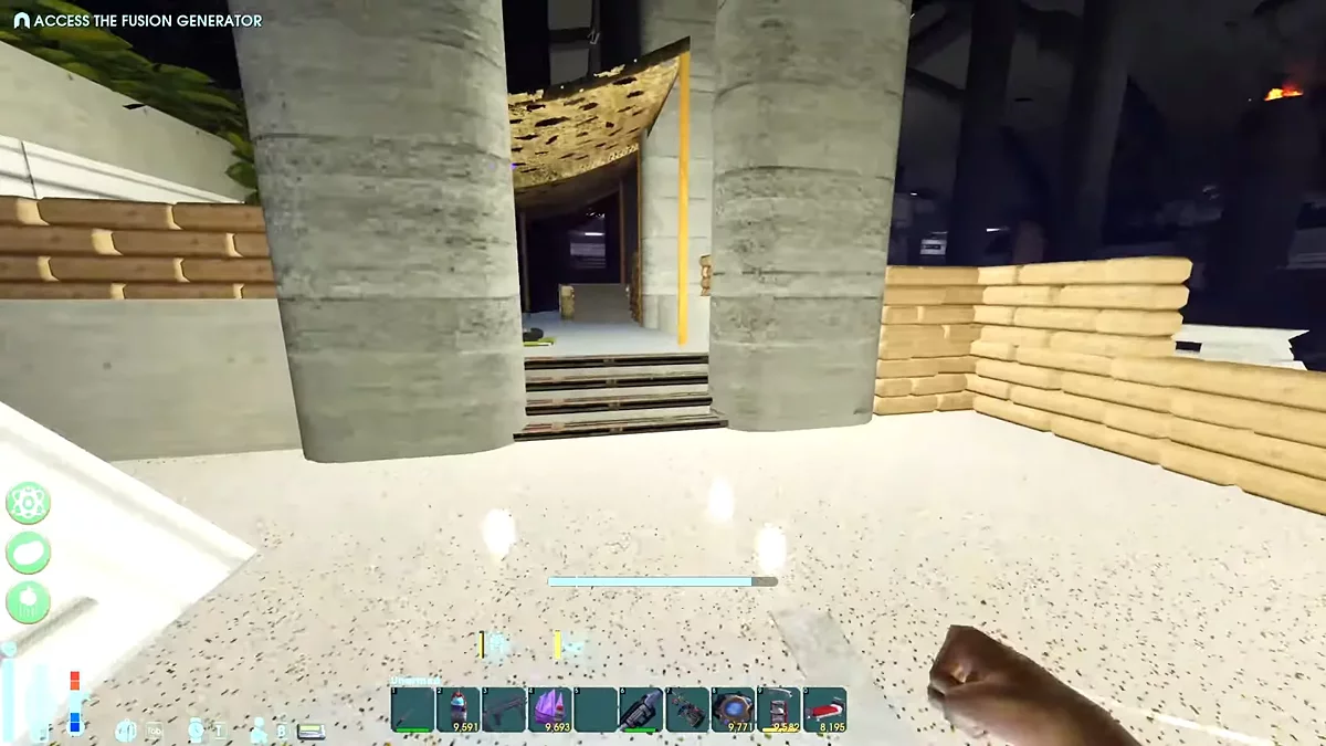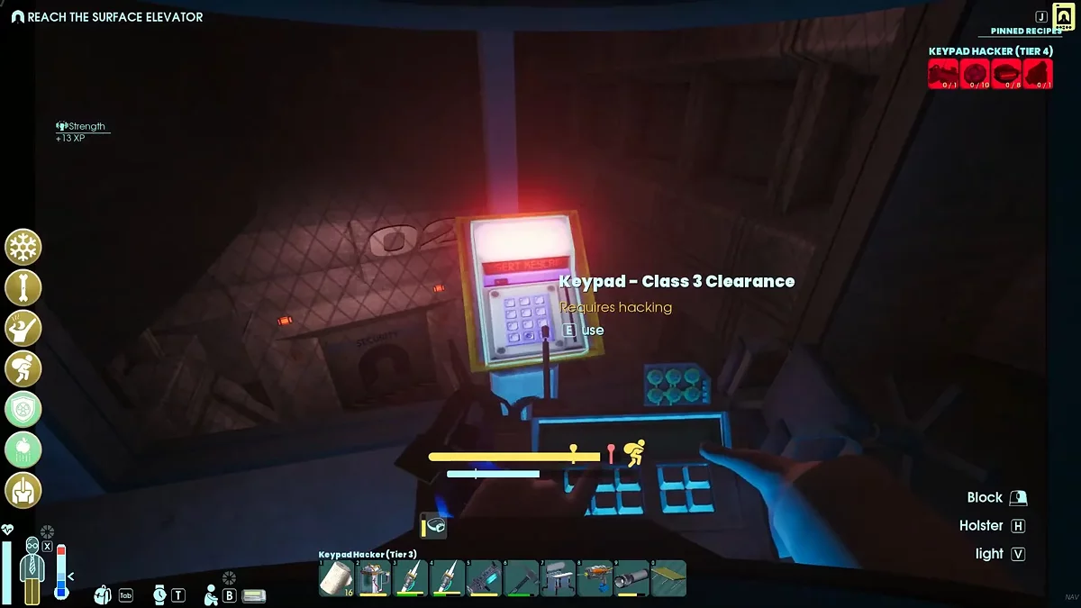 Снаружи вас ждет доктор Джагер. Чтобы попасть к нему, необходимо изготовить энергоблок и вставить его в отсек справа от дверей. Для этого надо предварительно поставить верстак где-нибудь неподалеку.