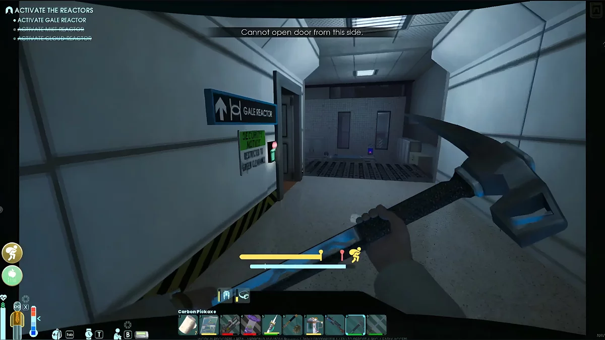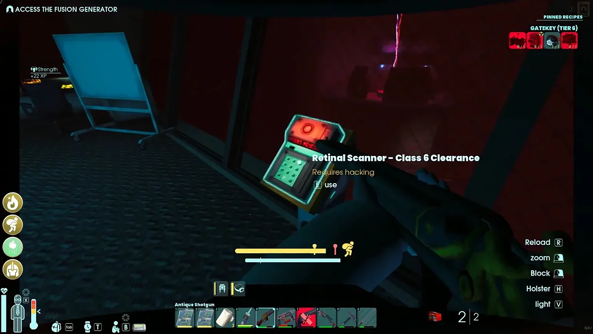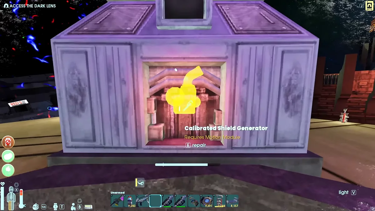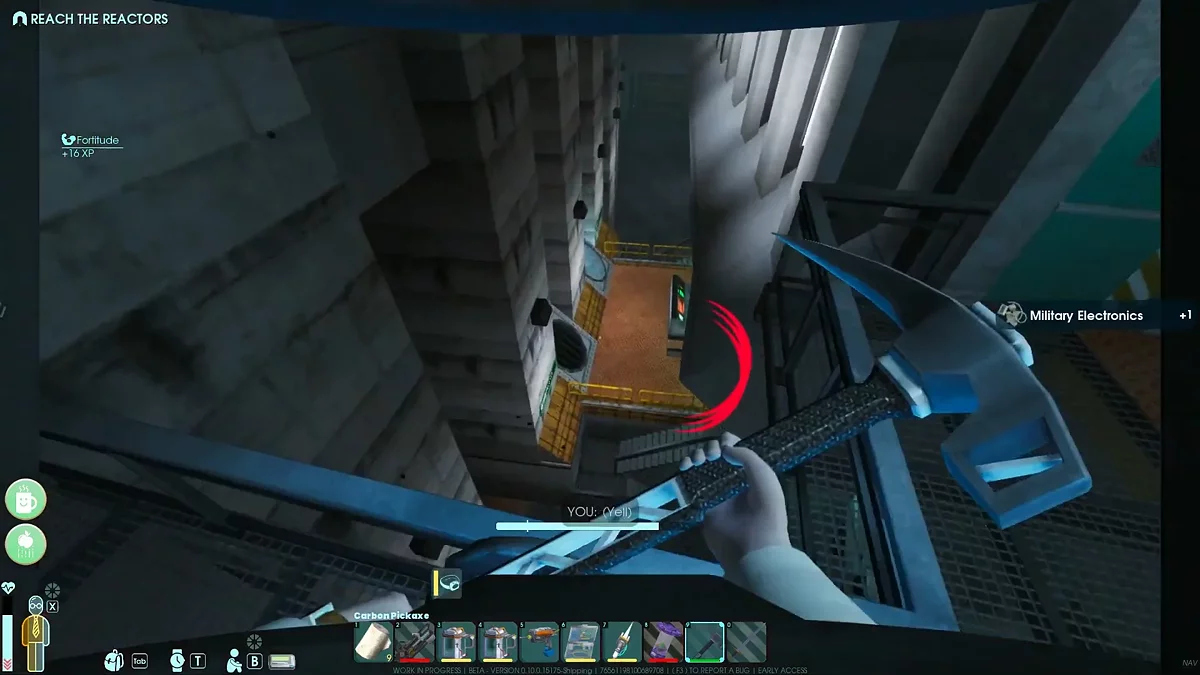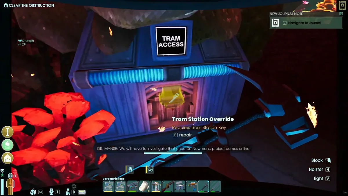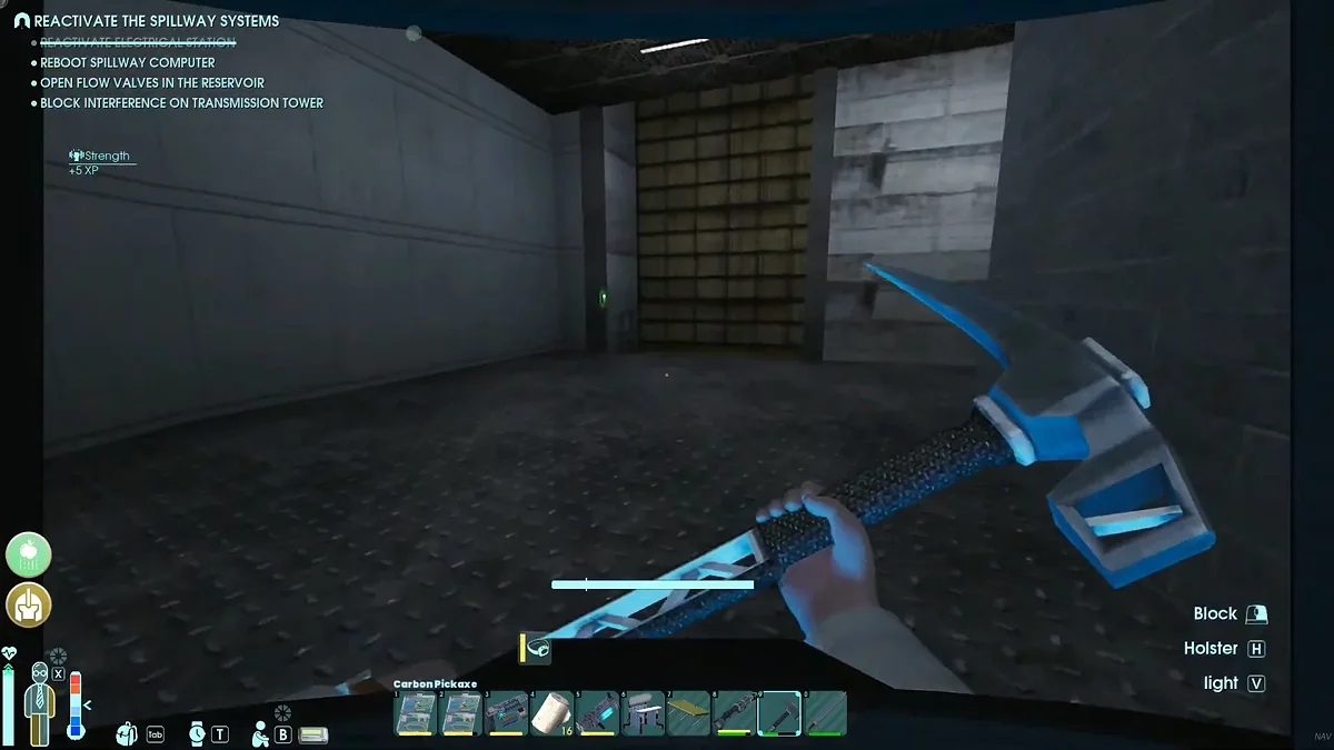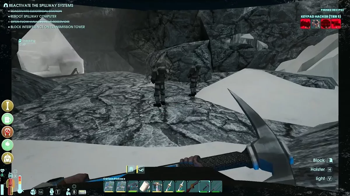 Снаружи вас ждет доктор Джагер. Чтобы попасть к нему, необходимо изготовить энергоблок и вставить его в отсек справа от дверей. Для этого надо предварительно поставить верстак где-нибудь неподалеку.