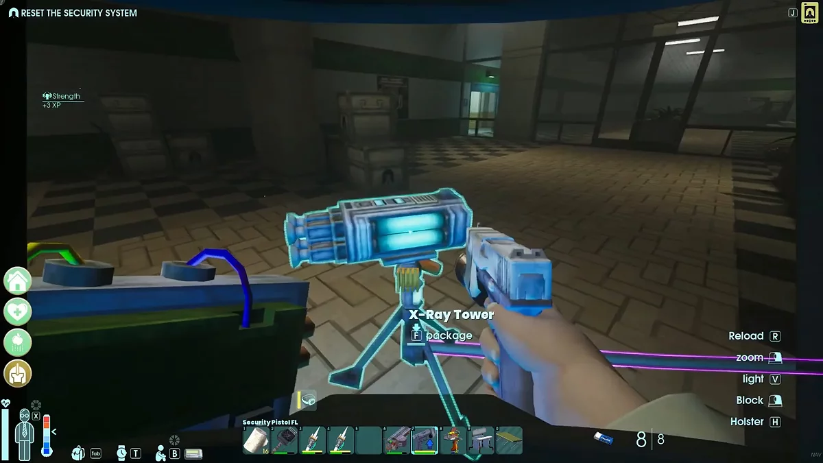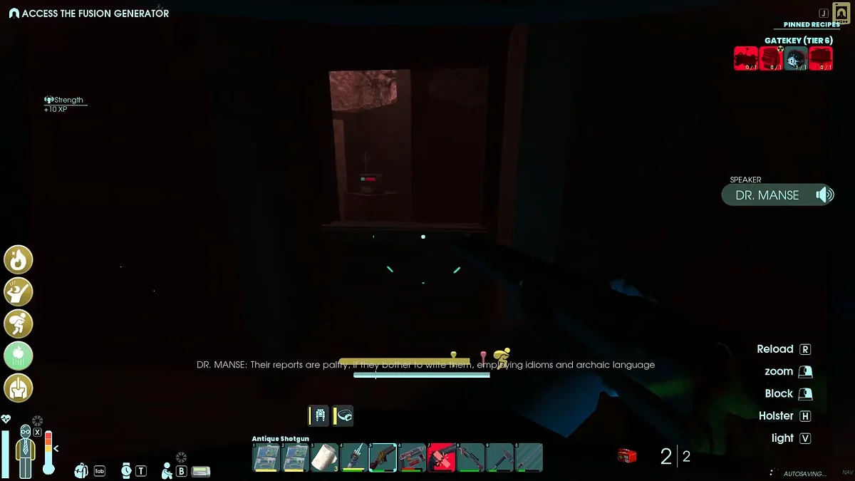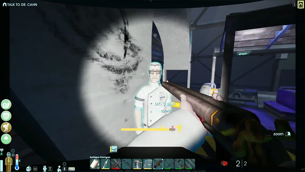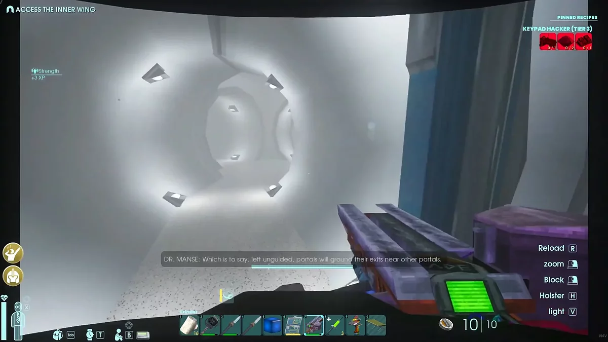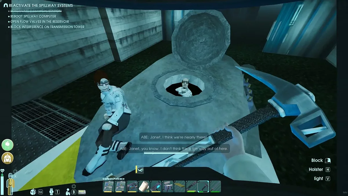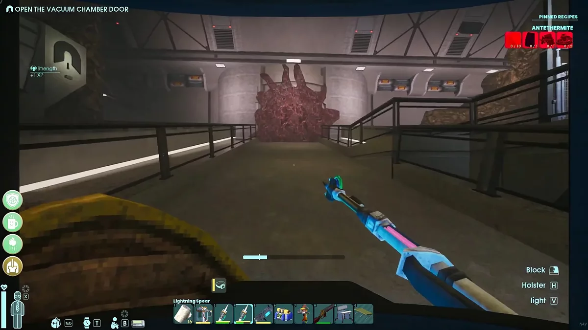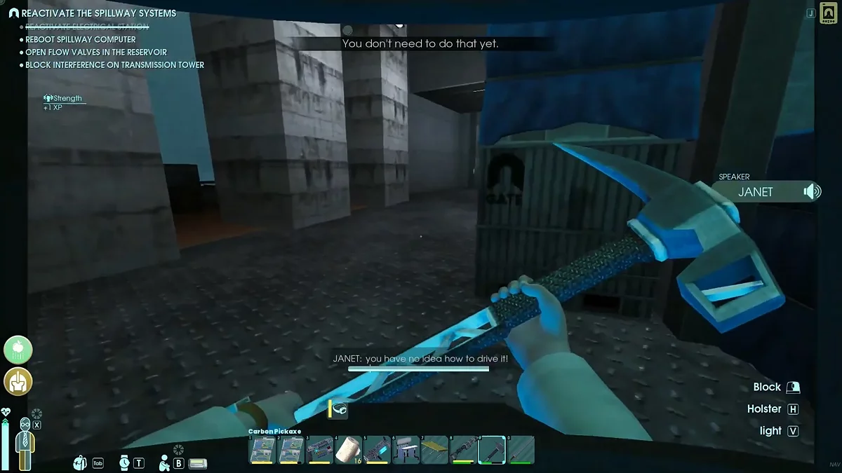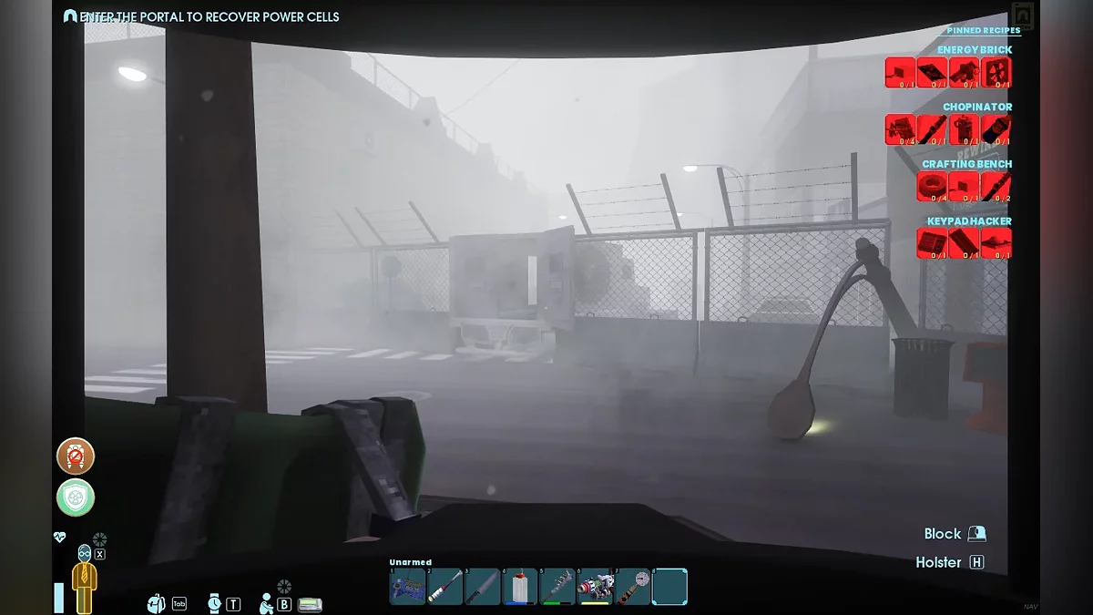 Снаружи вас ждет доктор Джагер. Чтобы попасть к нему, необходимо изготовить энергоблок и вставить его в отсек справа от дверей. Для этого надо предварительно поставить верстак где-нибудь неподалеку.