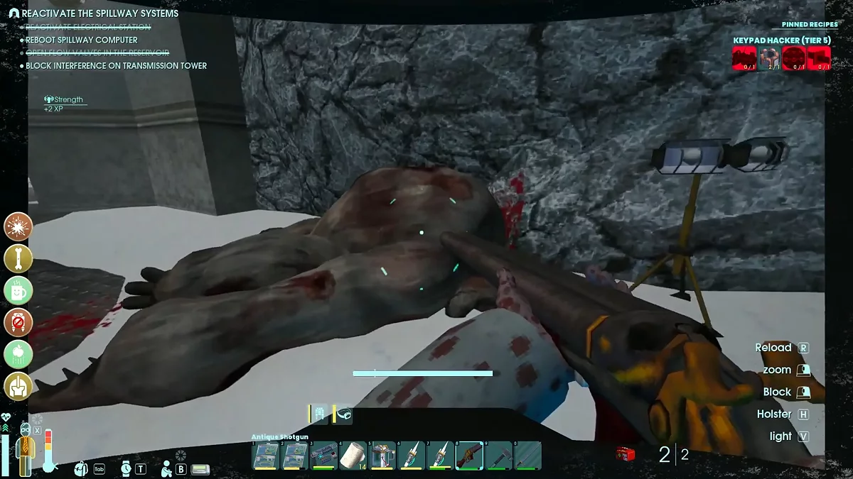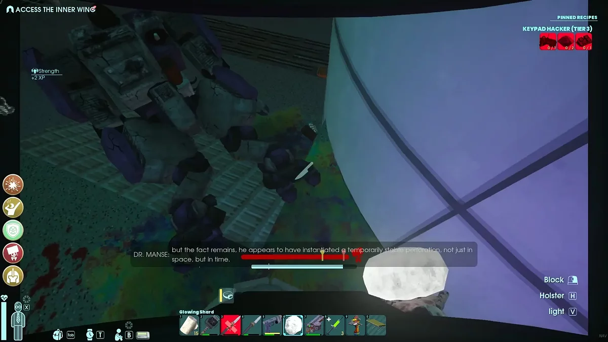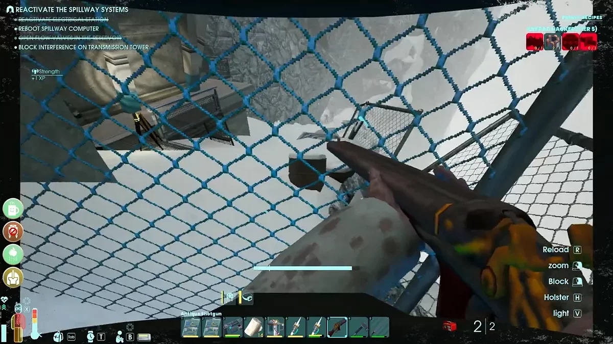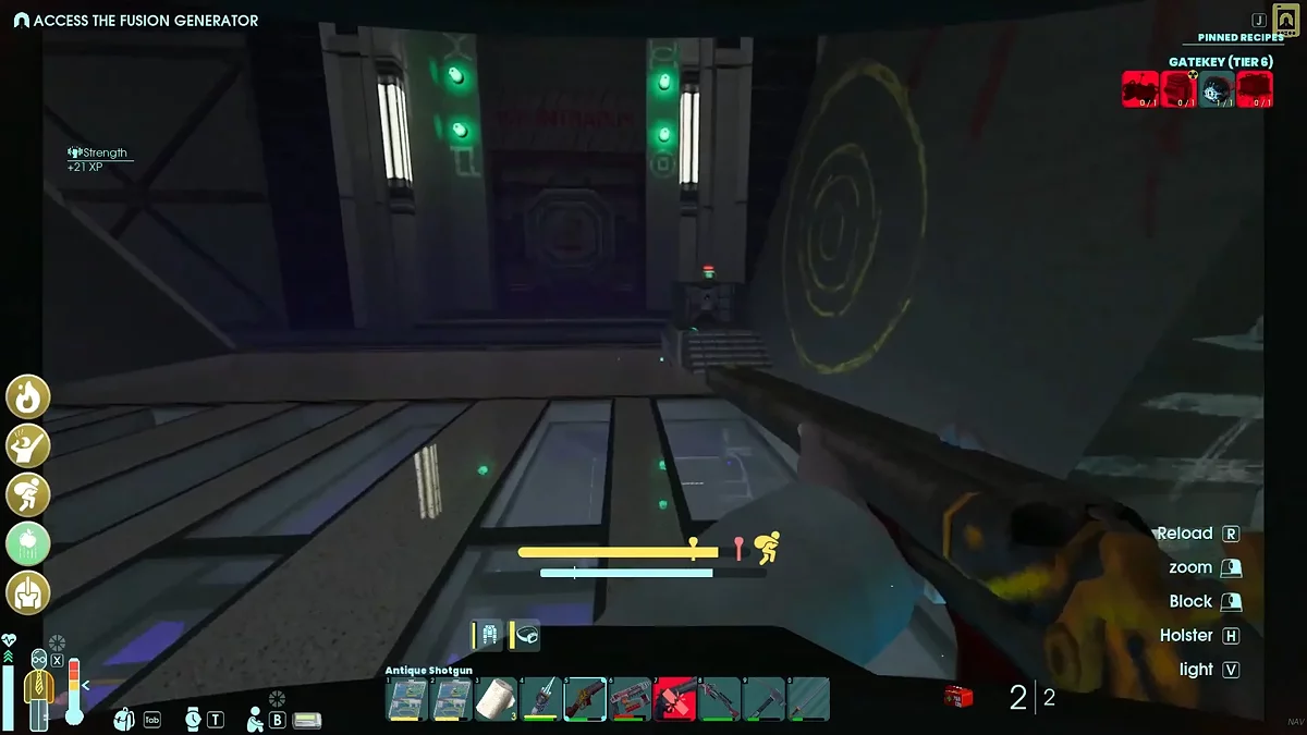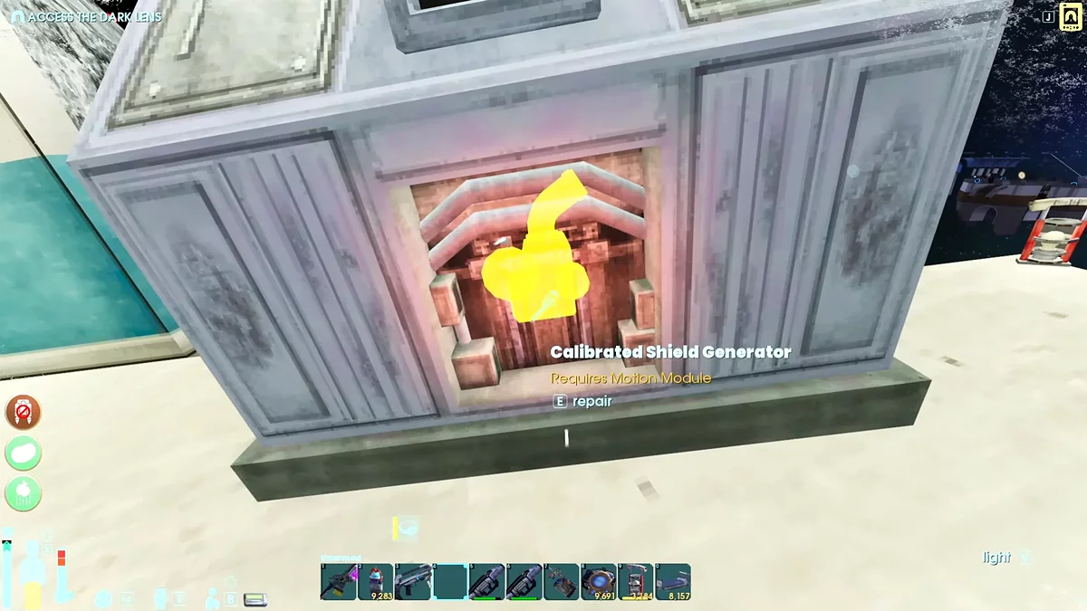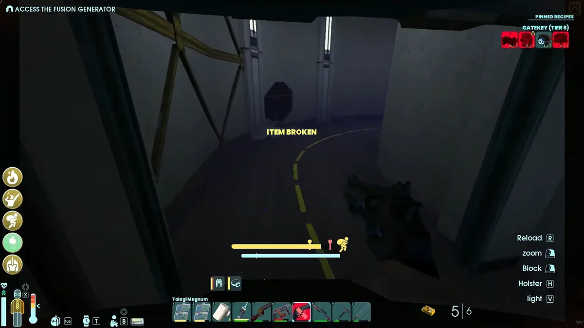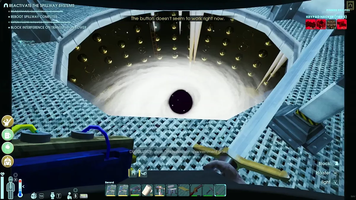 Снаружи вас ждет доктор Джагер. Чтобы попасть к нему, необходимо изготовить энергоблок и вставить его в отсек справа от дверей. Для этого надо предварительно поставить верстак где-нибудь неподалеку.