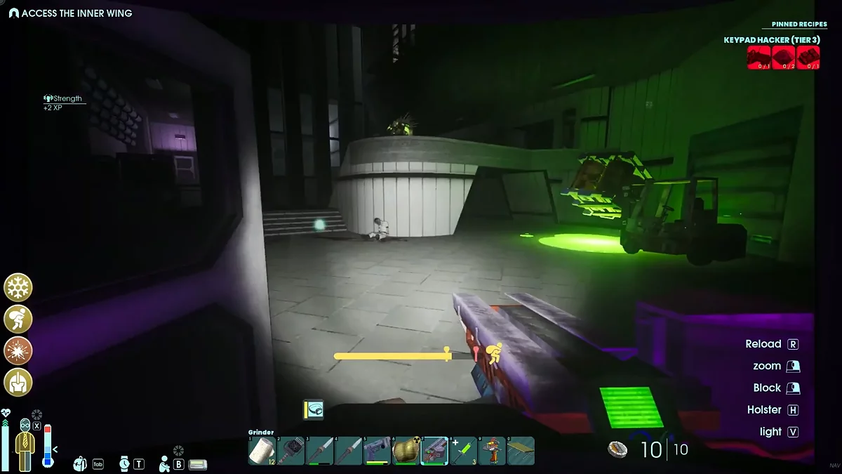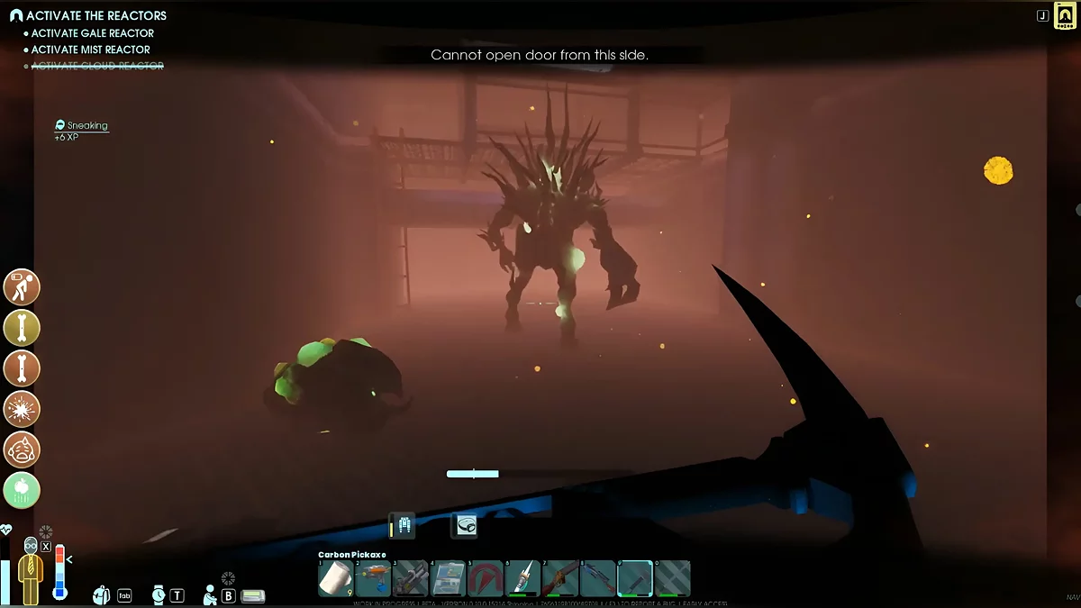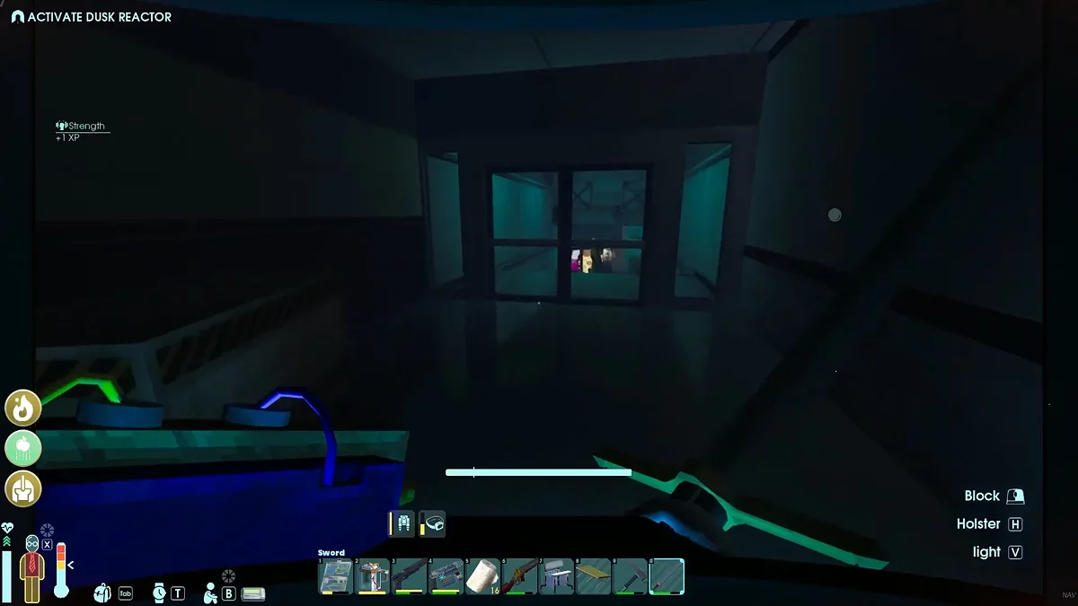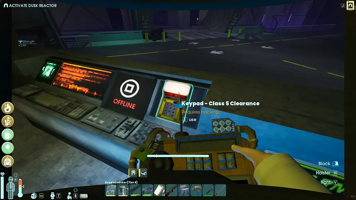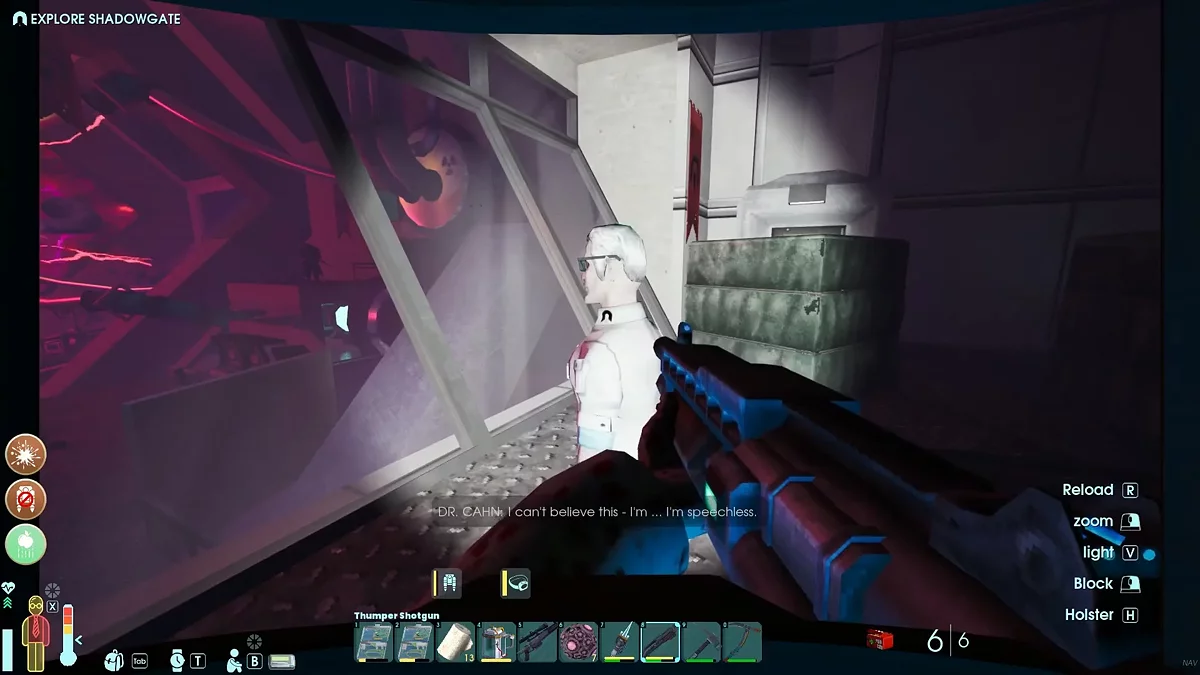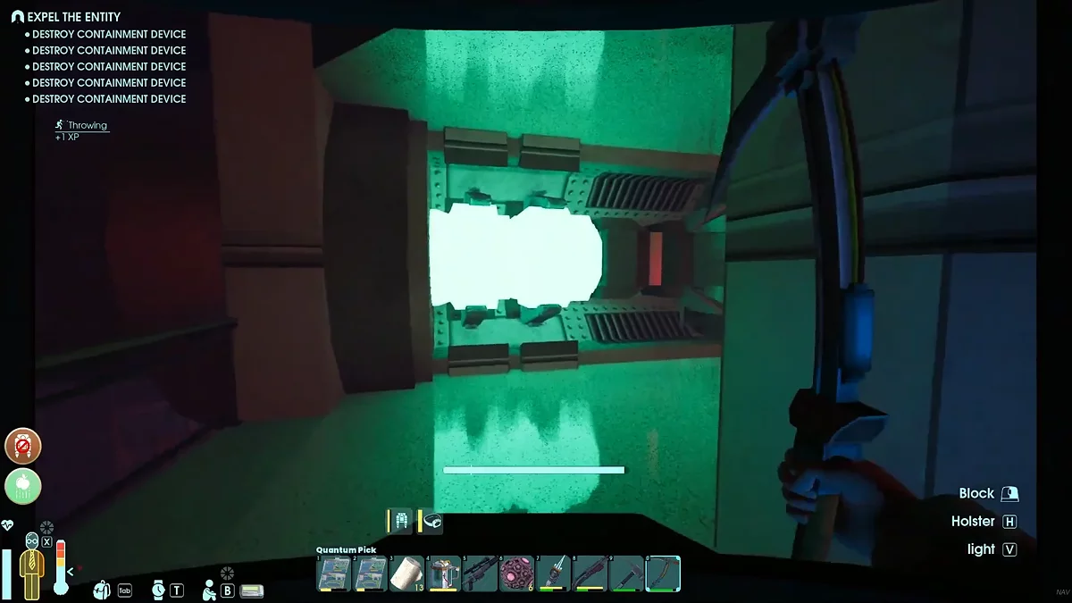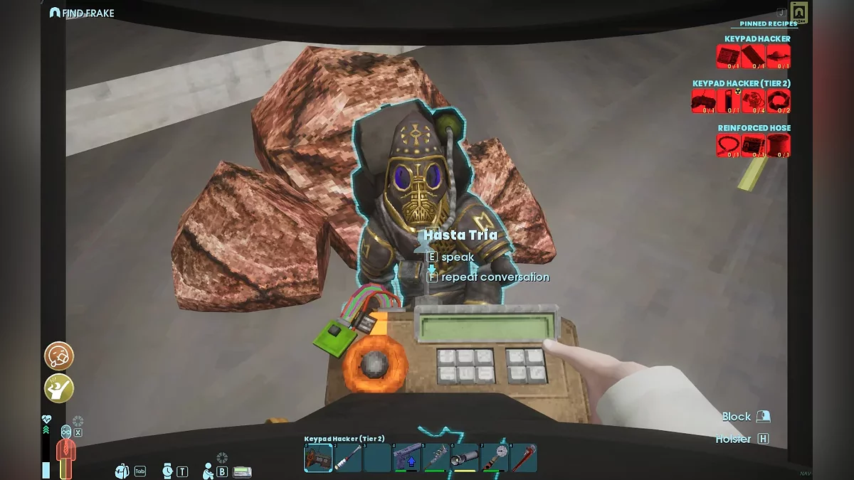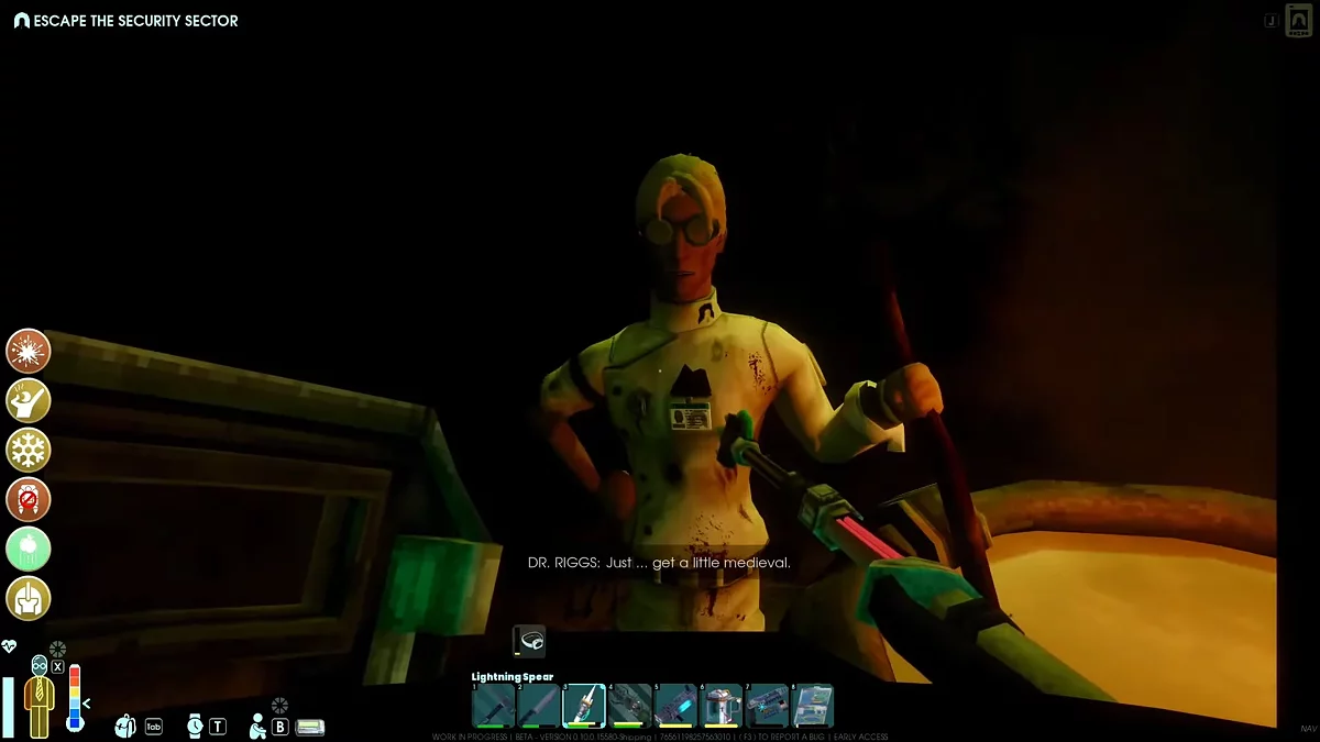 Снаружи вас ждет доктор Джагер. Чтобы попасть к нему, необходимо изготовить энергоблок и вставить его в отсек справа от дверей. Для этого надо предварительно поставить верстак где-нибудь неподалеку.