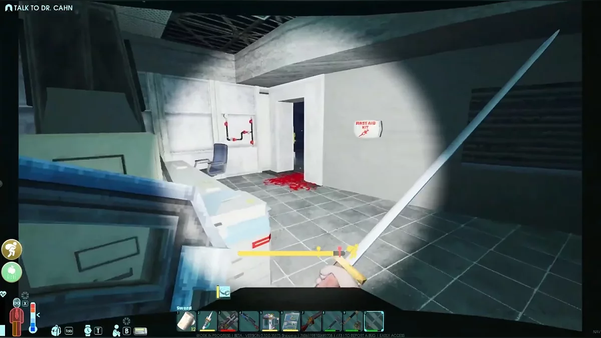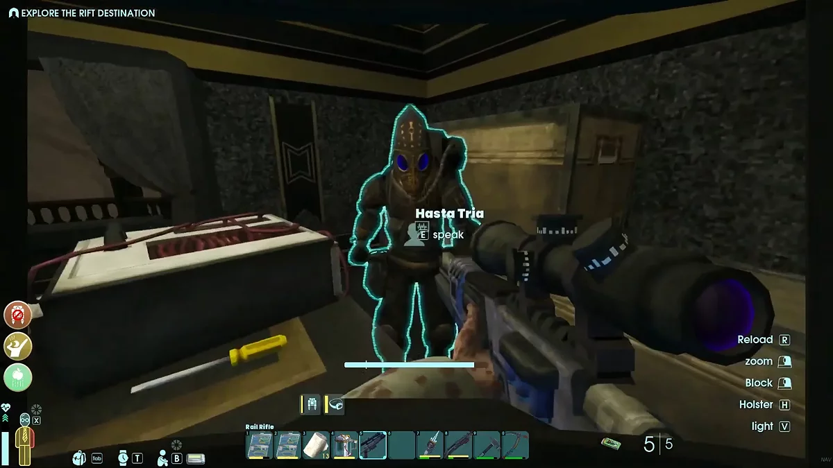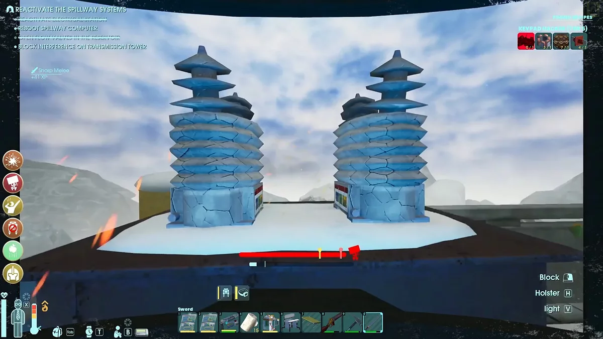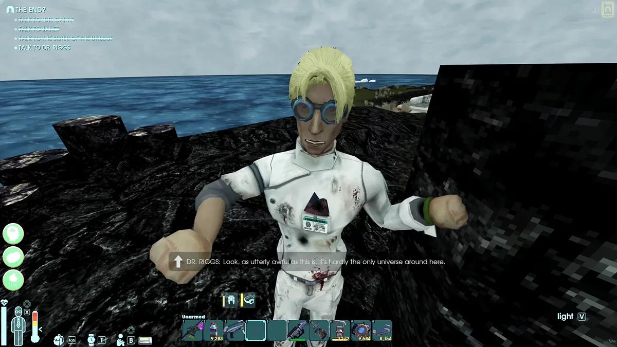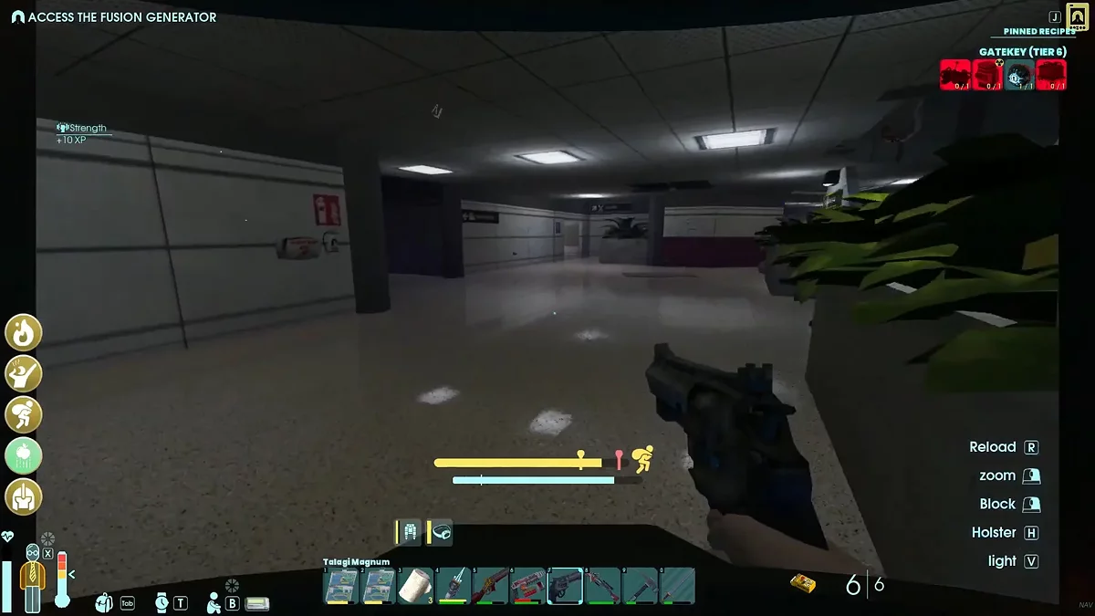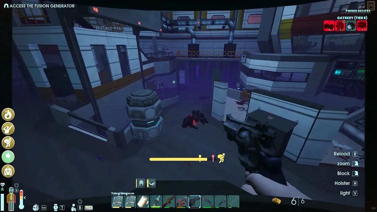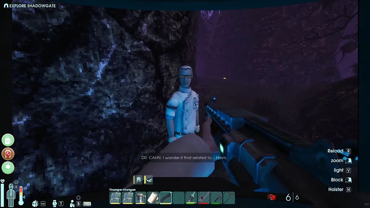 Снаружи вас ждет доктор Джагер. Чтобы попасть к нему, необходимо изготовить энергоблок и вставить его в отсек справа от дверей. Для этого надо предварительно поставить верстак где-нибудь неподалеку.
