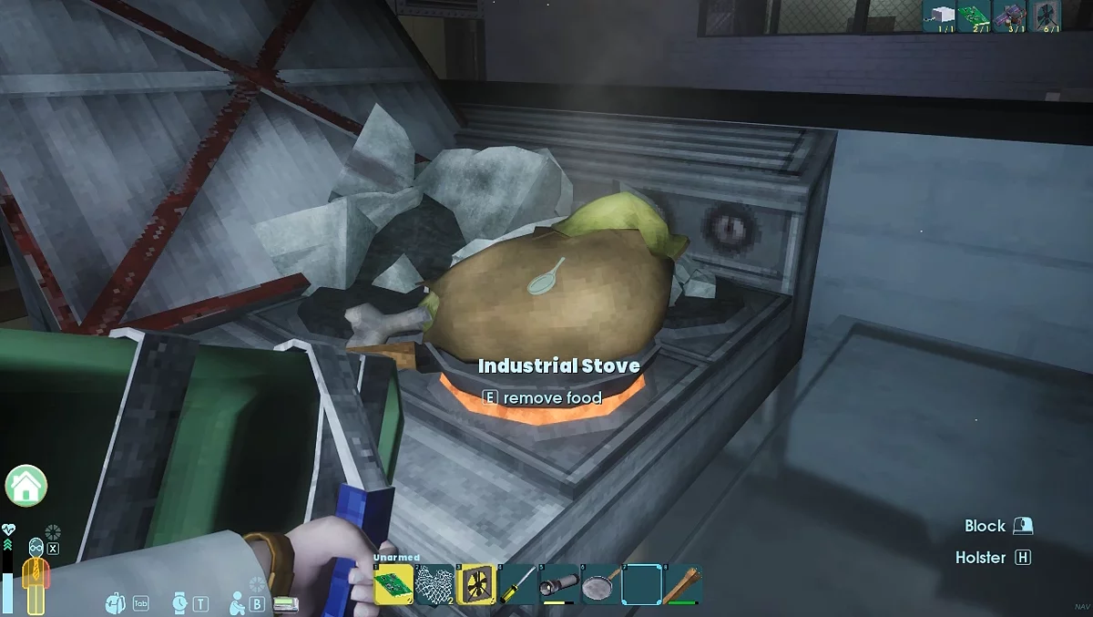 В этот момент лучше всего начать заниматься готовкой. Пока вы можете воспользоваться плитой на кухне и поджарить один из кусочков убитого зверя. Главное, следите, чтобы он не сгорел.