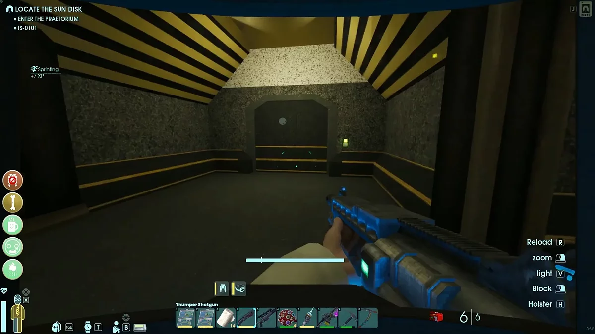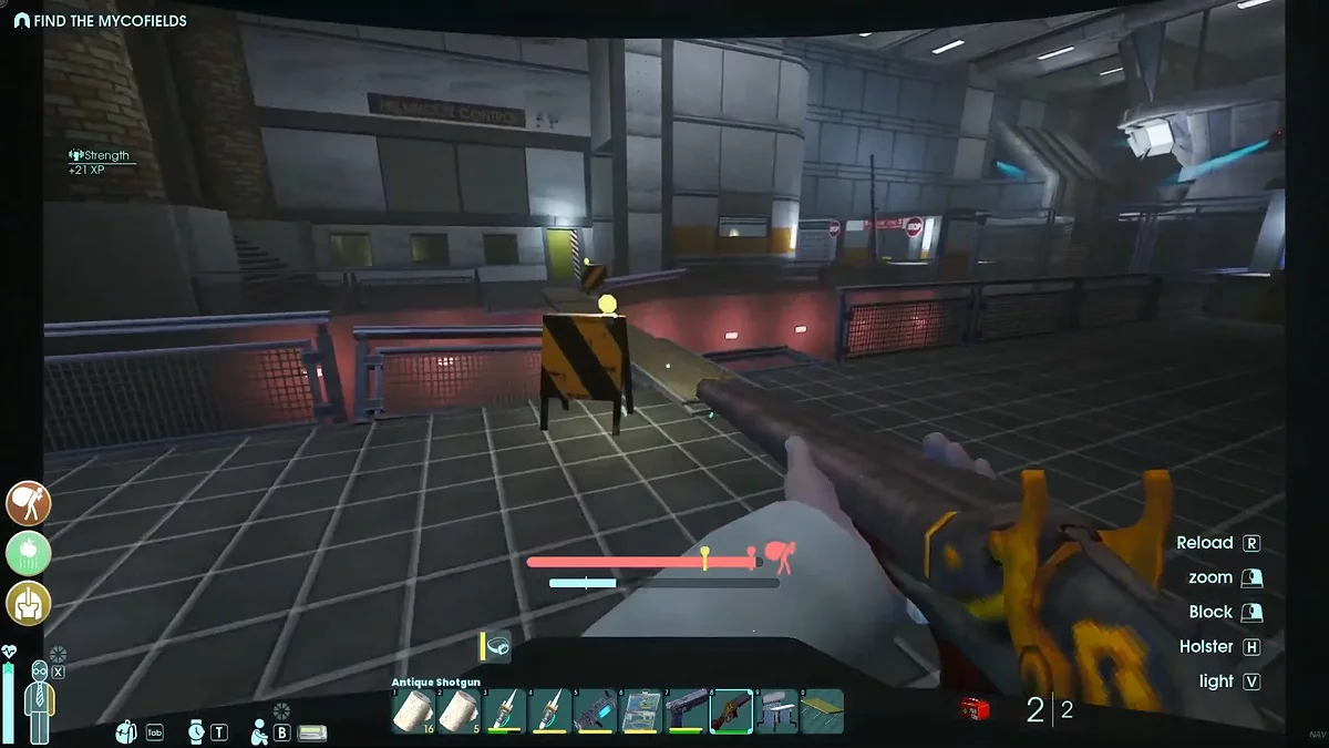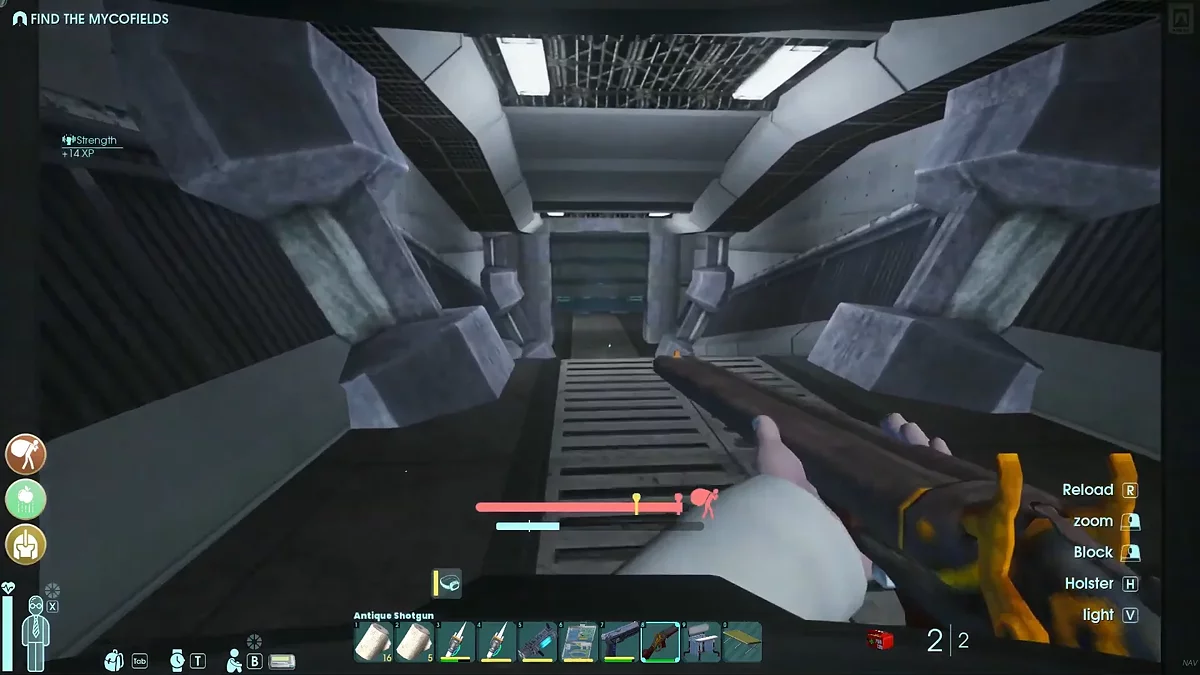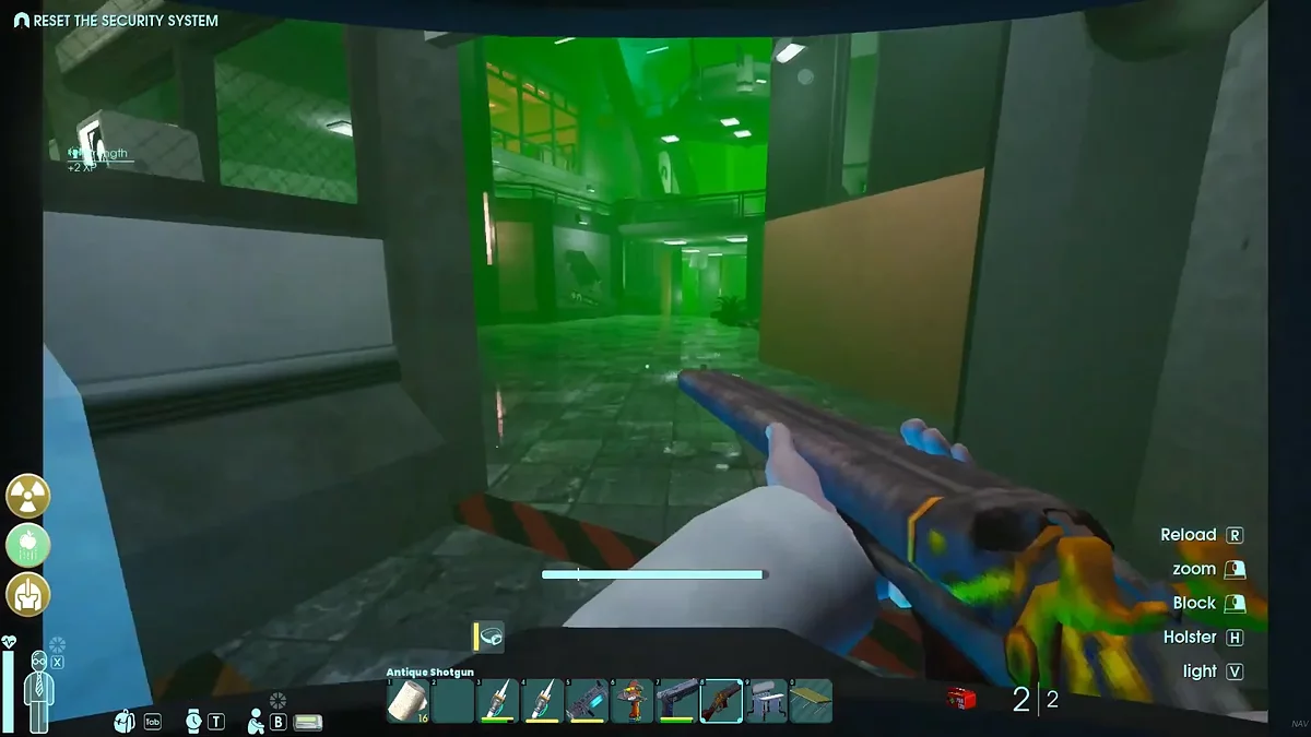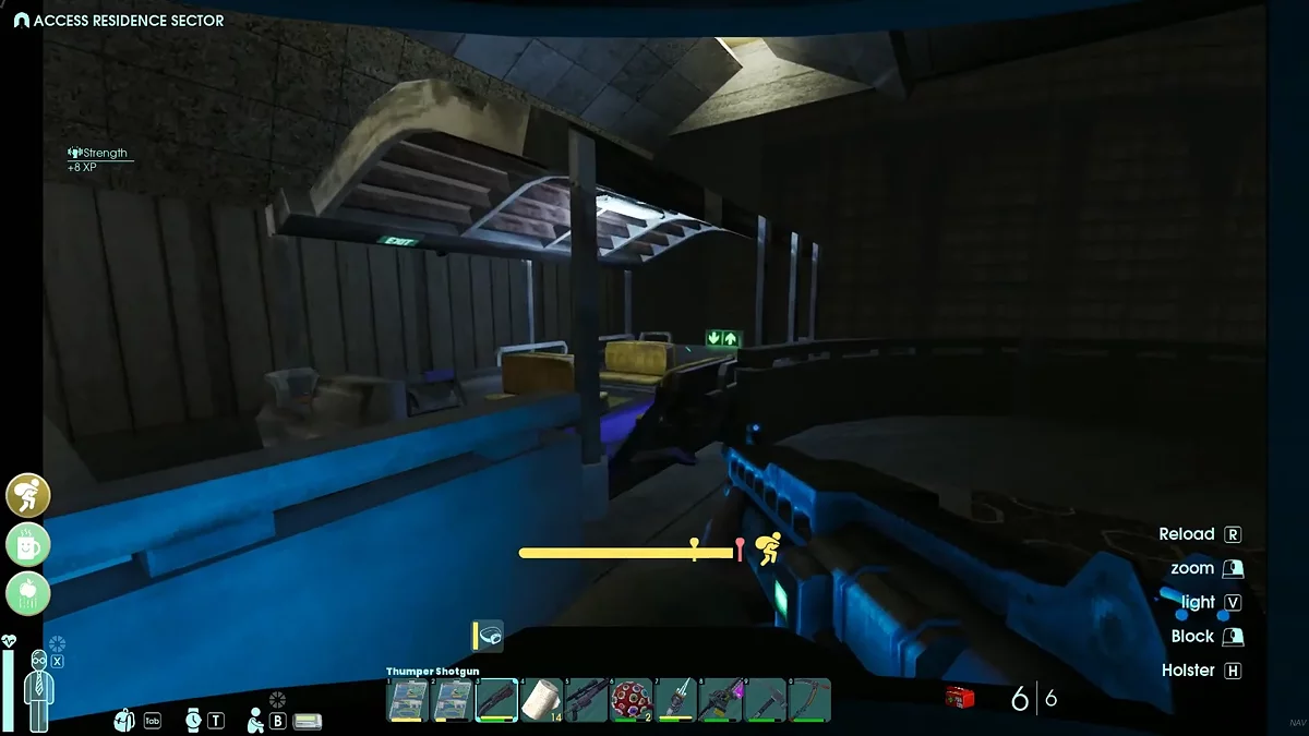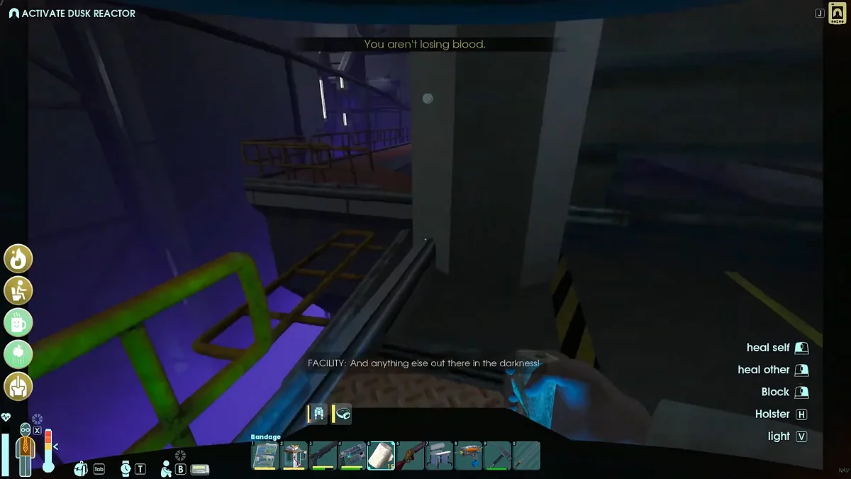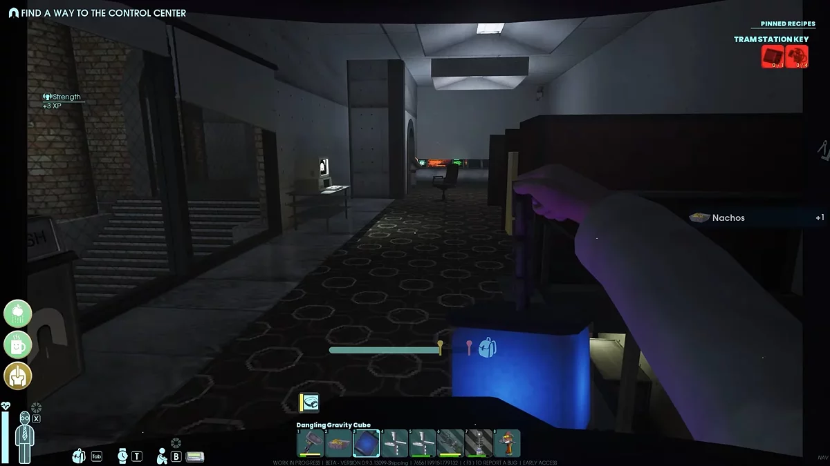 Познакомившись с индикаторами радиации и инвентарем, по синей дорожке на полу отправляйтесь к лифту.