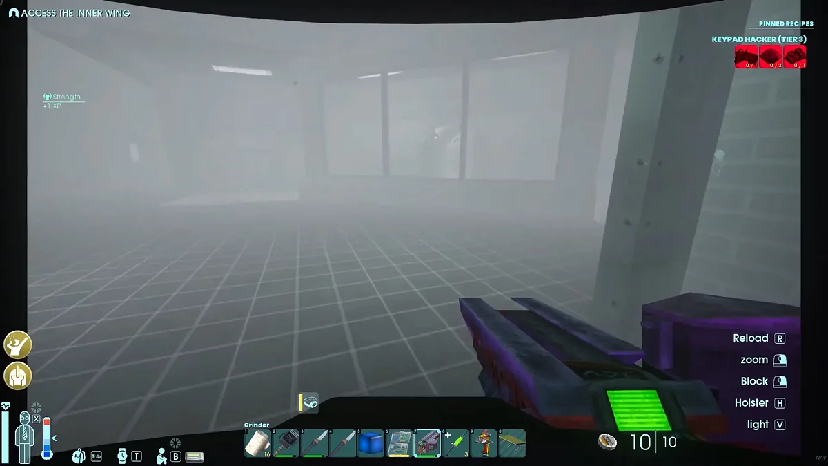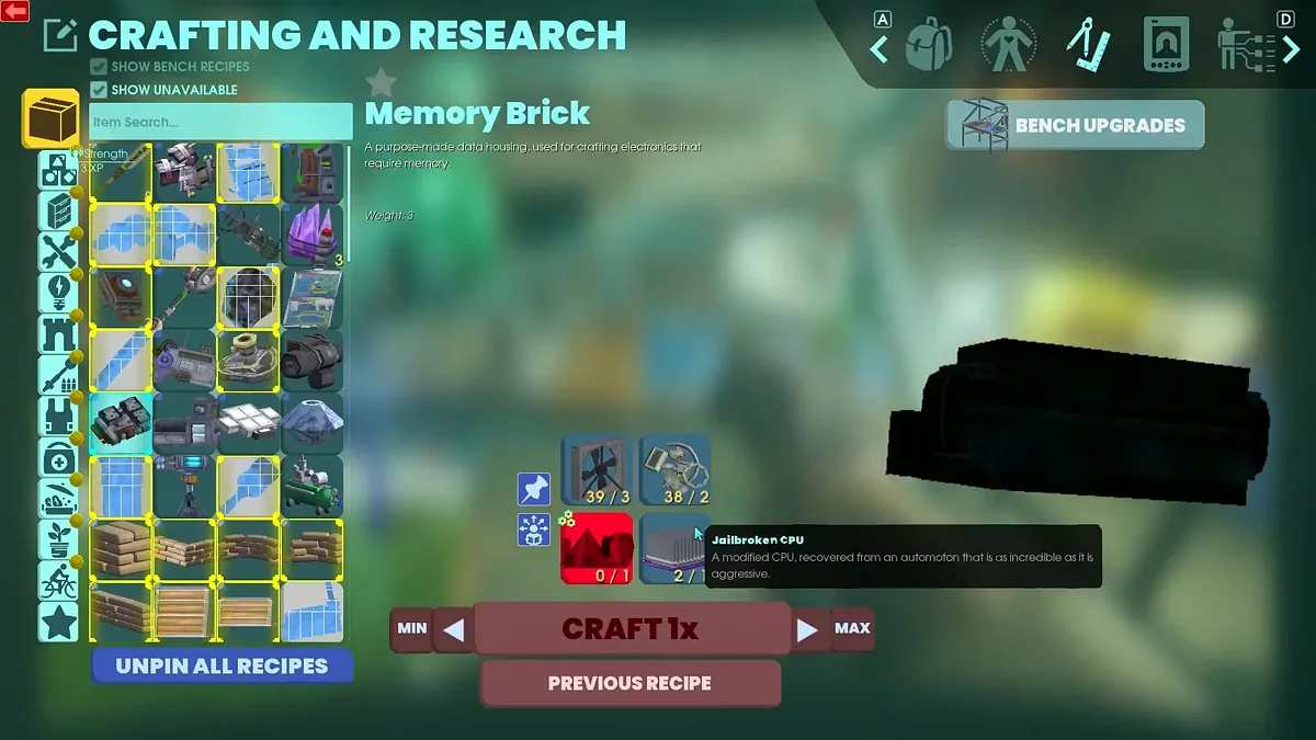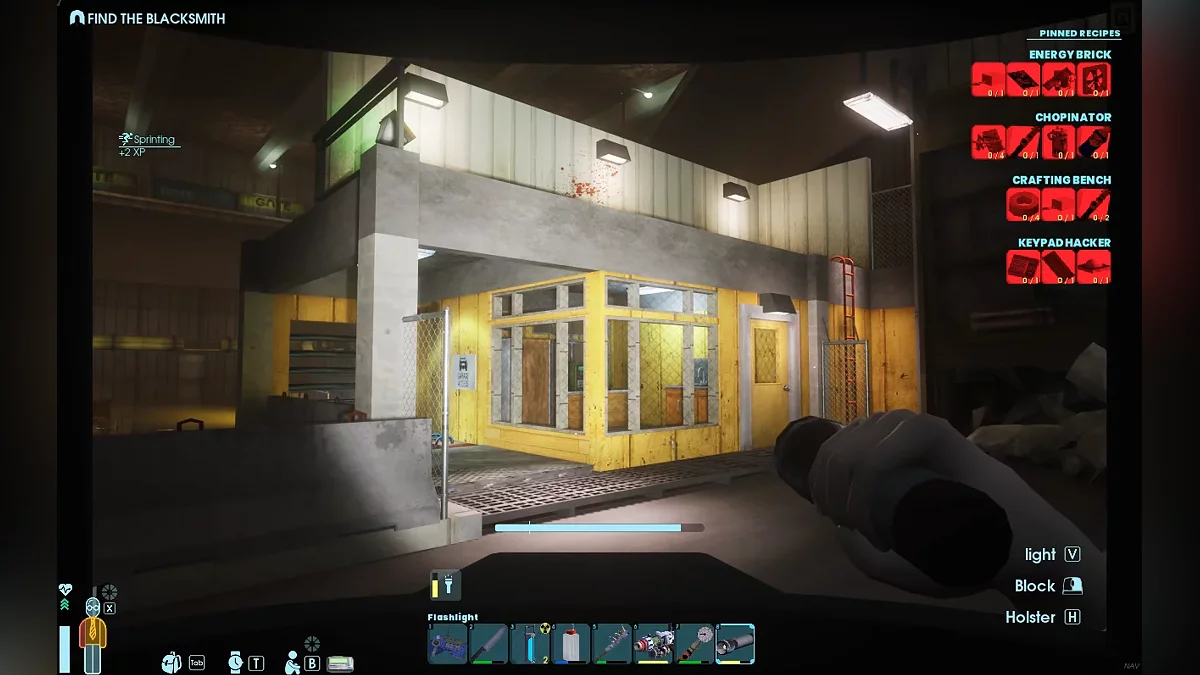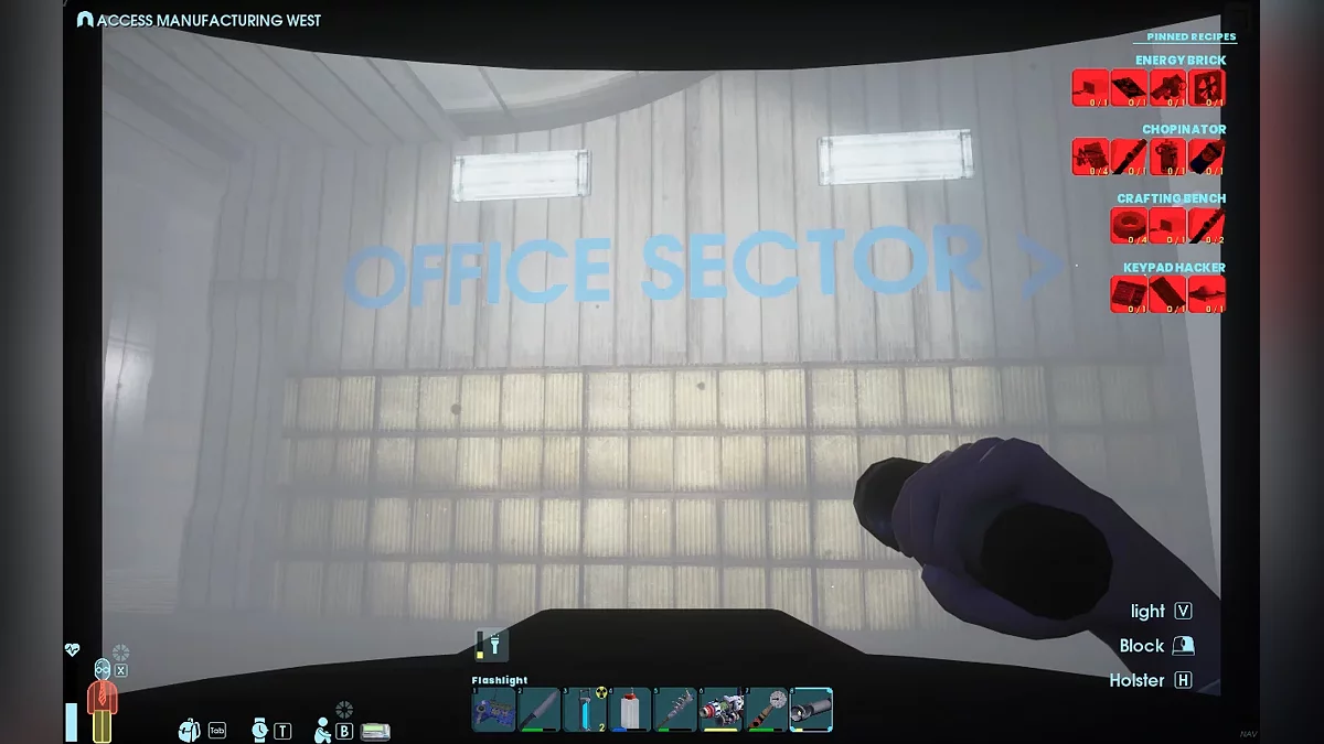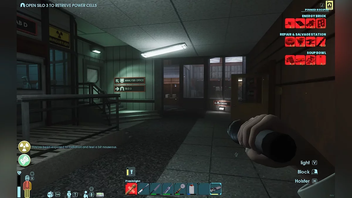 К этому моменту постарайтесь максимально обустроить базу из уже разблокированных чертежей. Постройте плиту, чтобы упростить готовку, станцию для ремонта инструментов, запаситесь небольшим аккумулятором на ночь. Также изготовьте энергоблок. Он пригодится, чтобы открыть новую территорию офисной локации. Его рецепт состоит из: