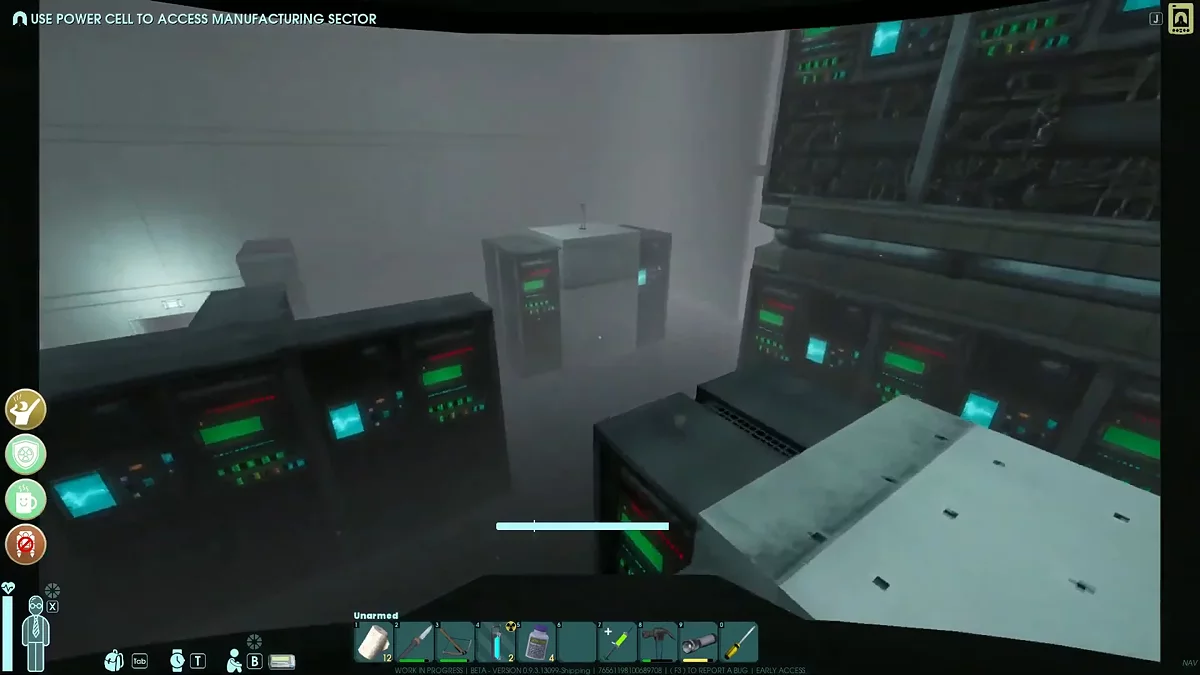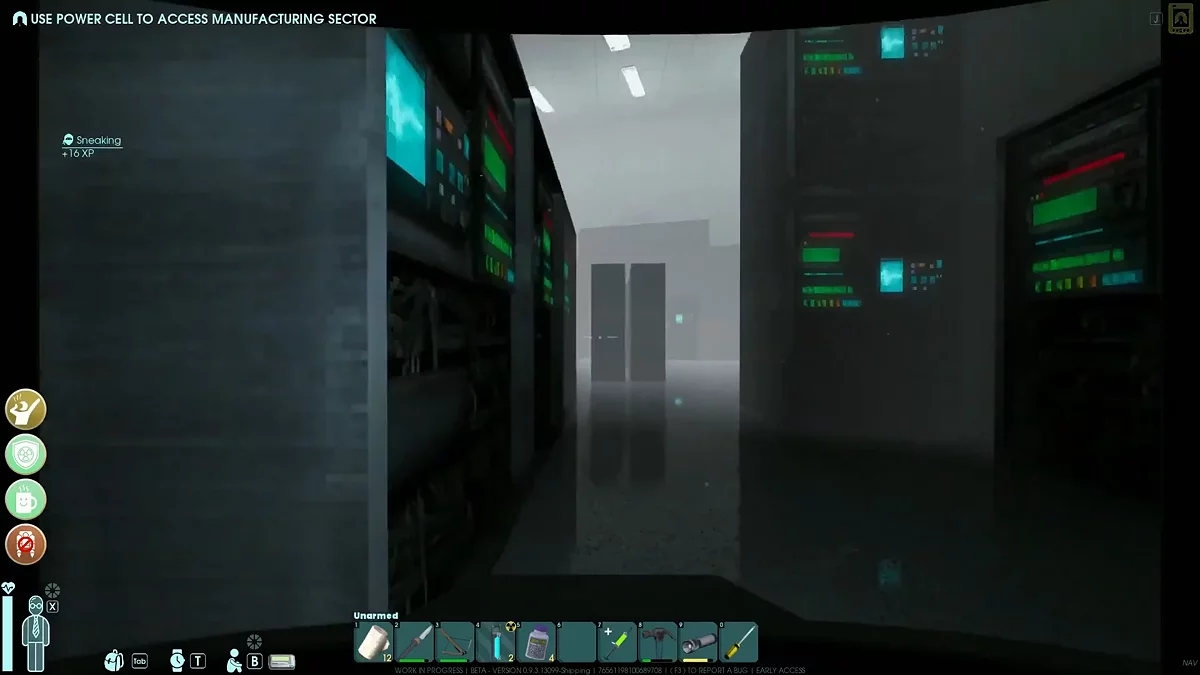 Напрямую попасть в производственную зону не получится. Повернитесь спиной к двери и пройдите прямо до тупика, там будет серверная. Внутри можно добыть еще немного электронных компонентов для инструментов, которые потребуется для изготовления переносной плиты.