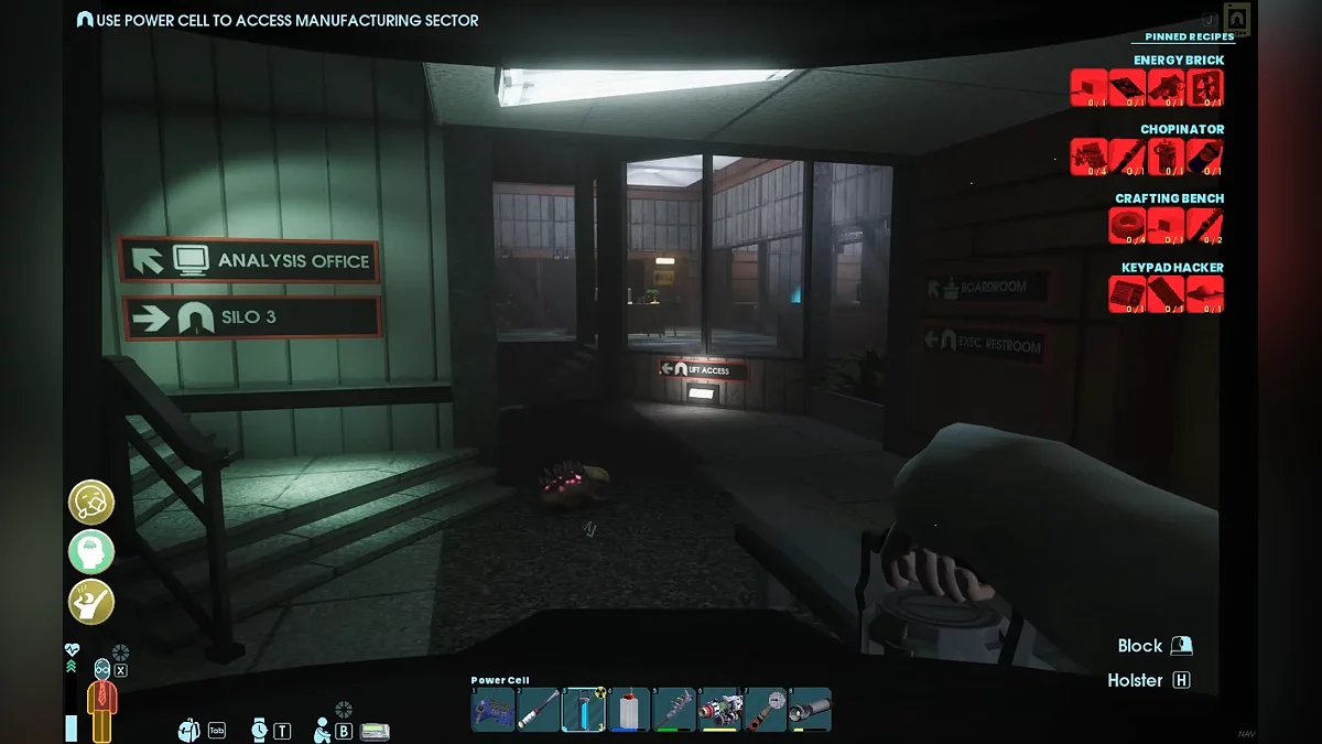 Возвращайтесь на самую первую развилку в офисе и в этот раз поверните налево. Доберитесь до тупика:, там как раз нужно вставить энергоблок.