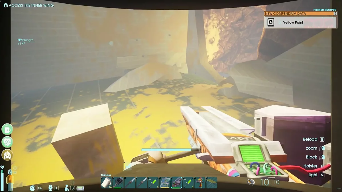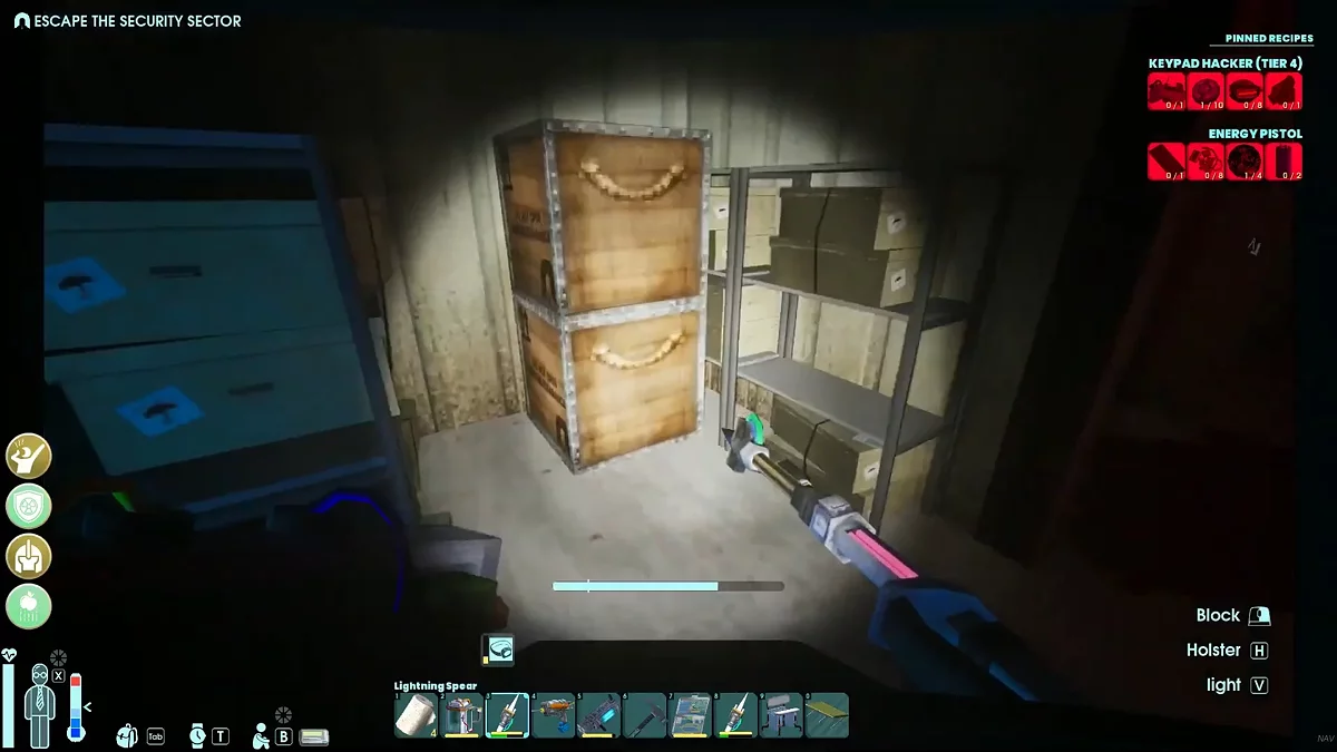 В конце хранилища будет проход в маленькое складское помещение, где в ящике с инструментами хранится масло и другие полезные новые материалы. Перед тем, как идти дальше по сюжету, подойдите к верстаку и изучите все новые рецепты. Также изготовьте специальные ящики для хранения и сложите туда ненужные вещи.