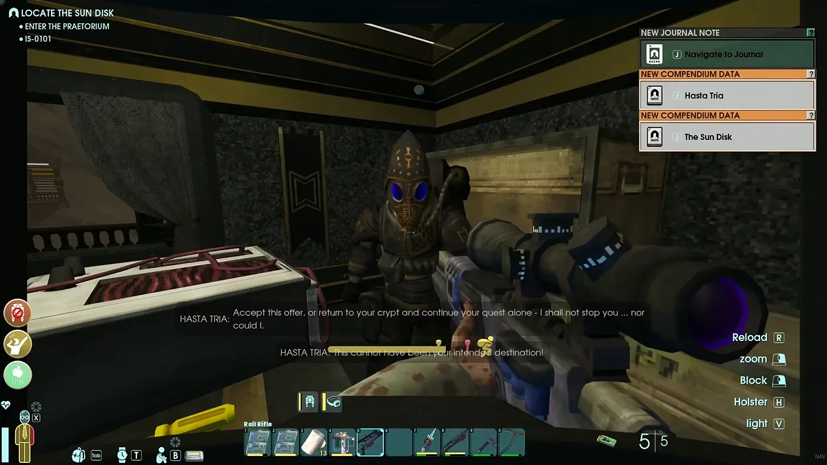 Проедьте две остановки. Откройте стеклянные двери с помощью шестого уровня модифицированного устройства доступа. В коридоре перед вами снова появится Хаста Триа. Вам помогут Эйб и Джанет, избавив от сомнительного путника.