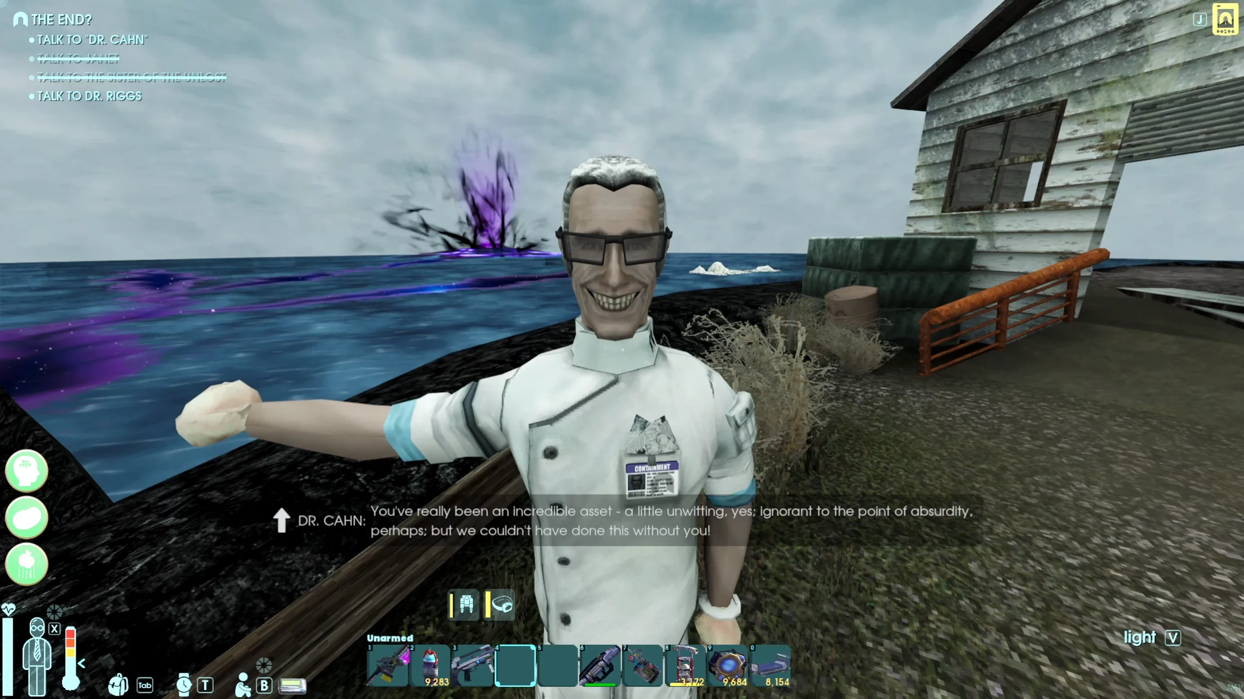 Доктор Канн ждет вас справа от синей постройки, в которой находился во время последних миссий.