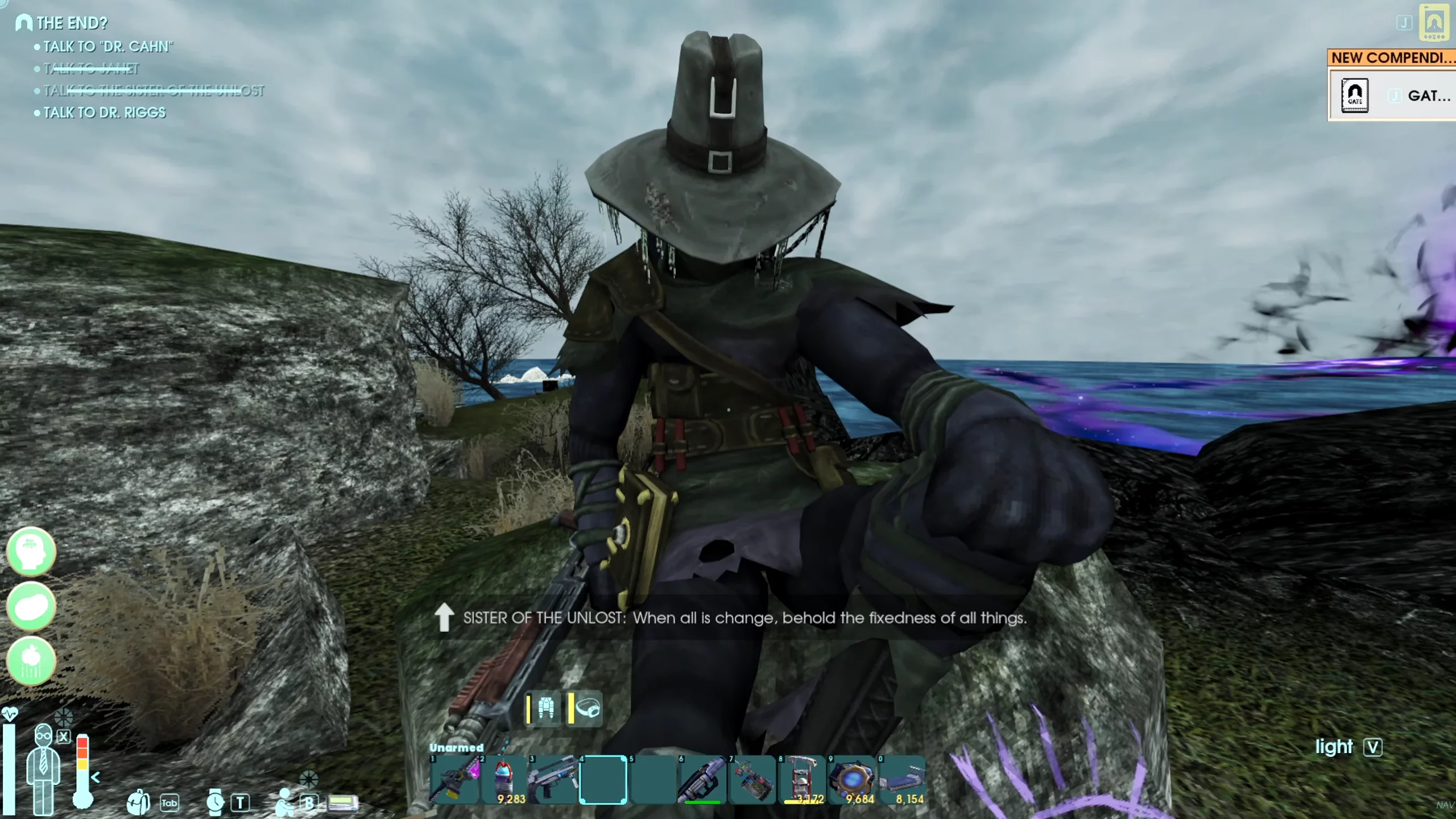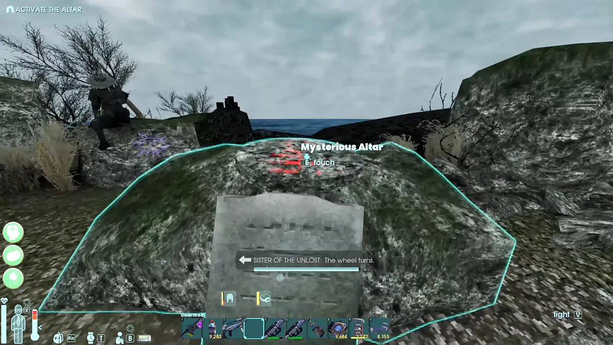 Неподалеку от алтаря на камнях сидит первый персонаж, с которым вам нужно пообщаться. Это ведающая сестра.