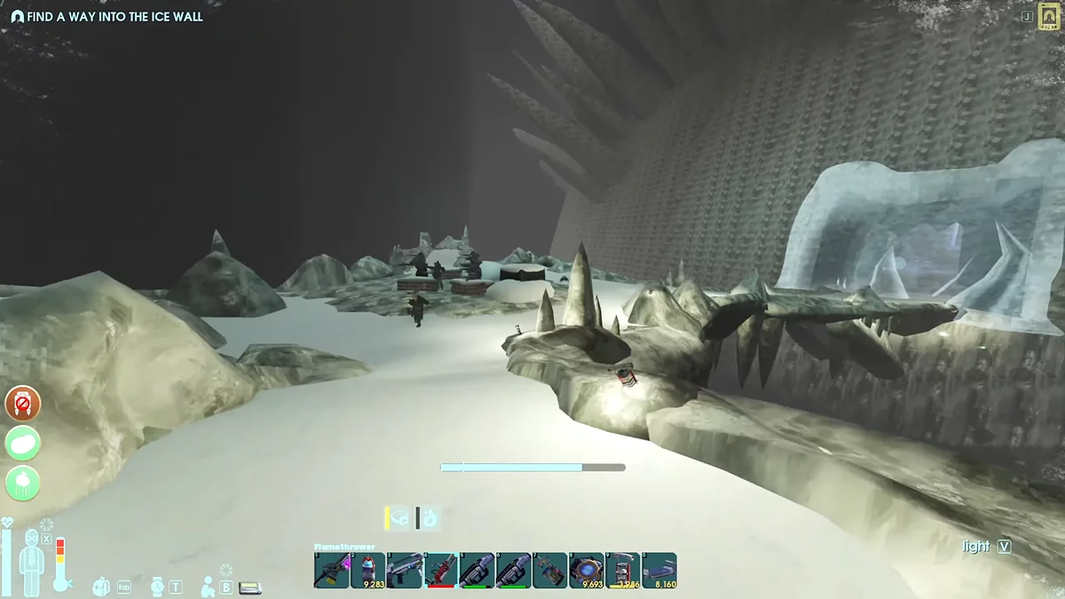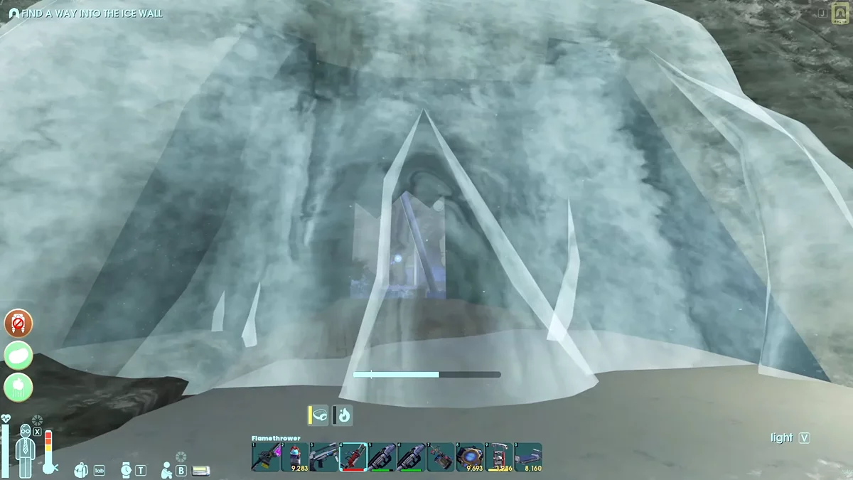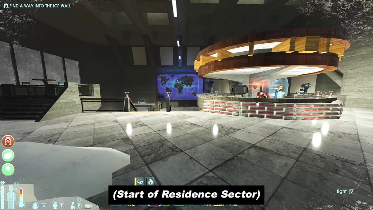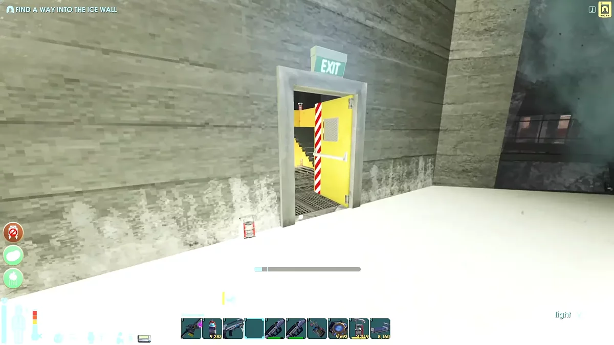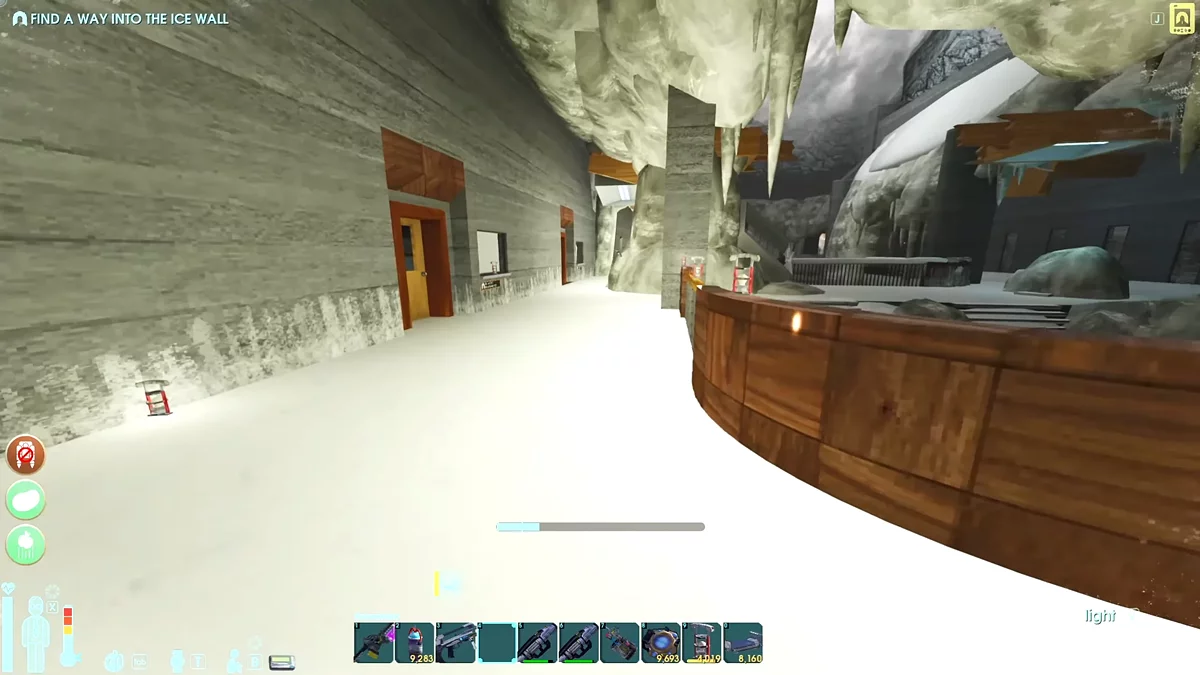 Вернитесь в начало здания жилого сектора, где сидят Эйб и Джанет. Слева спуститесь вниз и попадете на улицу. Добегите до ледяной стены впереди, чтобы растопить ее с помощью огнетушителя.