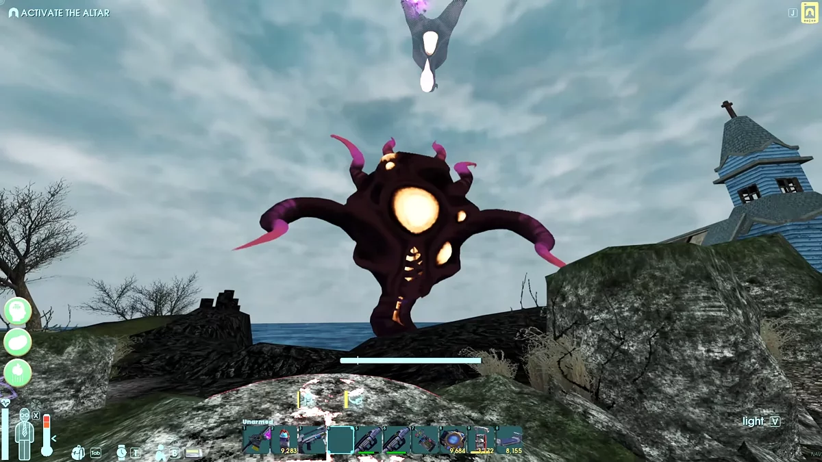 Доберитесь до синей метки, которой отмечен алтарь. Нажав на руну, победите появившегося монстра. Так вы пройдете игру.