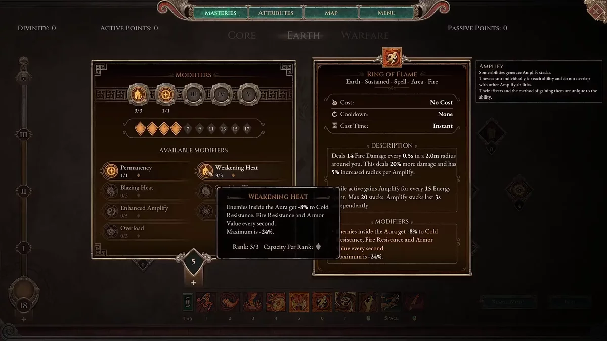 Сначала сосредоточьтесь на прокачке «Земли», так как она позволяет намного раньше получить способность «Огненное кольцо». Она позволит преобразовывать урон от обычного оружия в огненный. Ее можно открыть после получения третьего уровня.
