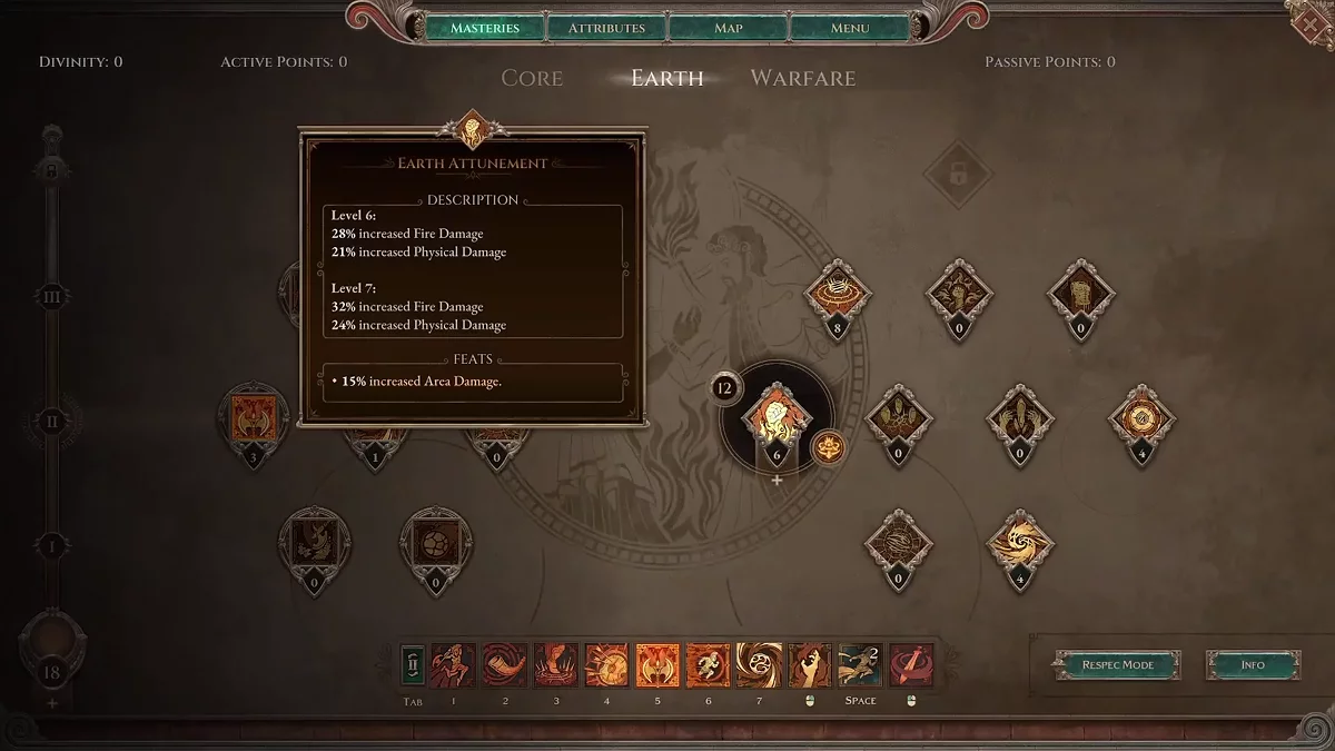 В Titan Quest 2 каждая ветка прогрессии имеет отдельную «шкалу Божественности». Для боевого мага с «Огненным вихрем» нужно выбрать «Землю», а затем «Войну».