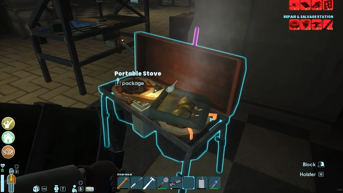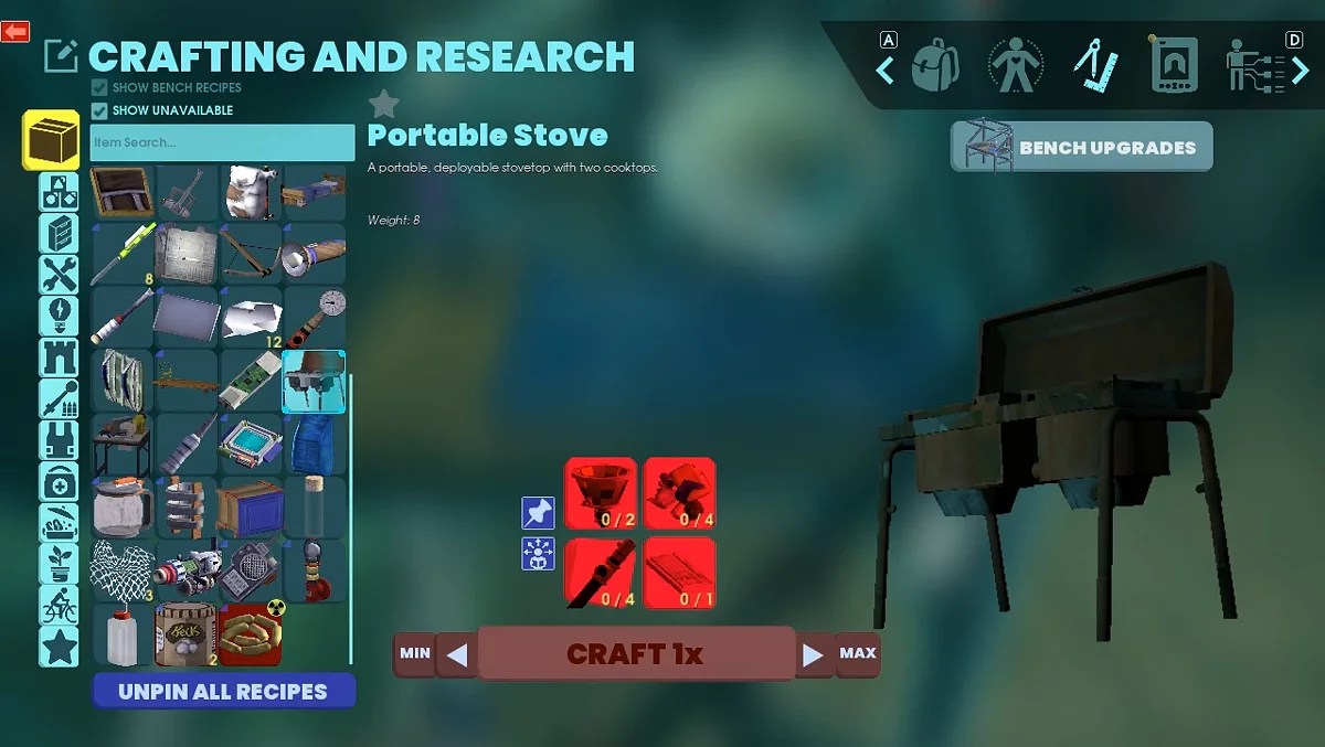 В начале вам лучше обзавестись плитой. Конечно, в некоторых локациях вы всегда можете воспользоваться местными кухнями, однако проще не тратить время на поиски. Одна переносная плита делается из: