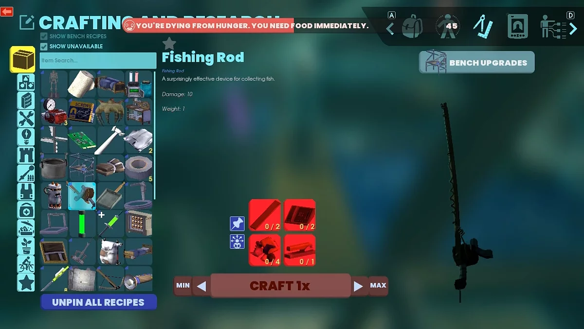 Поймать рыбу можно практически в любом водоеме, даже в фонтане. Вам надо лишь изготовить удочку из двух досок, настольных телефонов, пластика и степлера. Кроме того, после поимки всегда надо разделывать рыбу на столе шеф-повара. В уникальных локациях для поимки будет доступен свой особый вид подводных существ. Чем больше рыб вы ловите, тем сильнее прокачивается соответствующее умение героя. Рыбалке мы посвятим отдельное руководство.