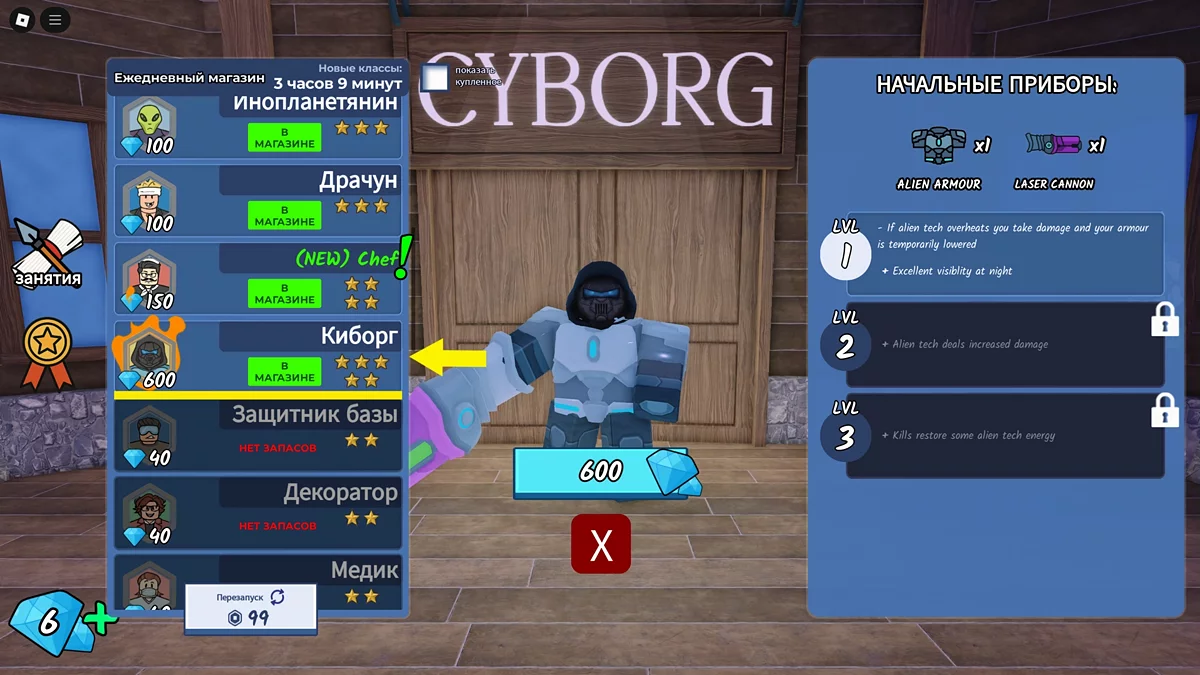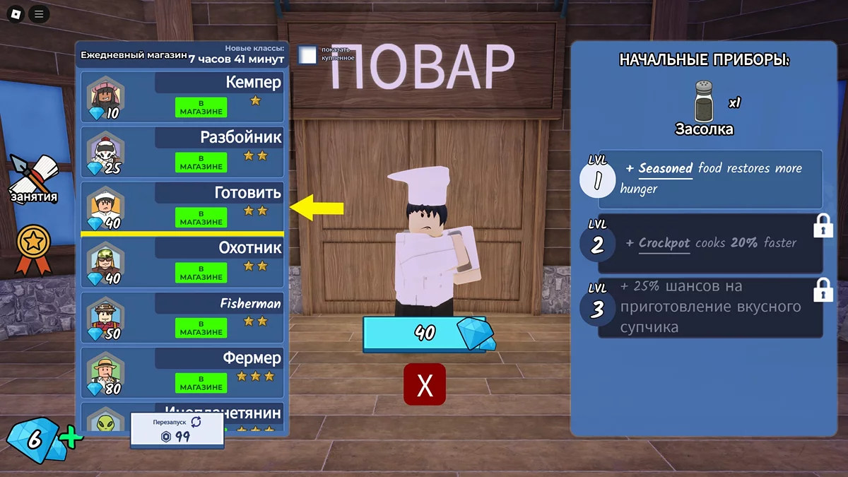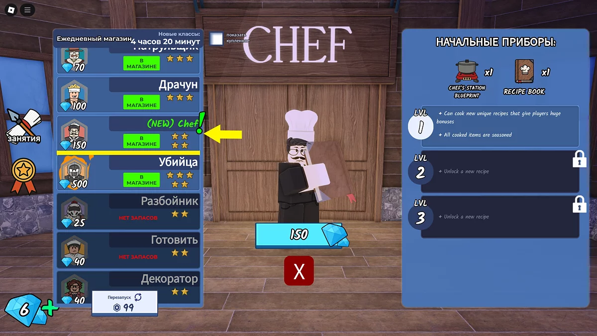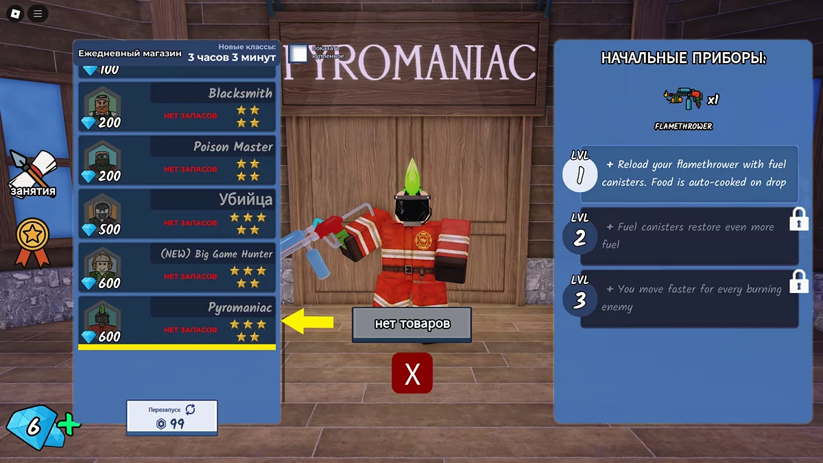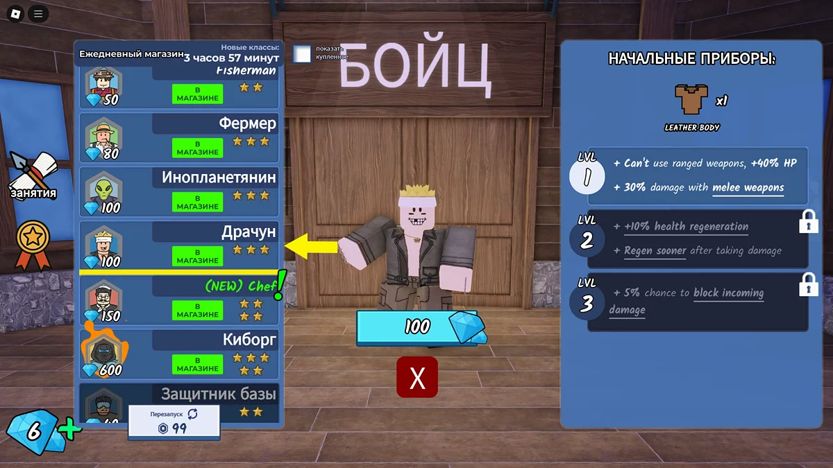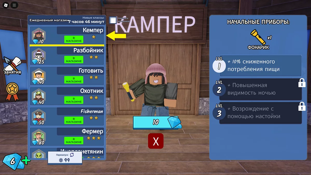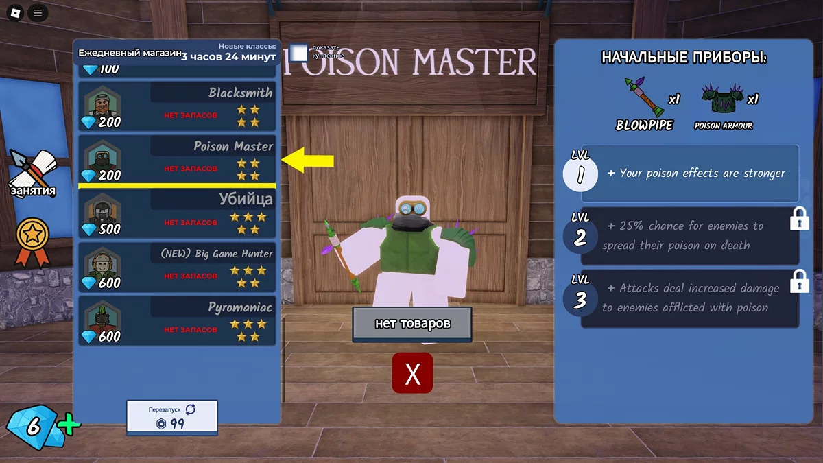 В лобби игры, справа от лавки обмена валют есть магазин классов. В нём вы можете приобрести за алмазы один из 23 классов. Кроме того, он служит для смены ролей. Также стоит обратить внимание, что в левой части экрана есть иконка «Занятия», кликнув на которую, вы перейдете в магазин классов.