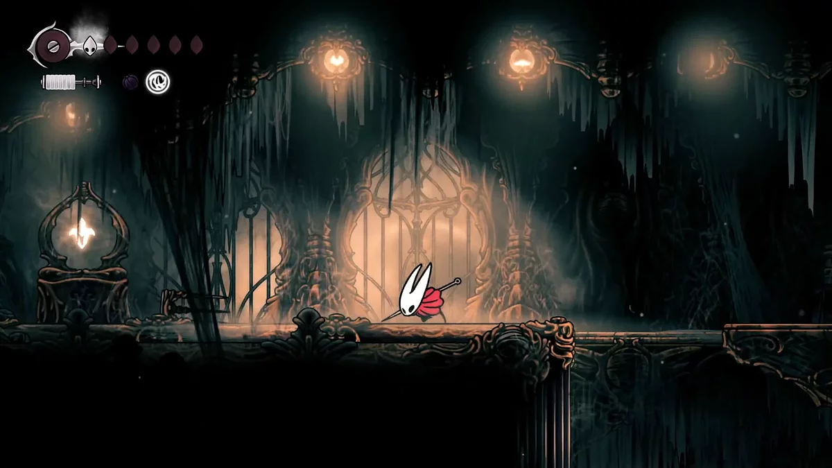 Обратите внимание на большую комнату чуть ниже и левее Хорнет. Двигайтесь туда, чтобы решить небольшую головоломку и получить в награду бледное масло. После этого откроется срезка и можете спуститься вниз к Колокольному зверю, чтобы посетить в Звонвилль и улучшить урон Иглы.