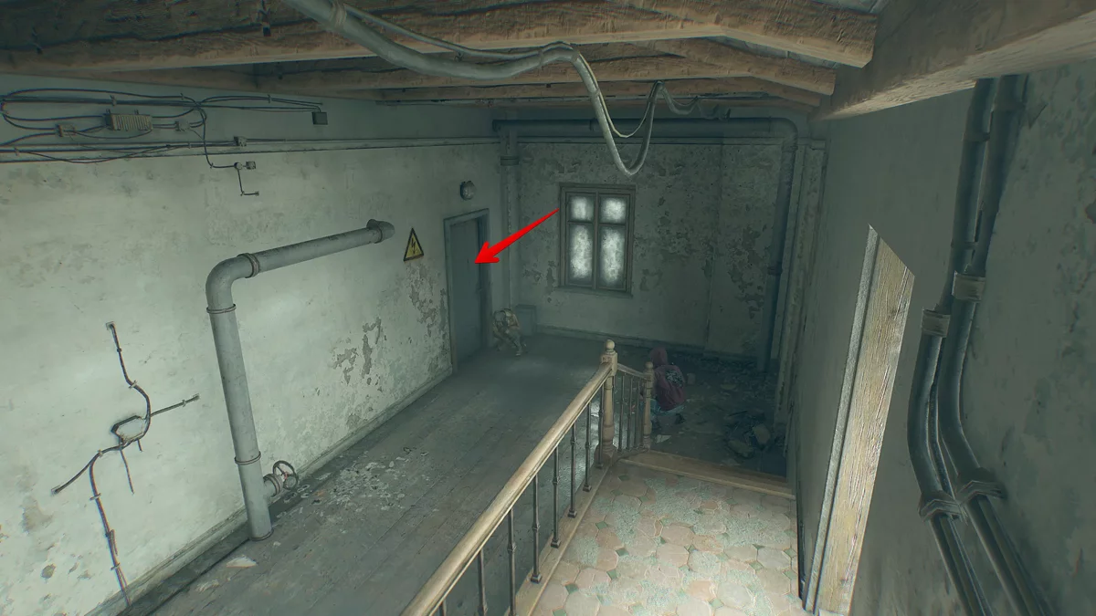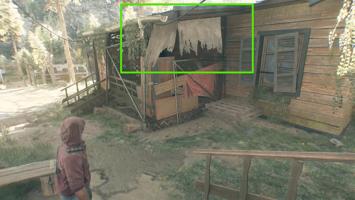 Покиньте монастырь и двигайтесь вниз через арку. Пересеките реку и подойдите к дому, из трубы которого идёт дым. Вы увидите, что вход забаррикадирован, но если приглядеться, можно обнаружить проём с правой стороны над крыльцом. Отвлеките зараженных и заберитесь в избу, где встретитесь с выжившим.