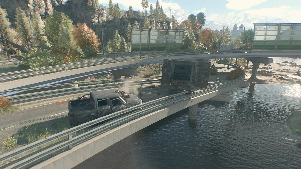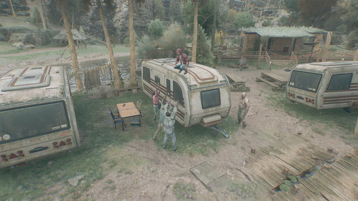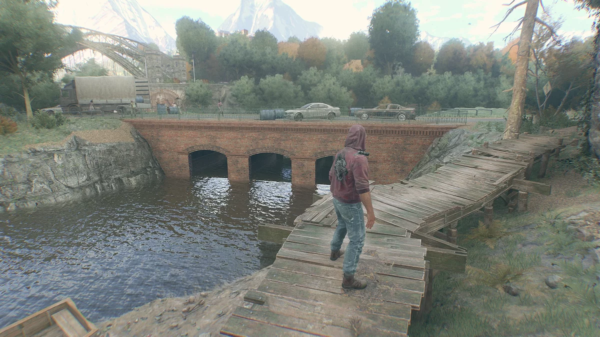 После зачистки с Кайлом свяжется Свен и сообщит, что экипаж с пленными остановился на ближайшей реке, которую перегородила стая зараженных. Берите джип и езжайте на юго-запад к мосту через ручей. Уничтожьте врагов, осмотрите заложников и сообщите Свену об их состоянии. Чтобы им помочь, нужно вколоть сыворотку.