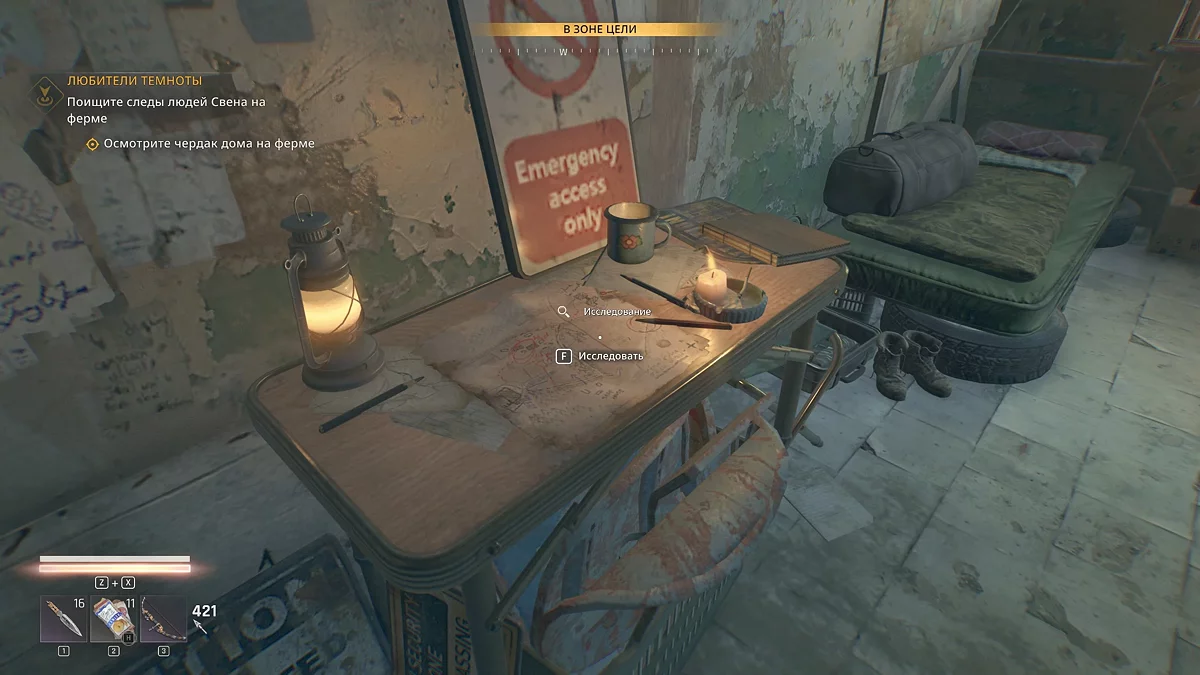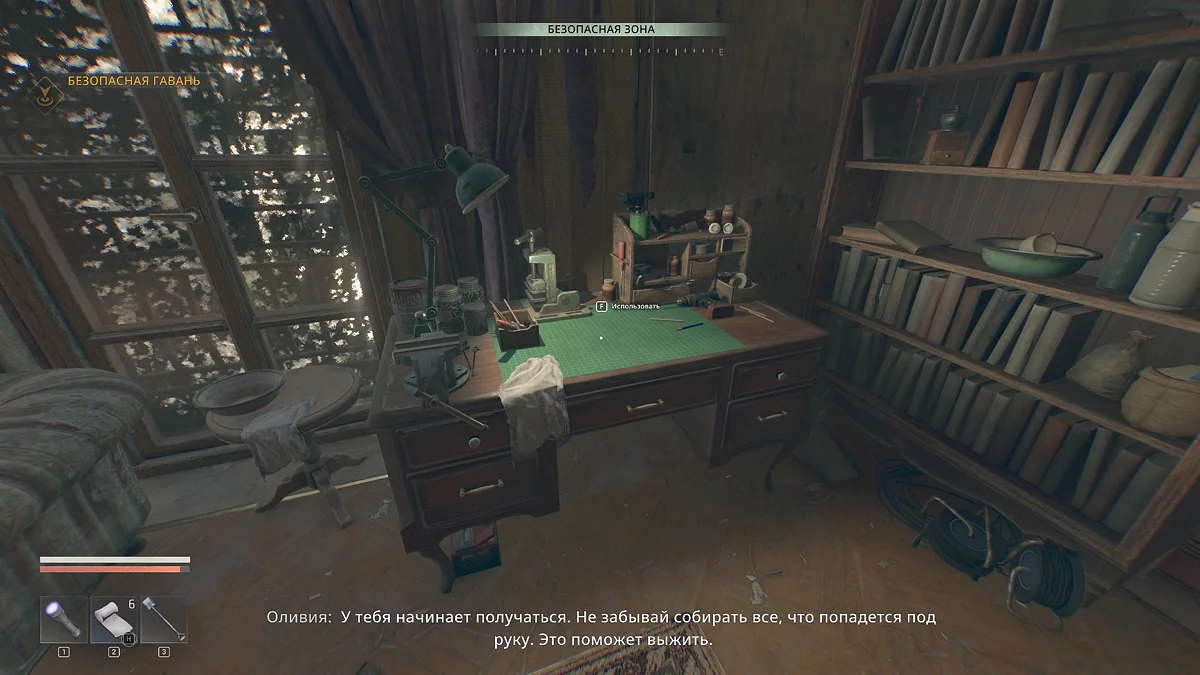 Теперь у вас есть возможность заниматься собирательством. Кроме того, у героя появляется «чутье выжившего», с помощью которого подсвечиваются доступные для сбора предметы. Поэтому, чтобы облегчить своё дальнейшее путешествие, рекомендуем тщательно изучать локации.