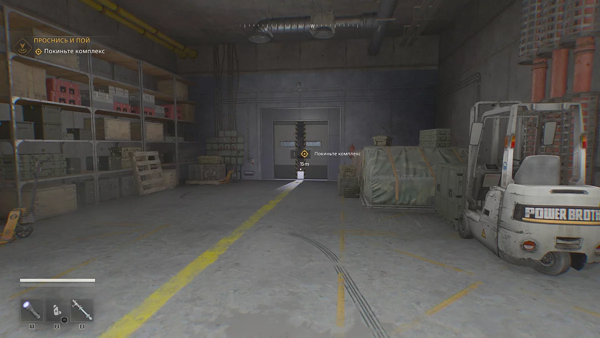 Спуститесь и выйдете на склад, затем следуйте по желтым стрелкам на земле. Протиснетесь через дверной проём, затем увидите, как начинают закрываться гермозатворы туннеля. Далее предстоит бежать вперед без остановки в режиме спринта, пока не запустится катсцена, заканчивающаяся логотипом игры. На этом моменте можно считать пролог пройденным.