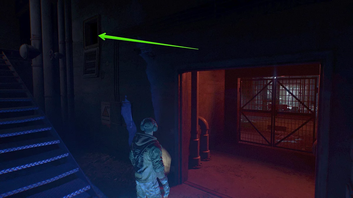 Теперь, чтобы вас не заметил прыгун, постарайтесь пройти незамеченным в вентиляционную шахту на другом конце склада.