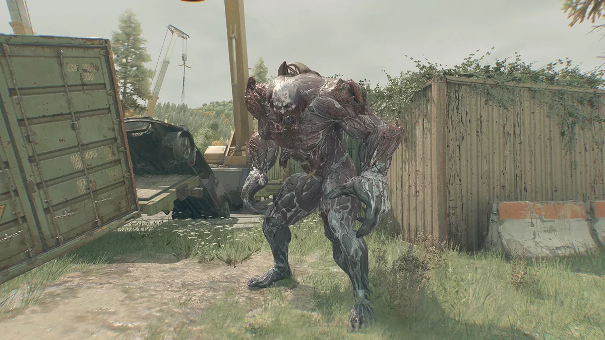 Двор усеян взрывоопасными баллонами, также здесь лежит холодное оружие и коктейль Молотова. Когда вы убьёте последнего заражённого, начнётся битва с химерой. Поэтому не рекомендуем использовать разбросанные предметы раньше времени.