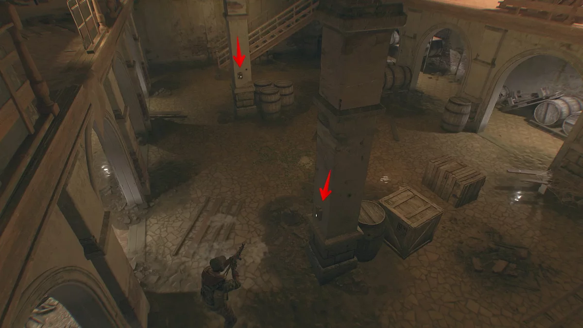 Во втором помещении перебейте всех солдат и снимите две бомбы с колонн.