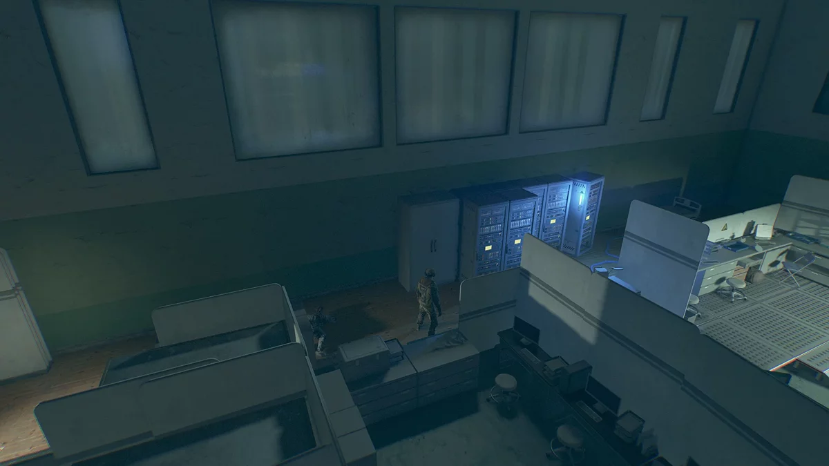 Подобрав рацию, незнакомка представится Оливией и скажет, что нужно воспользоваться паникой и бежать, пока вырвавшийся монстр громит лабораторию. Далее герой подбирает ультрафиолетовый фонарик. Затем спасательница говорит, что слева от стола, с которого упал Кайл, есть вентиляционная шахта.