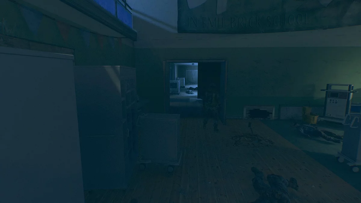 Отправляйтесь к темной зоне «Школа»[b], что находится рядом с [b]безопасной точкой «Домик смотрителя»[b]. Не приближайтесь к зданию чтобы вас не увидели бандиты.