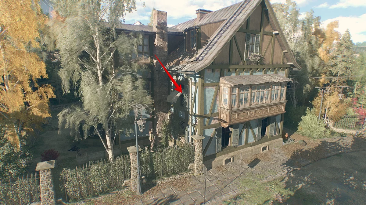 Чтобы попасть внутрь, встаньте лицом к дому со стороны дороги, обратите внимание на левый торец второго этажа и увидите открытое окно.