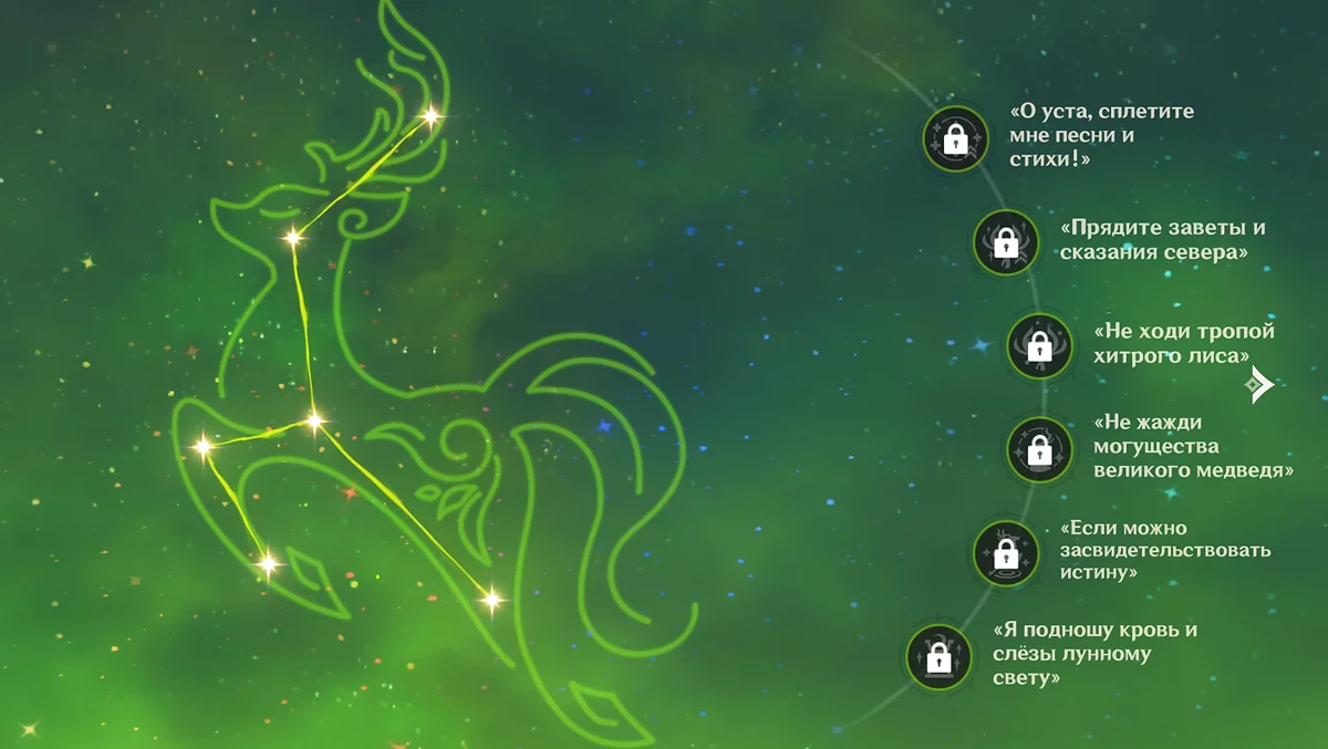 «Прядите заветы и сказания севера» — повышает силу каждого уровня Сизого Гимна — на 500% для реакций Бутонизации, и на 400% для Лунной бутонизации прибавка считается на основе мастерства стихий Лаумы.