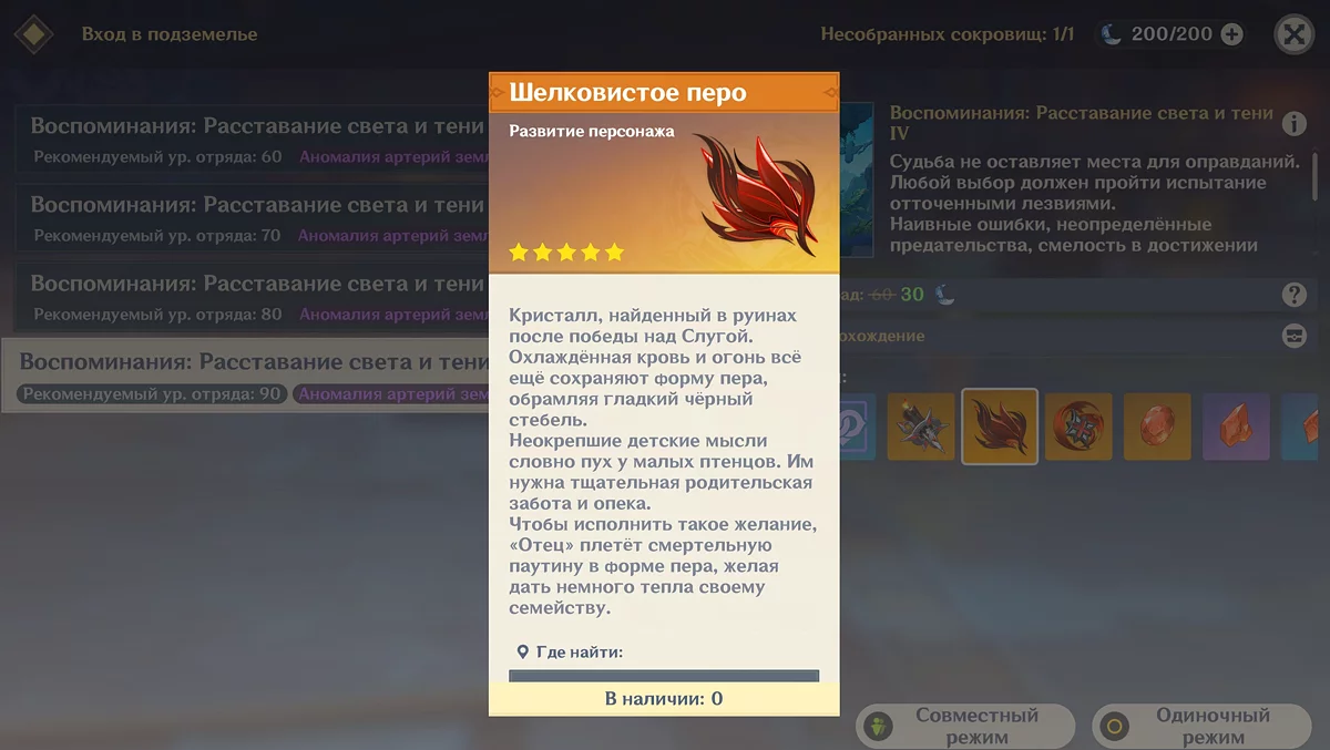 Шелковистое перо — материал с еженедельного мирового босса «Слуга (Арлекино)».